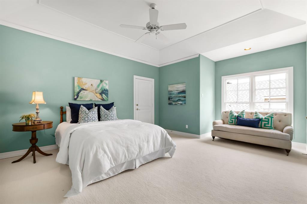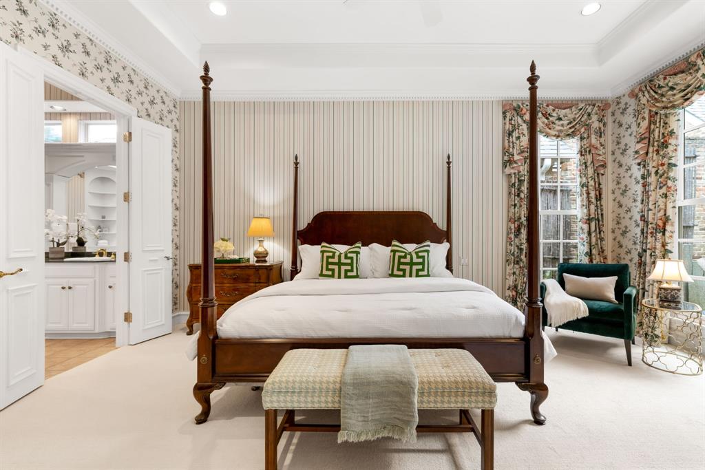Situated on a tree-lined cul-de-sac in sought-after Caruth Village, this elegant home offers a remarkable combination of charm and a low-maintenance lifestyle. The welcoming entry with hardwood floors leads to a formal dining room and a handsome wood-paneled study with custom built-ins. The spacious kitchen features a center island, gas cooktop, double ovens, and a butler’s pantry, opening up to the light-filled breakfast area with Marvin windows overlooking the private stone courtyard. The large living room includes built-ins and a wood-burning fireplace, ideal for gatherings and entertaining. The oversized first-floor primary suite is a true retreat with a private sitting area, walk-in closet, dual sinks and a soaking tub. Upstairs are three well-sized bedrooms, additional custom built-ins, and a large attic with permanent stair access. Skylights throughout the home bring in natural light, complementing the impeccable millwork and craftsmanship. This home is conveniently located within walking distance to NorthPark Mall, shopping, and dining.