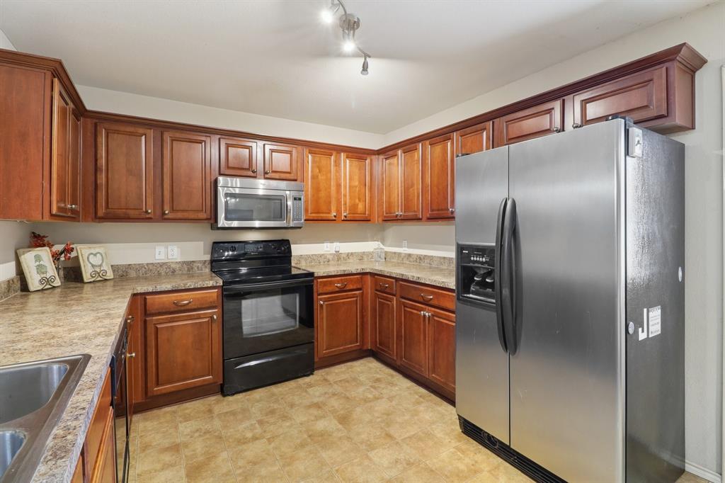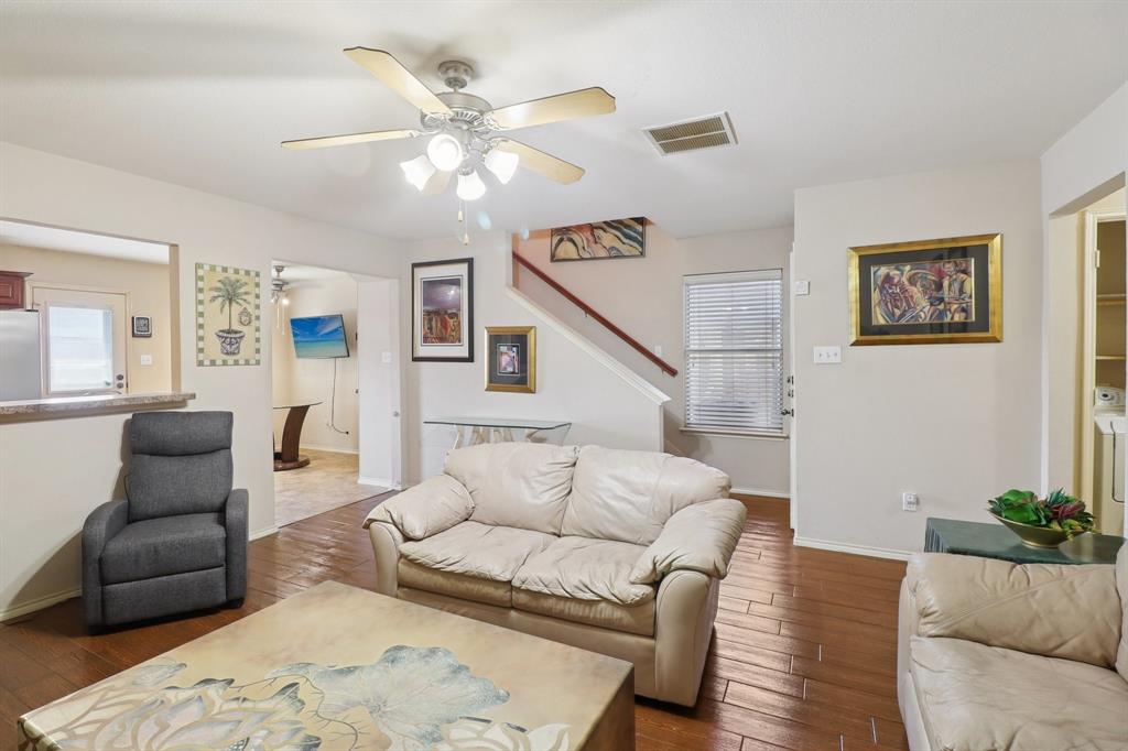 Fantastic opportunity for first time buyers or investors. with this well-maintained 2-story half duplex featuring **No HOA**! This home offers 2 bedrooms, 2 baths, and a 1-car garage. The open-concept layout connects the living, kitchen, and dining areas, with ceramic hardwood-look flooring throughout the entry, living room, and hallway. The downstairs primary suite includes an en suite bath and large walk-in closet. Upstairs, enjoy a spacious bonus area perfect for a second living room, game room, media space, or office. A secondary bedroom upstairs also boasts a large walk-in closet and adjoining bath. Abundant storage throughout. Outside, relax in the fenced backyard with a small open patio. Energy-efficient solar window screens add to the value.