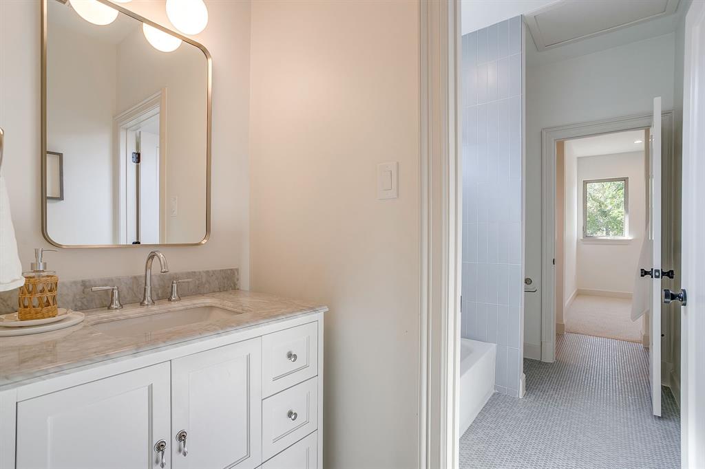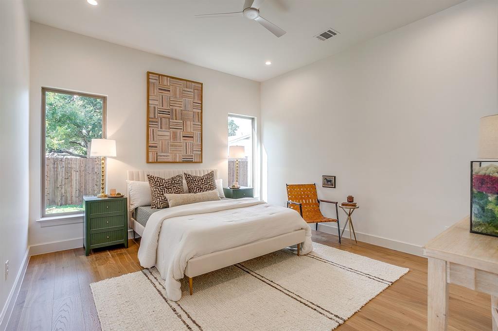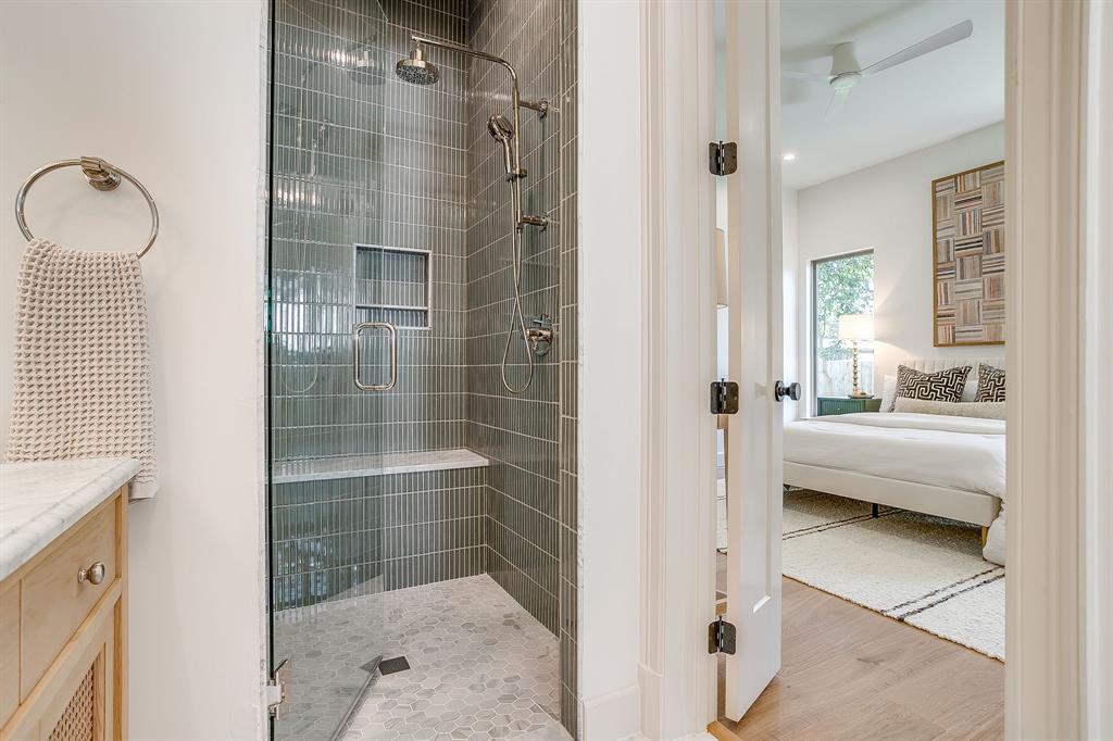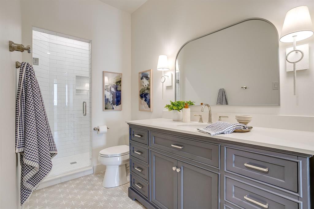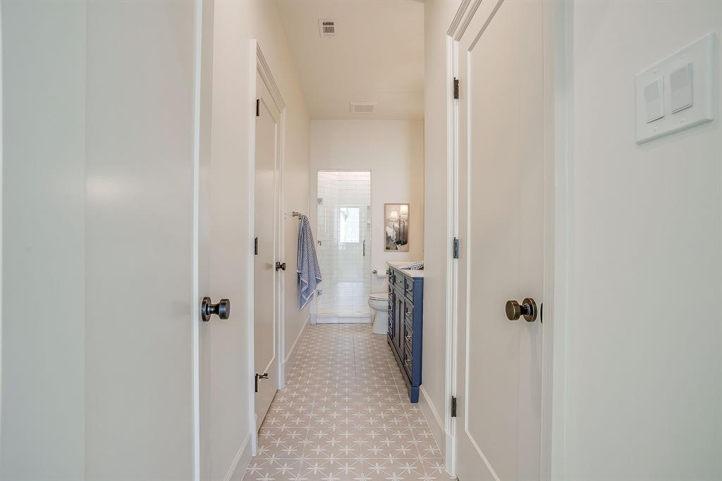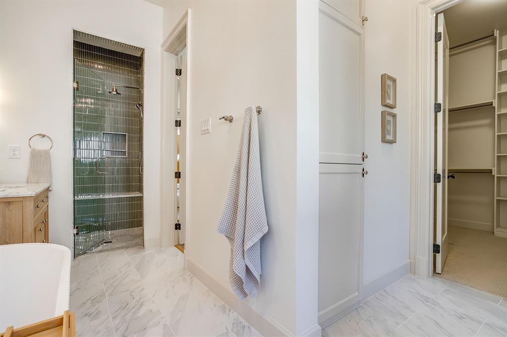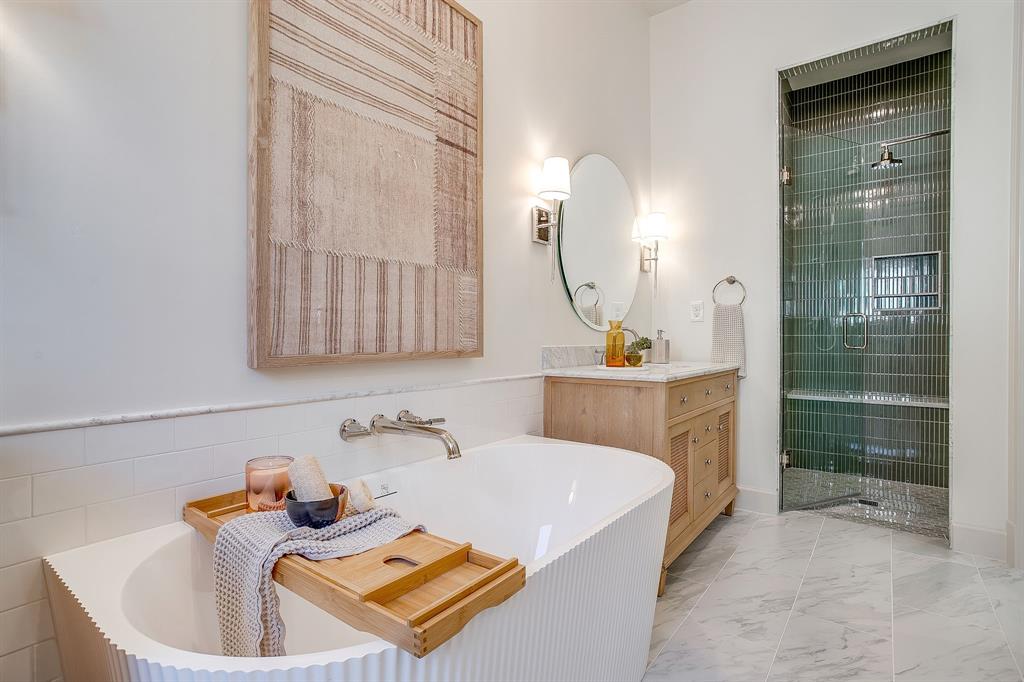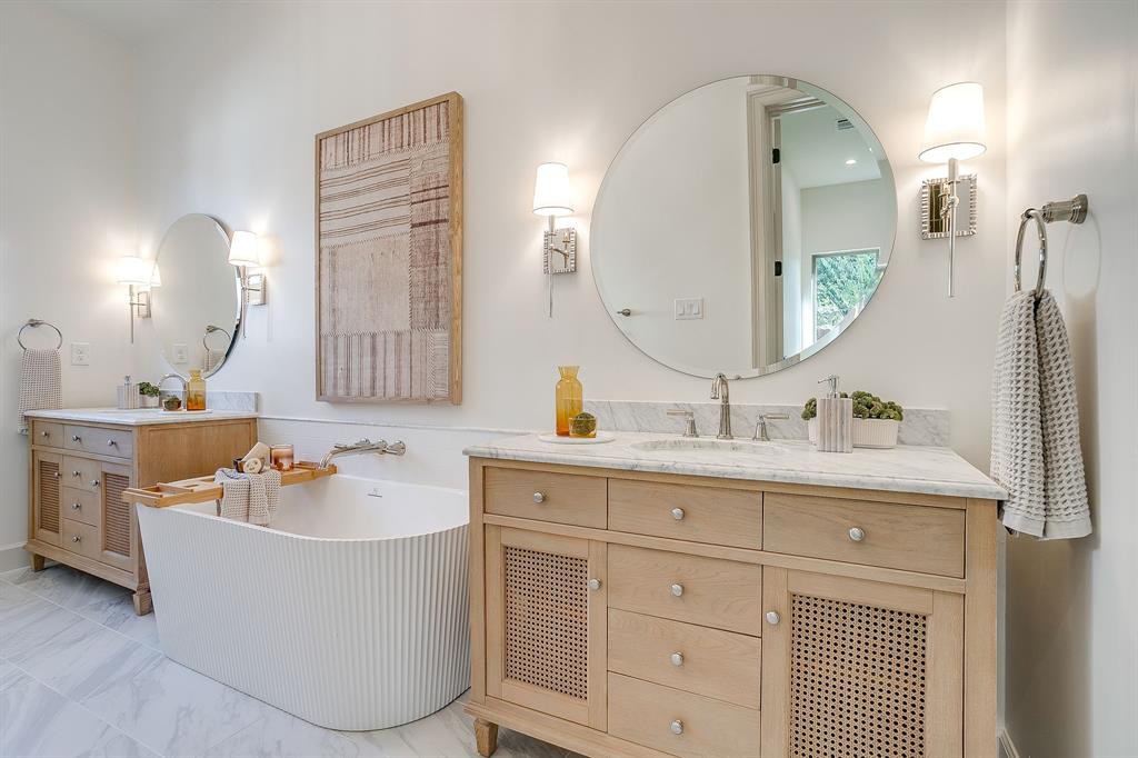 Privately nestled in the back of the house the primary suite is a Haven away from every day stressors With dual 48-inch vanities on either side of the soaking tub, the oversized master closet and separate shower all designed to provide a daily retreat from life’s demands.