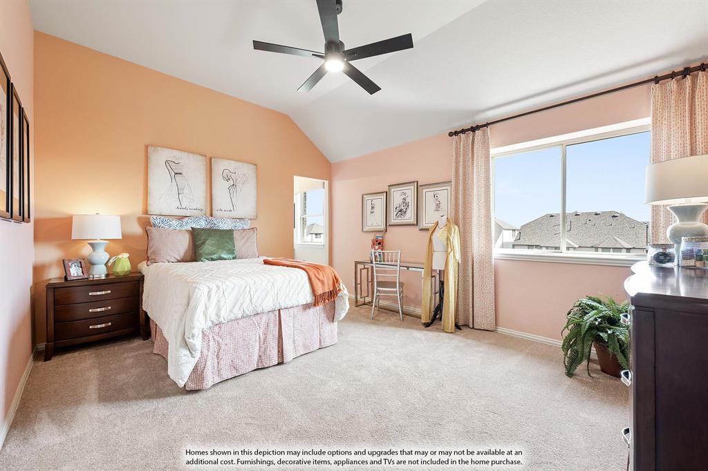 NEW! NEVER LIVED IN – Ready in November 2025! This stunning 5-bedroom, 3.5-bathroom home with a 2-car garage by Bloomfield Homes blends exceptional style and everyday comfort in a spacious, modern layout designed for the way you live. From the moment you arrive, the show-stopping elevation and horizontal iron railings set the tone for elevated design. Step through the impressive 8' front door into an open-concept layout where vaulted ceilings, rich wood flooring, and large windows with window coverings fill the home with natural light. Off the foyer, a flexible dining room doubles as an optional study, while the open family room anchors the main level with easy flow into the kitchen and breakfast area. The chef’s kitchen is a standout, showcasing custom cabinetry, upgraded granite countertops, a deep walk-in pantry, and an oversized island that connects seamlessly to the dining and family spaces—perfect for both daily meals and entertaining. Tucked at the rear, the first-floor primary suite offers privacy with a spa-inspired bath featuring dual sinks, an upgraded shower, and a large walk-in closet. A convenient powder bath and laundry room are also located downstairs. Upstairs, 4 secondary bedrooms are arranged around a spacious game room, with a Jack & Jill bath connecting 2 bedrooms for added functionality and privacy, while the remaining bedrooms share a separate full bath. Each bath includes upgraded tile finishes for durability and style. Outdoor living is extended with an oversized covered patio complete with a gas stub for grilling, offering space to relax or entertain year-round. With high-end finishes, thoughtful upgrades, and a well-planned design that balances open gathering spaces with private retreats, the Dewberry III by Bloomfield Homes delivers the flexibility and comfort today’s homeowners need.