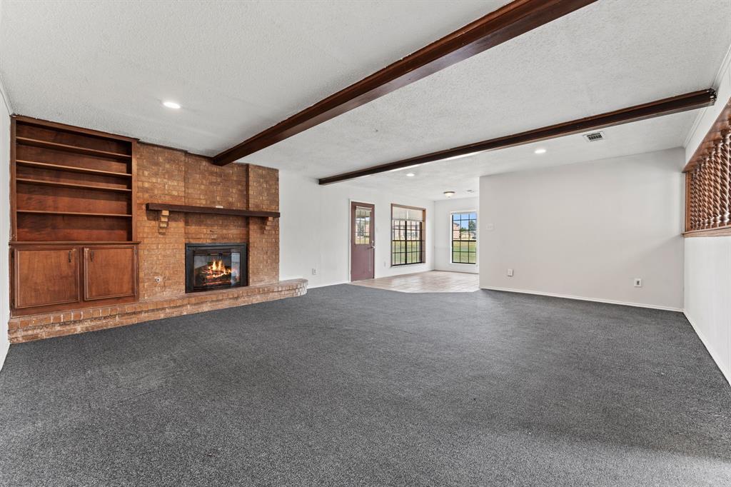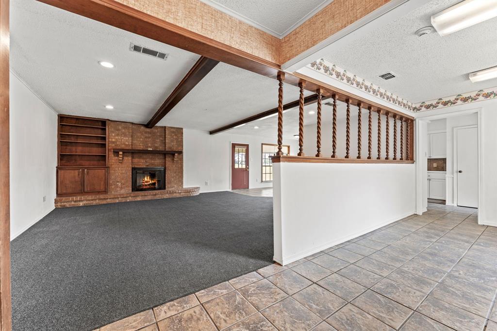 NEW ROOF, NEW HVAC, AND FOUNDATION REPAIRS. ALL MAJOR AND COSTLY RENOVATIONS HAVE ALREADY BEEN ADDRESSED. This Spacious Home is situated on a beautiful corner lot and features three generously sized bedrooms with large closets and two full bathrooms. The entryway opens to a charming living room with a beautiful wood-burning brick fireplace and built-in shelving. The Kitchen is light and bright and designed for casual dining. The open layout connects the kitchen to the main living area. Outside, there is a large covered back patio ideal for hosting backyard gatherings and barbecues. The converted garage provides extra storage space and an office area. Bring your ideas to customize and make this home truly yours.