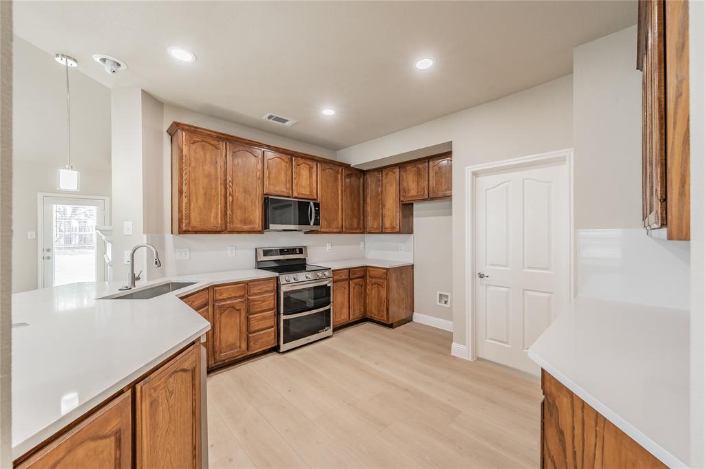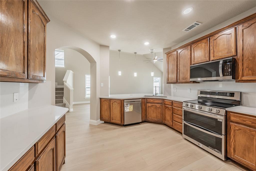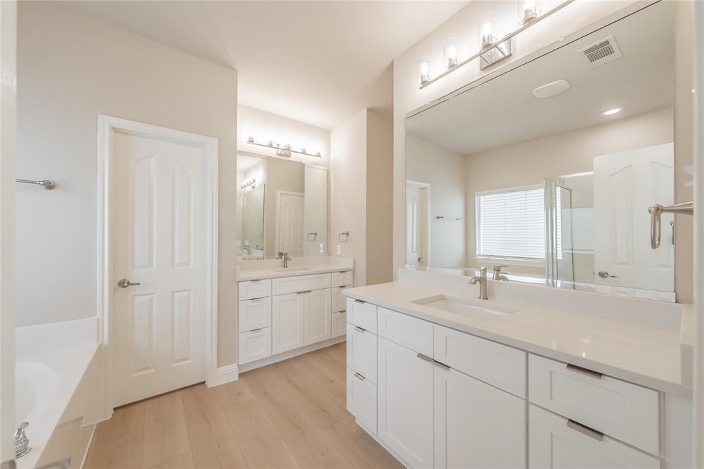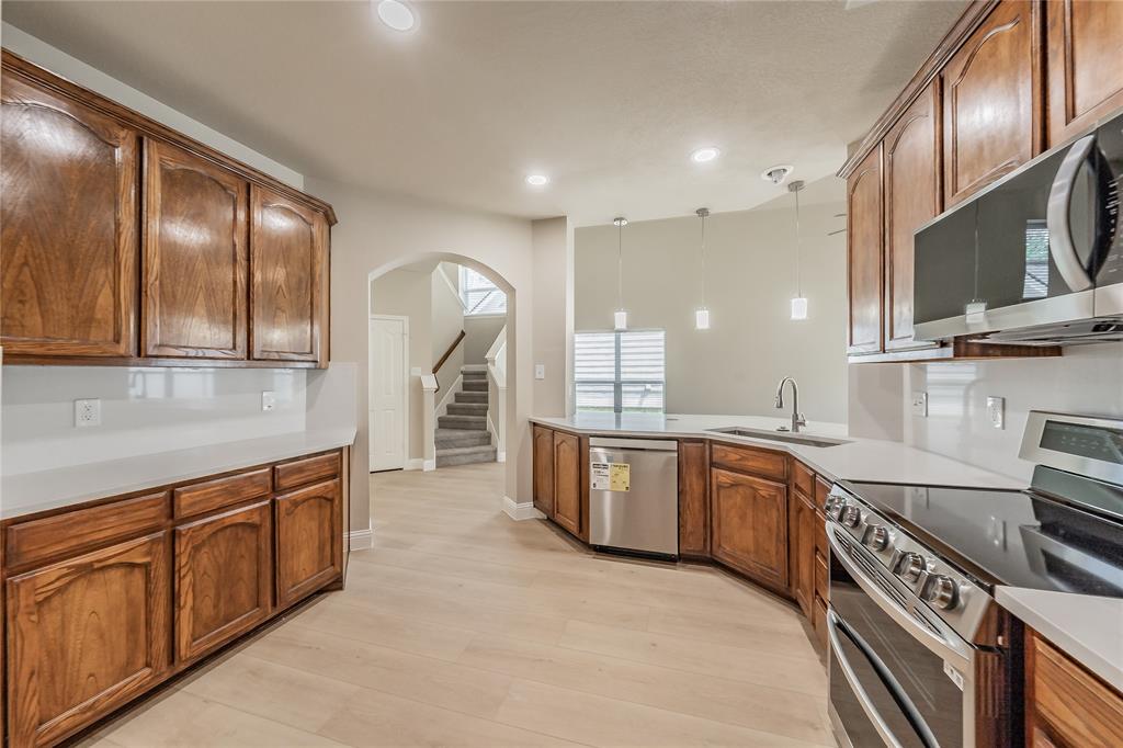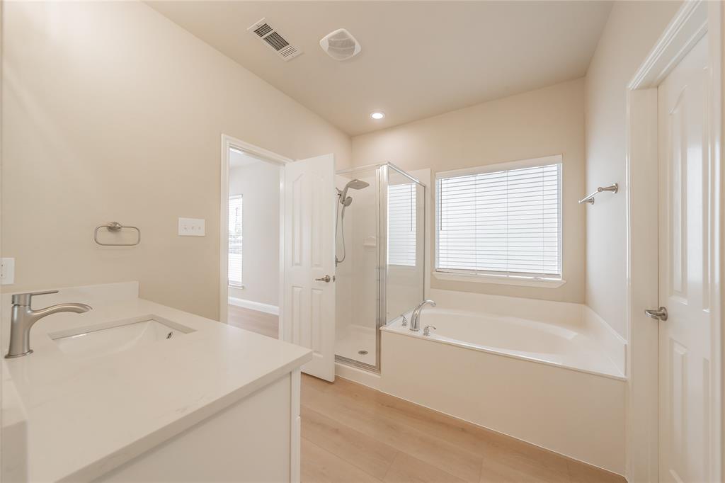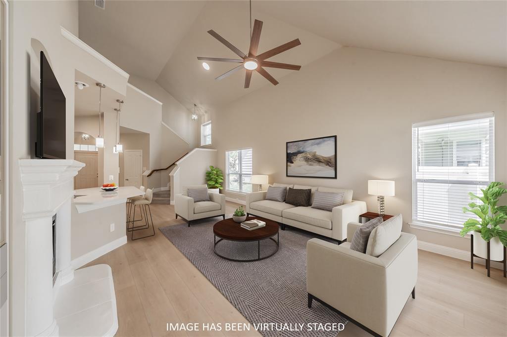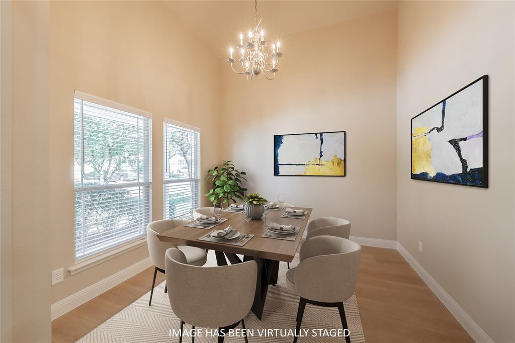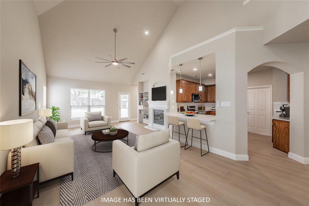 This stunningly renovated 4 bedroom home sits in a prime neighborhood with amenities such as tennis courts, swimming pools, playgrounds, green belts, and peaceful ponds. Enter the front door to encounter a like new feel, with fresh paint, updated lighting, flooring, kitchen, and modern touches throughout. A large living room and formal dining room feature vaulted ceilings and recessed lighting. The first floor primary suite is a serene retreat with a remodeled bath, new flooring, and fixtures. The large grassy back yard provides ample space to roam. This home blends modern design with everyday practicality, ready for you to move in and enjoy. Conveniently located near restaurants, shopping, and major highways, your new home offers comfort, convenience, and accessibility.