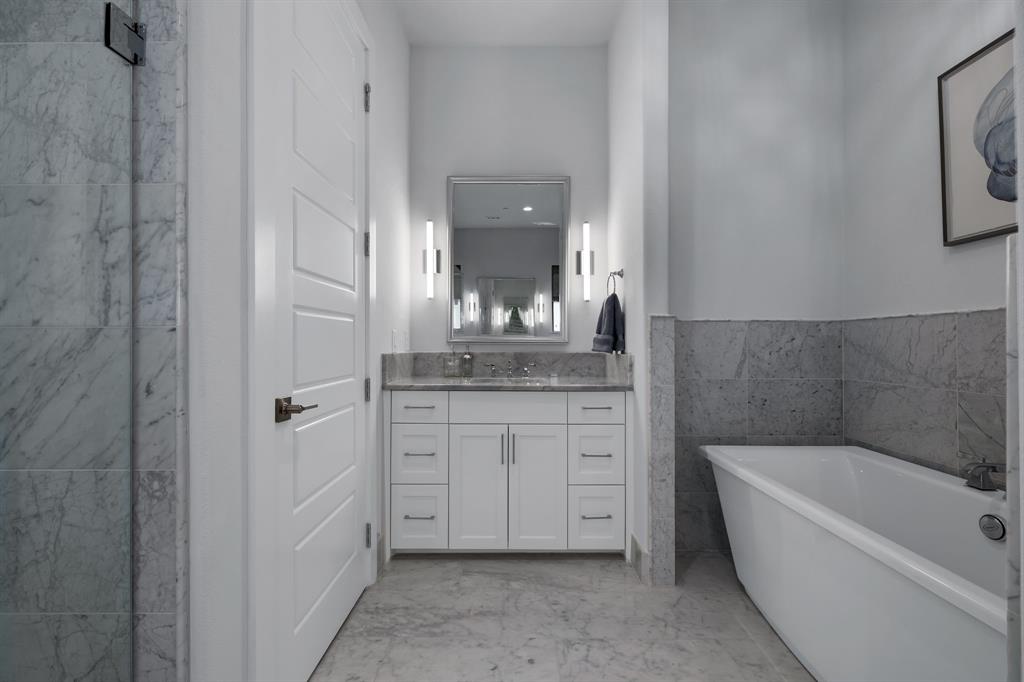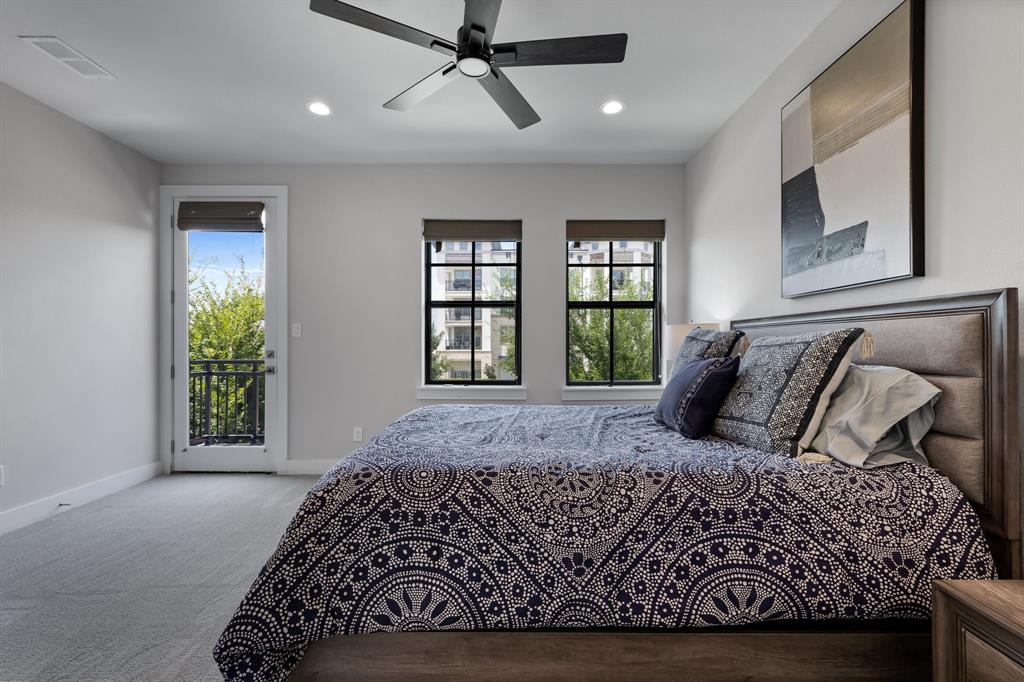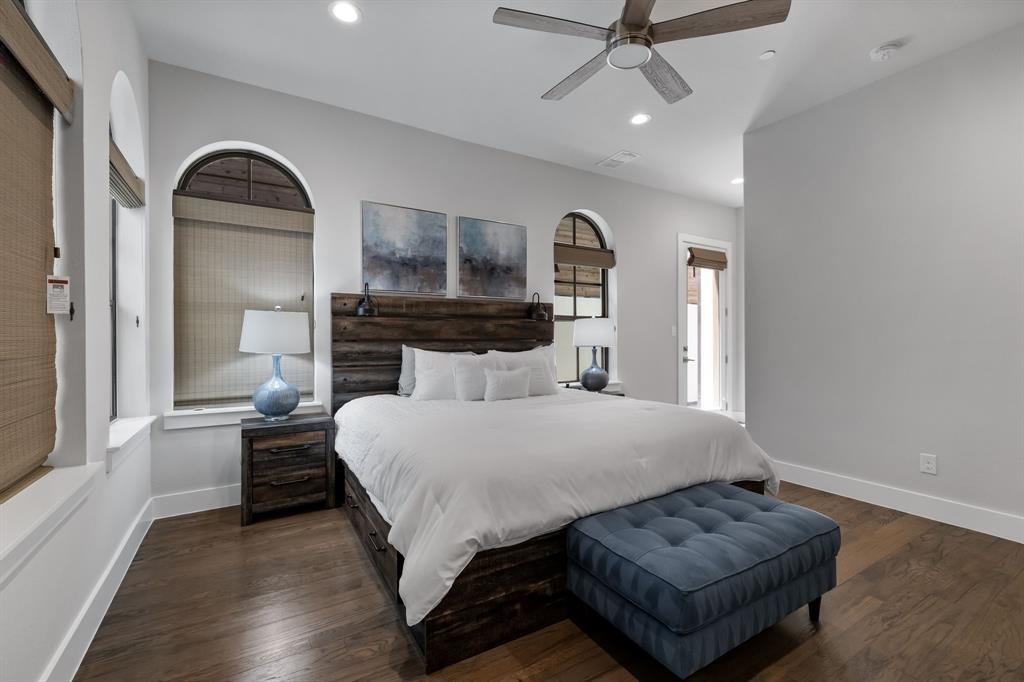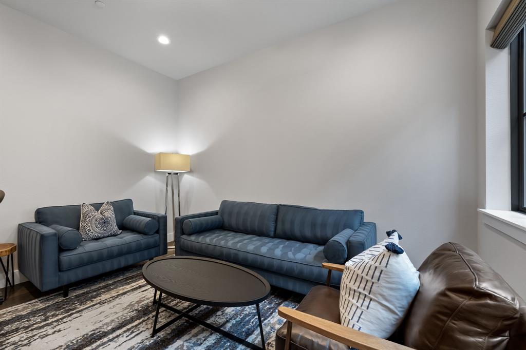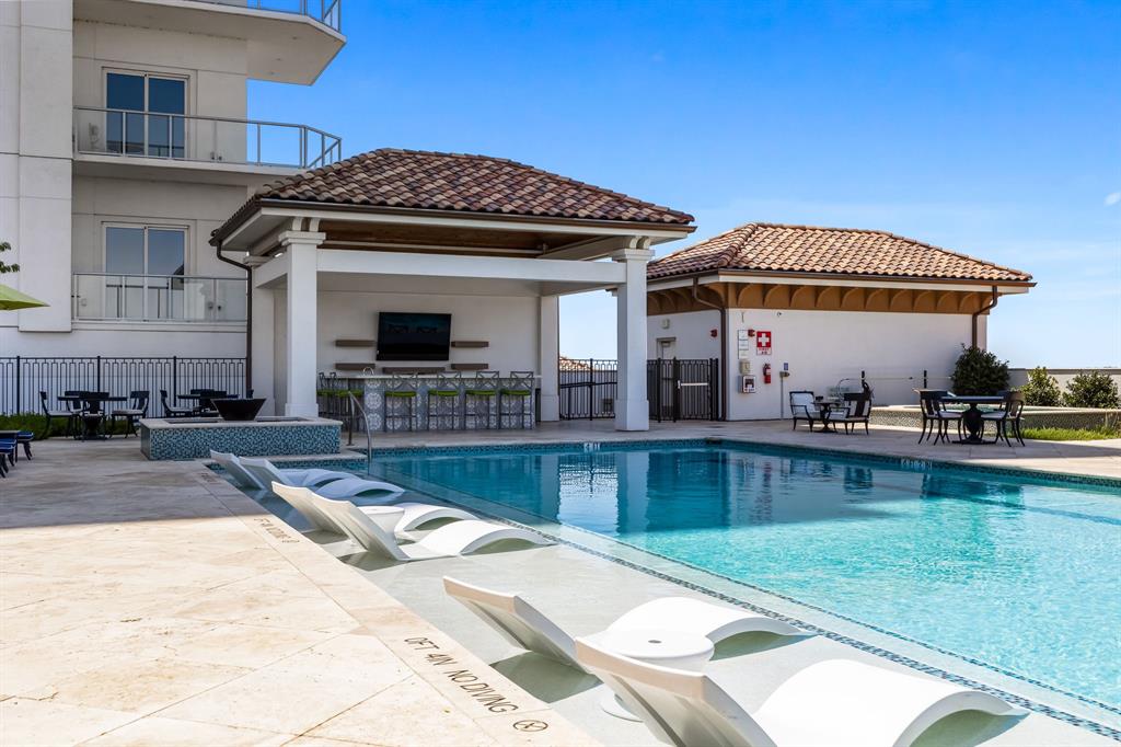 This beautiful townhome brings together comfort and contemporary design. The front door opens to the beautiful living space on the right, with a floor to ceiling stone tile wall, a fireplace, and access to the private courtyard area. The kitchen features its luxury brand name appliances alongside a kitchen island, spacious countertops, and plenty of cabinet storage. Relax in the primary bedroom, connecting to its own ensuite bathroom with marble countertops and floor with two spacious walk-in closets. Upstairs, the game room includes a vast space for gatherings and entertainment, and comes with a wet bar. The additional bedroom has a balcony with views of the surrounding area. This gorgeous home comes with many community amenities such as access to a clubhouse, pool, fitness center, and is in close proximity to a lake and natural park. Many popular dining and entertainment attractions close. Will consider selling furniture with the right offer. (Except exclusions listed in Trans Desk)