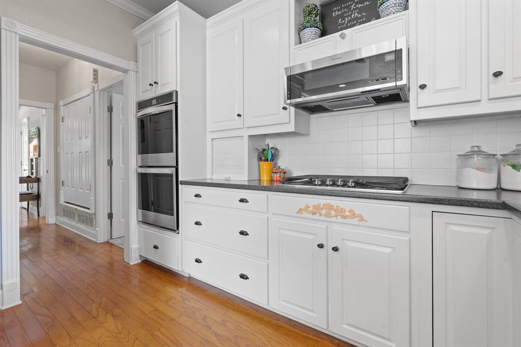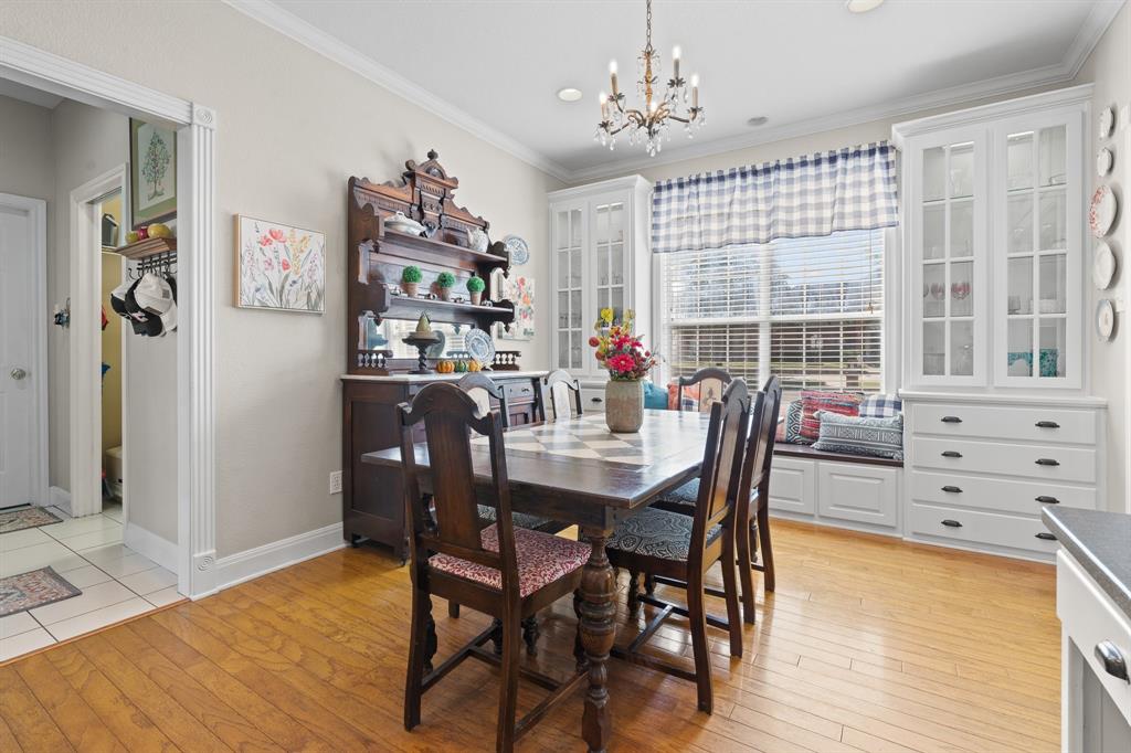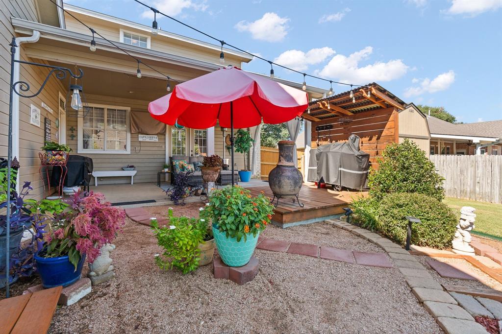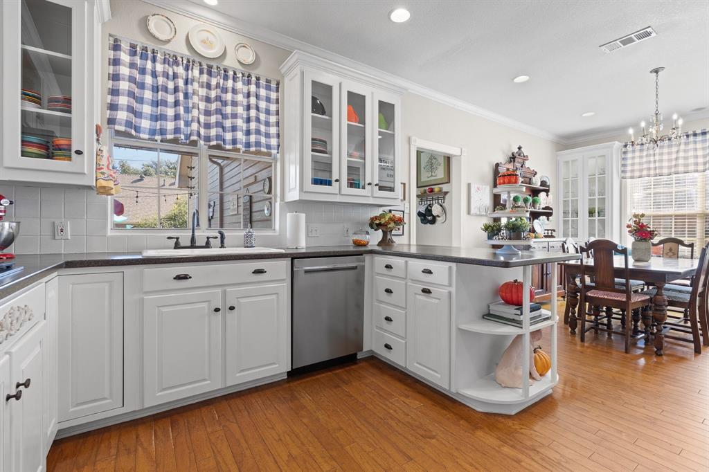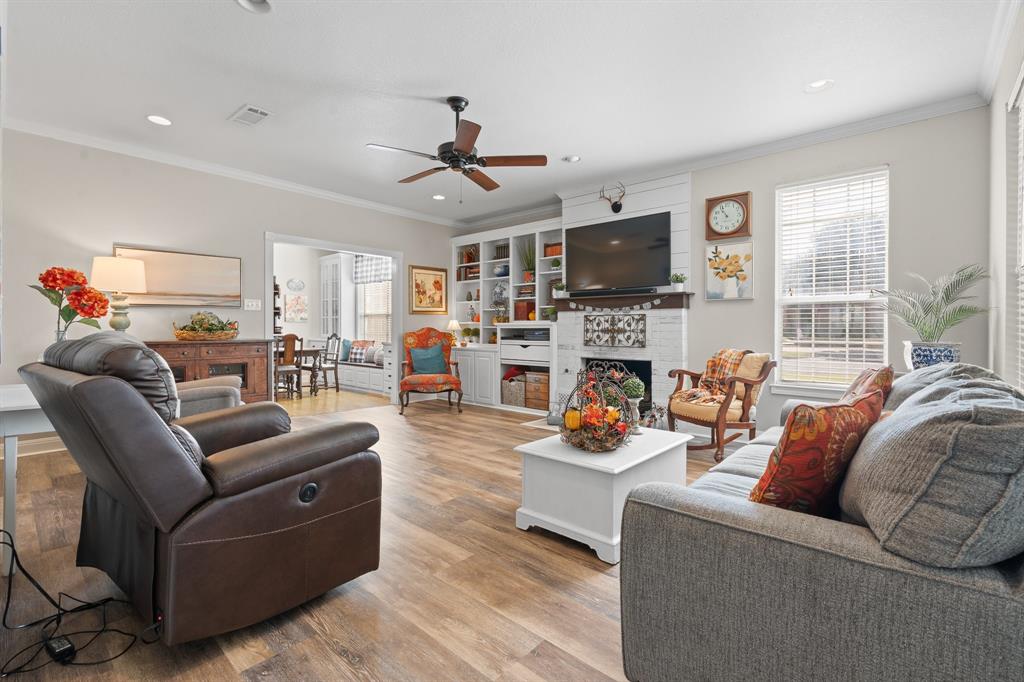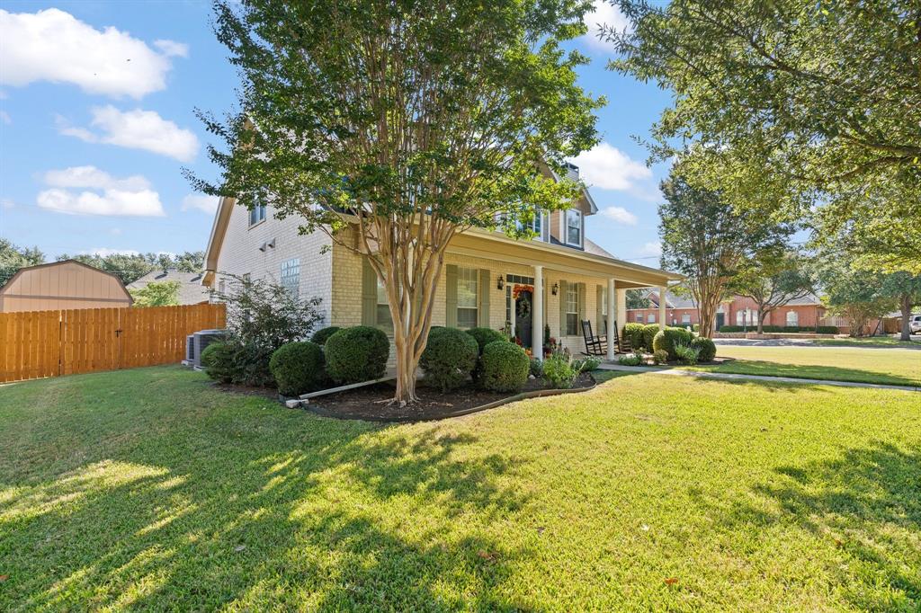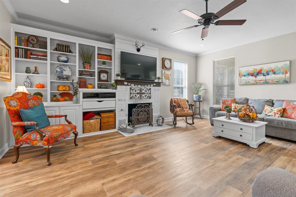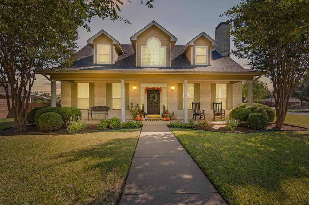 Welcome to this beautifully maintained home nestled on a stunning, tree-shaded lot with an inviting covered front porch—perfect for enjoying a quiet morning coffee or greeting guests. Step inside to find hardwood floors in the entryway, leading you into a spacious living room complete with custom cabinetry and a cozy gas fireplace. The adjacent dining room features additional built-ins and a large picture window that floods the space with natural light, creating a warm and welcoming atmosphere. The kitchen is both functional and inviting, offering abundant storage, a built-in desk, a gas cooktop, and a double oven—just in time for holiday gatherings and everyday cooking alike. The primary suite is a true retreat, with elegant French doors opening to your own private outdoor oasis. The ensuite bathroom includes ample storage and a layout designed for convenience and comfort. Upstairs, you'll find two generously sized bedrooms, each featuring a unique 4x8 alcove with a built-in desk—perfect for homework, hobbies, or creative projects. Two charming secret play areas offer ideal hideaways for kids or additional storage. Each bedroom also includes a private dressing area and a walk-in closet, while the shared bathroom offers exceptional cabinet space and functionality. The backyard is lovingly landscaped and includes a covered patio with an extended deck, ideal for entertaining or relaxing. A wooden swing adds a nostalgic charm—and yes, it stays with the home. If storage is what you're after, you’ll love the 23x23 garage with an additional 11x5 storage closet. There's even more space under the walk-up staircase that leads to a fully floored attic—offering endless potential for a game room, home office, or future expansion. If all of this is not enough, both HVAC units were replaced in 2018, new appliances in 2018, and the water heater has been updated.