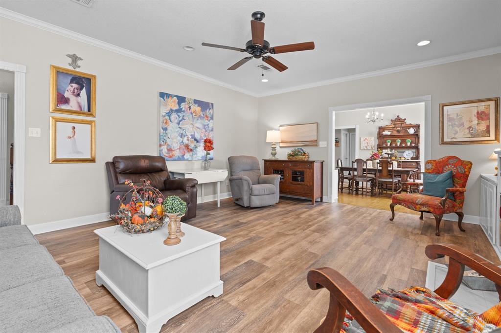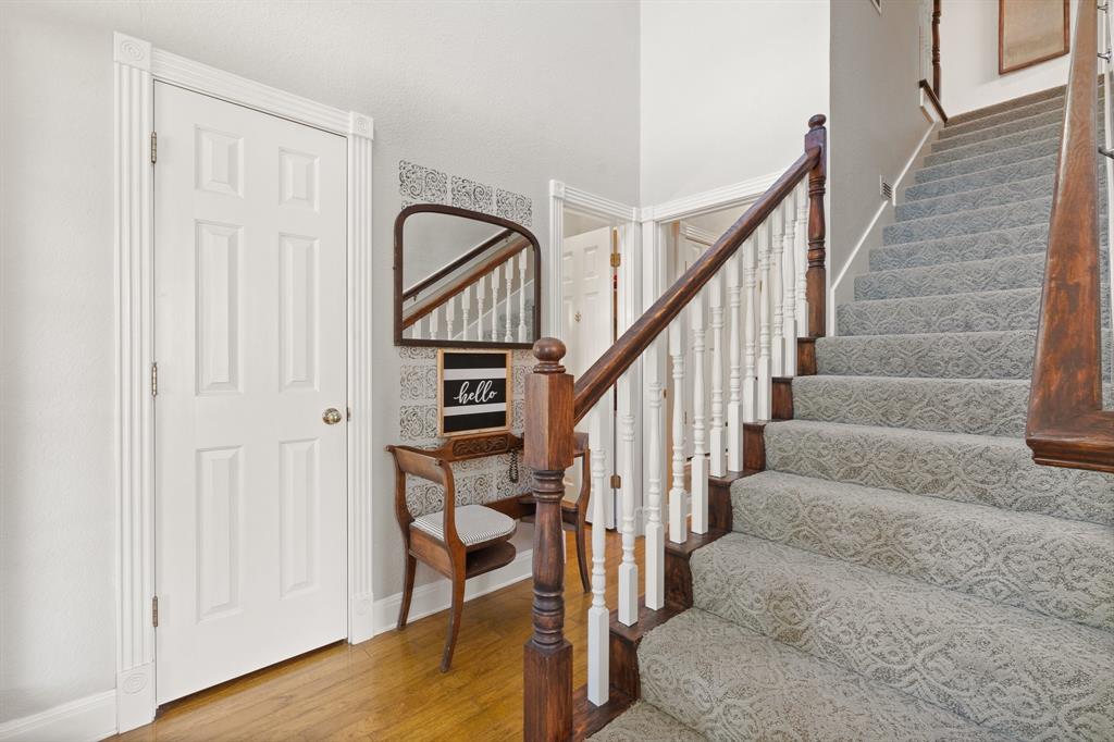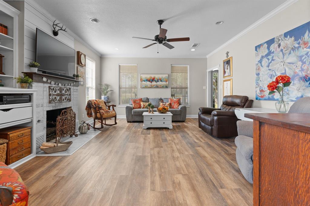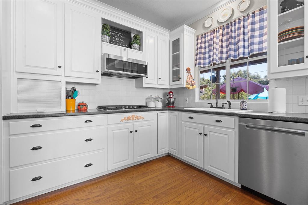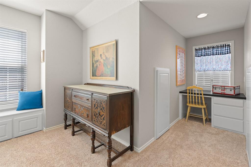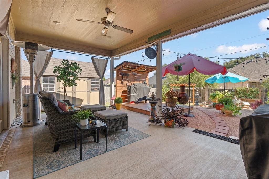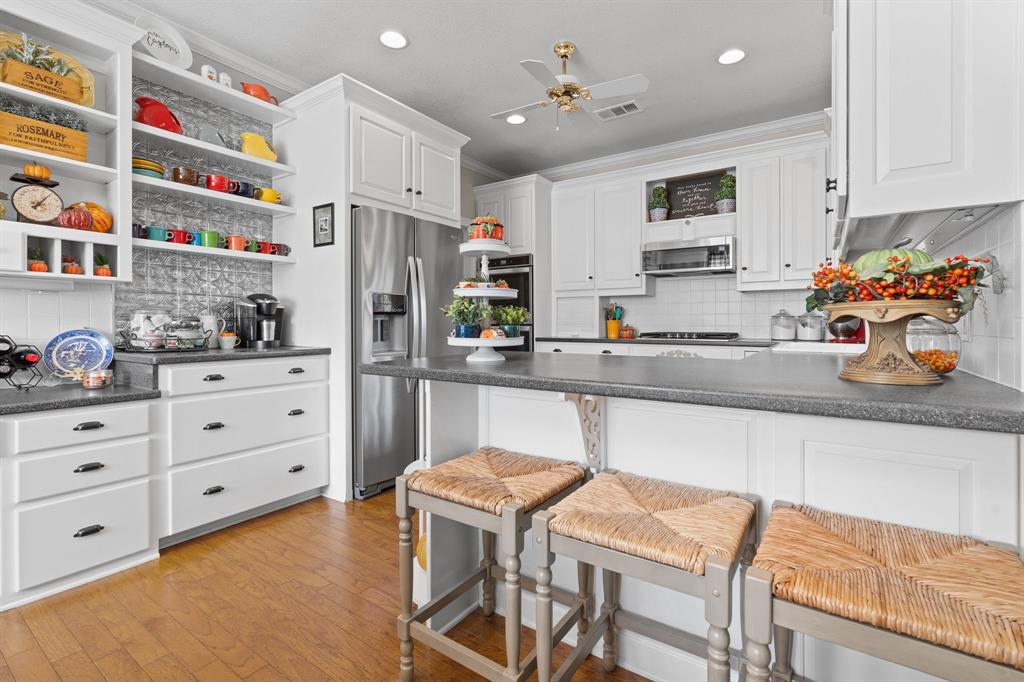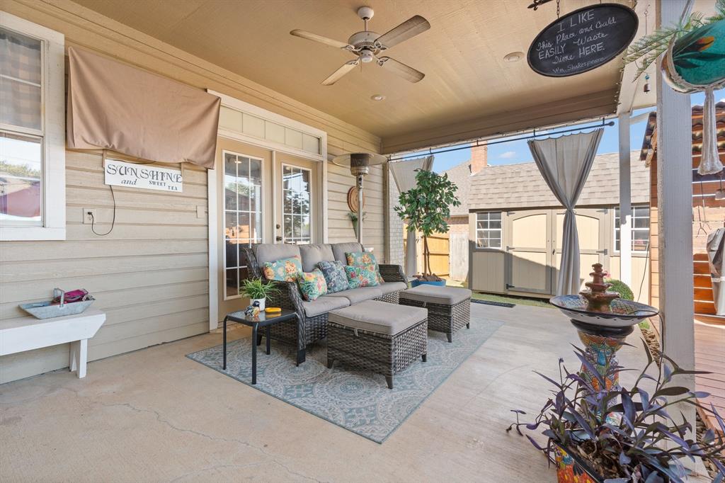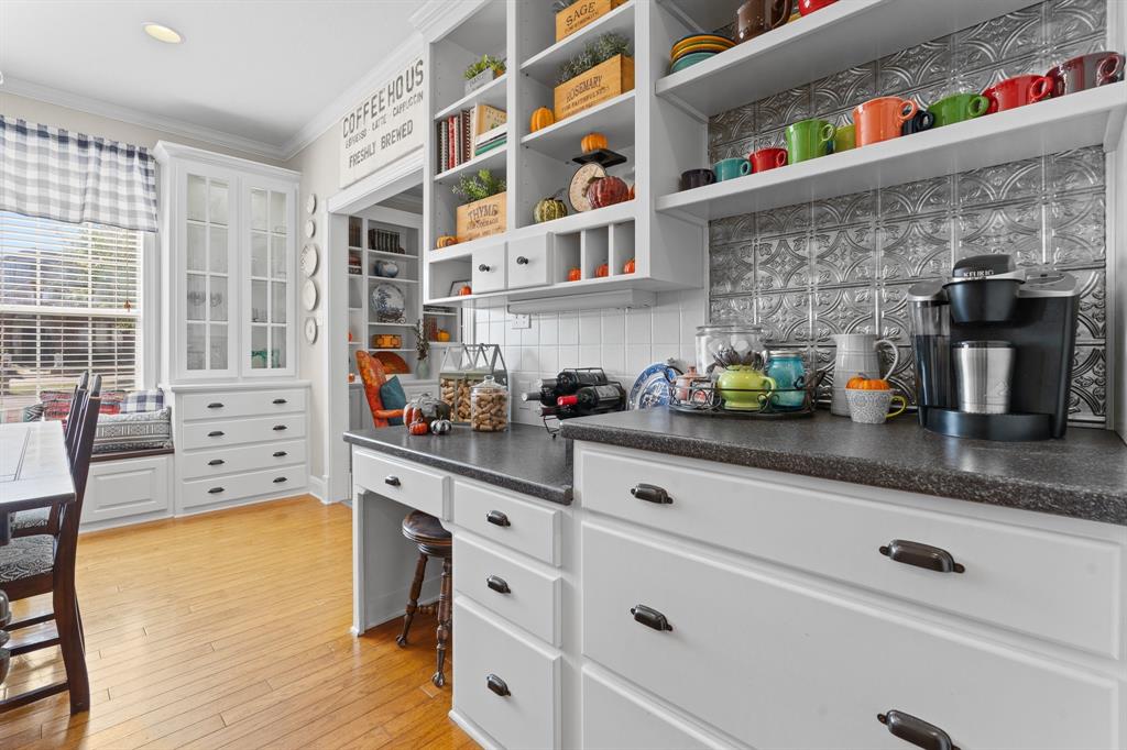 Welcome to this beautifully maintained home nestled on a stunning, tree-shaded lot with an inviting covered front porch—perfect for enjoying a quiet morning coffee or greeting guests. Step inside to find hardwood floors in the entryway, leading you into a spacious living room complete with custom cabinetry and a cozy gas fireplace. The adjacent dining room features additional built-ins and a large picture window that floods the space with natural light, creating a warm and welcoming atmosphere. The kitchen is both functional and inviting, offering abundant storage, a built-in desk, a gas cooktop, and a double oven—just in time for holiday gatherings and everyday cooking alike. The primary suite is a true retreat, with elegant French doors opening to your own private outdoor oasis. The ensuite bathroom includes ample storage and a layout designed for convenience and comfort. Upstairs, you'll find two generously sized bedrooms, each featuring a unique 4x8 alcove with a built-in desk—perfect for homework, hobbies, or creative projects. Two charming secret play areas offer ideal hideaways for kids or additional storage. Each bedroom also includes a private dressing area and a walk-in closet, while the shared bathroom offers exceptional cabinet space and functionality. The backyard is lovingly landscaped and includes a covered patio with an extended deck, ideal for entertaining or relaxing. A wooden swing adds a nostalgic charm—and yes, it stays with the home. If storage is what you're after, you’ll love the 23x23 garage with an additional 11x5 storage closet. There's even more space under the walk-up staircase that leads to a fully floored attic—offering endless potential for a game room, home office, or future expansion. If all of this is not enough, both HVAC units were replaced in 2018, new appliances in 2018, and the water heater has been updated.