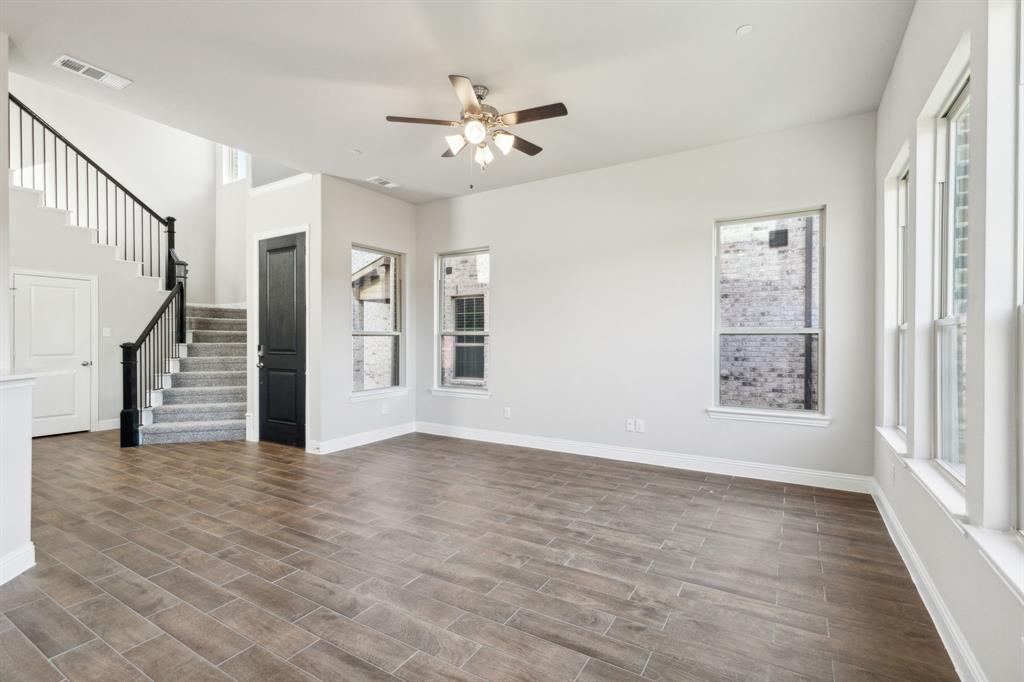 Sheldon II plan - Villas of Middleton in Plano, TX offers centrally located town homes near UT Dallas, the DART station, and Legacy West. With private backyards and a future amenity center and pool, this community blends comfort with convenience. Visit our model home and discover why Villas of Middleton is the ideal place to call yours. Megatel Homes Sheldon II plan is a two-story, 1,893-square-foot home featuring 3 bedrooms, 2.5 bathrooms, a breakfast room, and a 2-car garage. Enjoy the beautiful high open ceiling plan with a full wrought iron railing staircase that is open to entrance. This striking entry will impress your guest when they visit. The open concept family room and dining are also very inviting. The kitchen is large with tons of cabinets with a great bar for gathering. Available with elevation B, showcasing a distinct and stylish exterior.