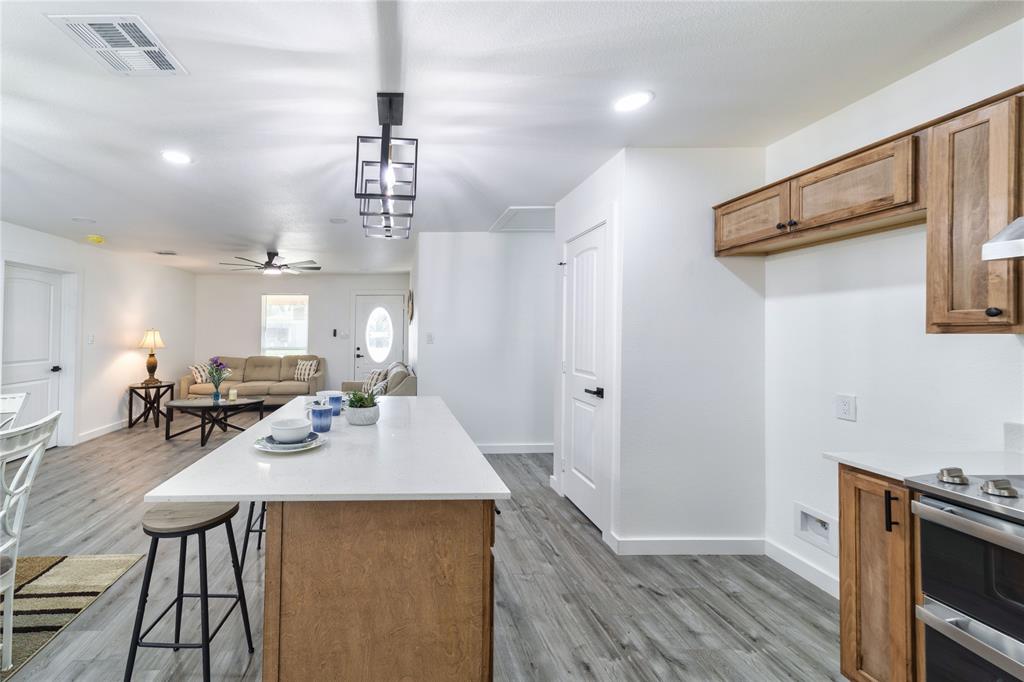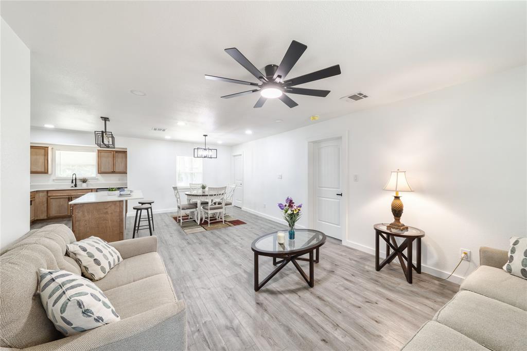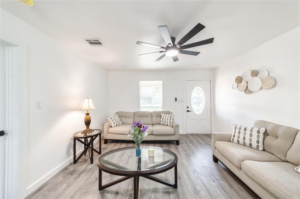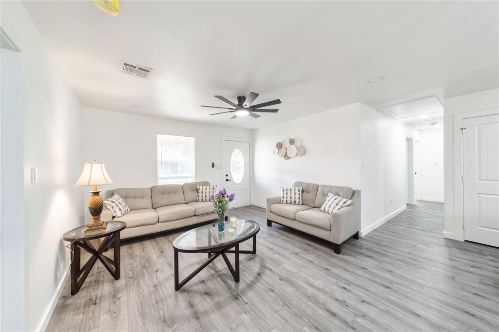 The open-concept floor plan features fresh flooring, updated lighting, and a modern kitchen with new cabinets, countertops, and appliances. Stylishly redone bathrooms and spacious bedrooms make this home as functional as it is beautiful.