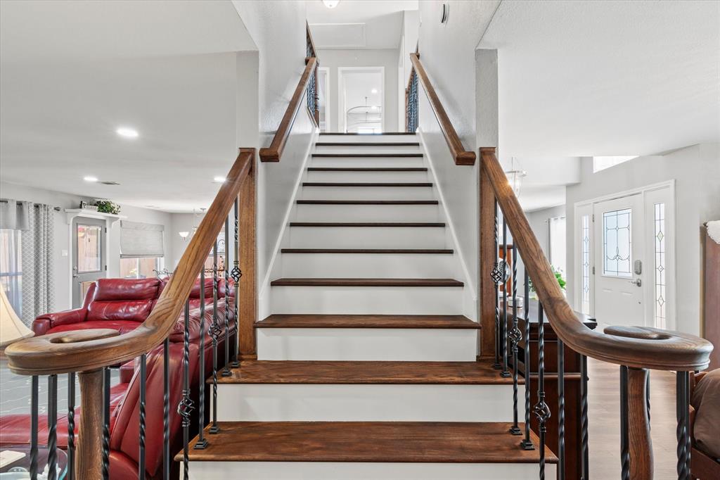 Step inside to an inviting layout designed for both everyday living and entertaining. You’ll love the two spacious living areas, a formal dining room, and a breakfast nook filled with natural light. A striking grand staircase sets the tone, while rich wood-look floors flow throughout the main level. Cozy evenings by the wood-burning fireplace or bright mornings with sun streaming through large windows—this home adapts to every moment.