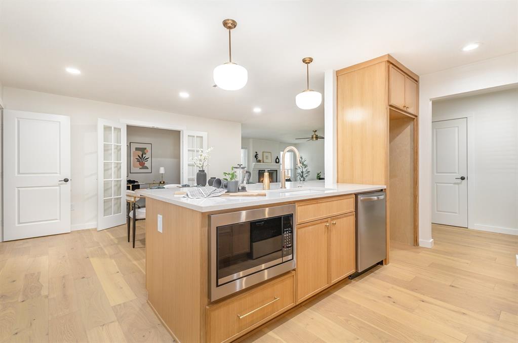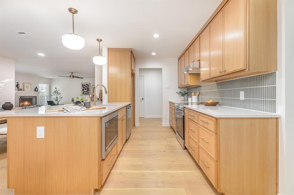 From the moment you walk in, you'll be wowed by the thoughtful design, open layout, and high-end finishes throughout. The heart of the home is a stunning chef’s kitchen featuring quartz countertops, a large island, custom cabinetry, and top-of-the-line stainless steel appliances. Elegant lighting fixtures, designer tile work, and beautiful white oak flooring add warmth and character to every room.