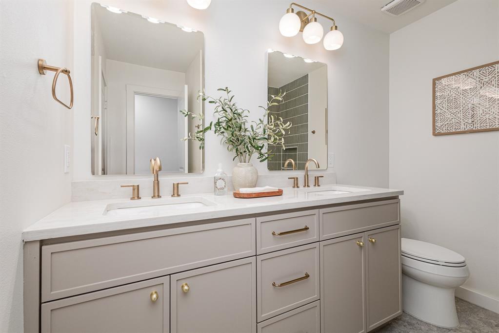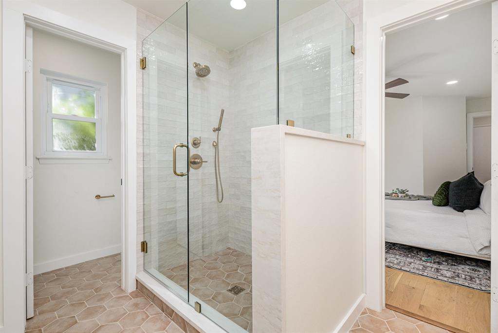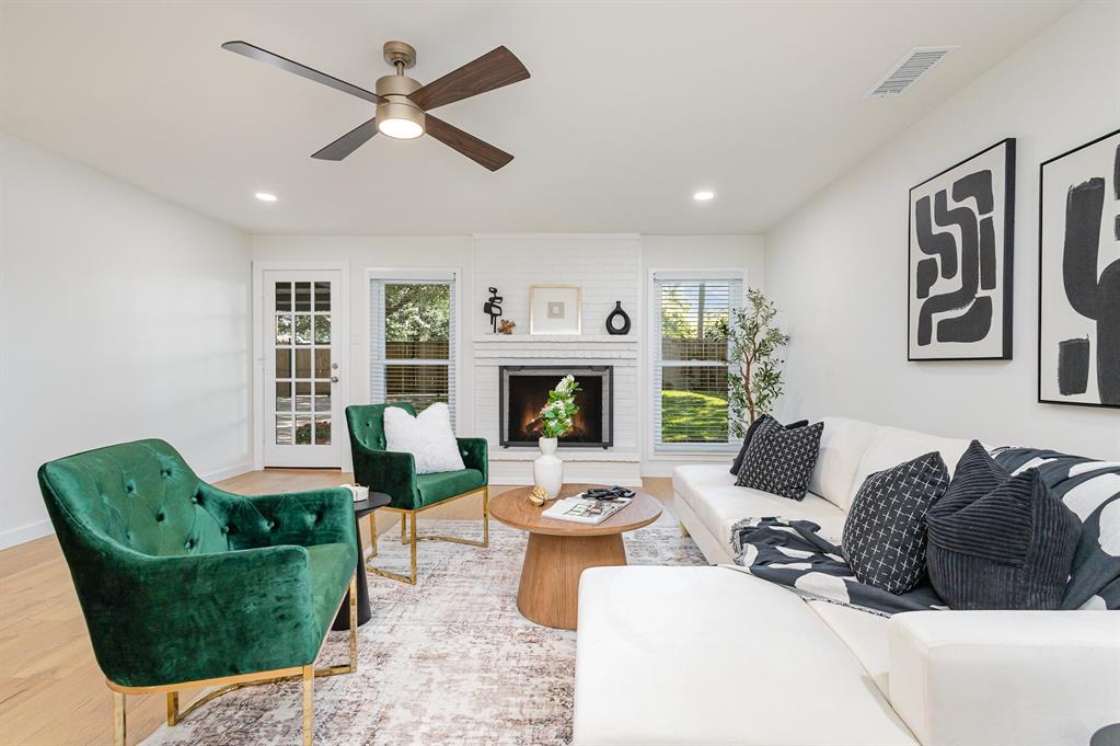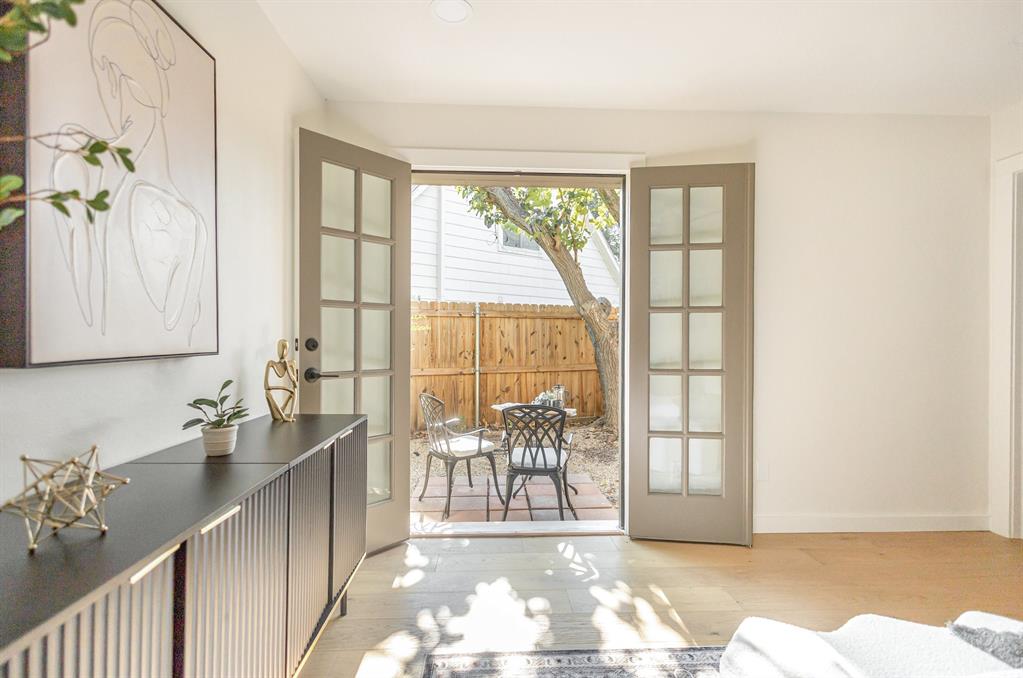 The spacious living area flows seamlessly into the dining space, making it ideal for both daily living and entertaining. The primary suite is a true retreat with french doors that lead to a private sitting area, a spa-like bathroom boasting a walk-in shower, double sink vanity, and carefully curated finishes. Secondary bedrooms are generous in size and share a fully updated hall bath. Fourth bedroom and full bath located at the opposite end of the house to allow privacy for guests. Additional flex space for work at home or play room with french doors.