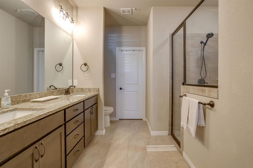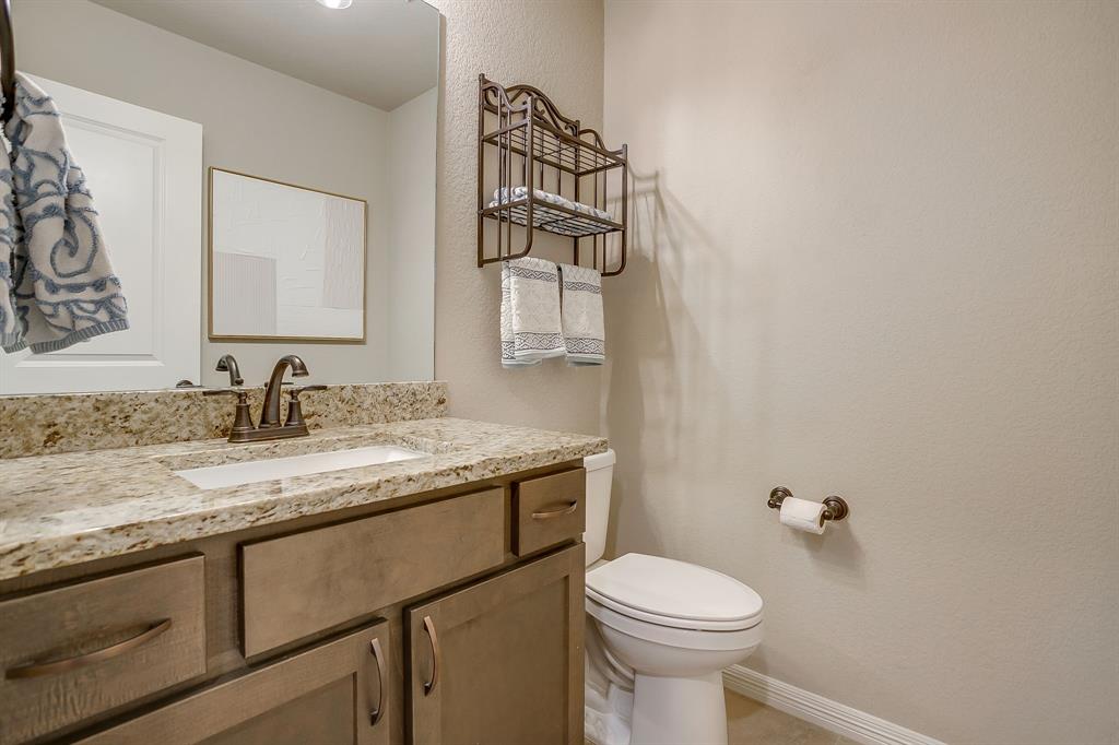 Welcome to this charming 3-bedroom, 2.5-bathroom home nestled in the heart of Heritage Village. From the moment you arrive, the meticulously landscaped front yard sets the tone for the elegance and comfort that awaits inside. Step into the open-concept living room, where you'll find ample space to relax and entertain. The living area seamlessly flows into the dining space, perfect for hosting family gatherings or cozy dinners. Throughout the main living areas, the home features stylish laminate flooring, adding warmth and a modern touch. The heart of this home is undoubtedly the kitchen. Boasting granite countertops and a convenient breakfast bar, it's designed for both functionality and style. The primary bedroom is conveniently located on the main floor, providing a private retreat. It features an ensuite bathroom with dual sinks, a walk-in shower, and a spacious walk-in closet, ensuring ample storage and convenience. Upstairs, you'll find two more comfortable bedrooms and a full bathroom, providing privacy and space for family or guests. Additionally, there's a well-placed half bath on the main floor, perfect for visitors. This home includes a full-size two-car garage, conveniently attached to the property via a breezeway, providing easy access and added security.