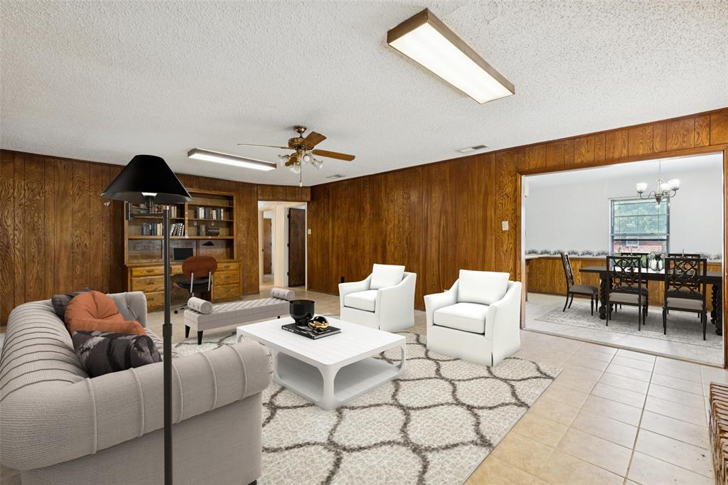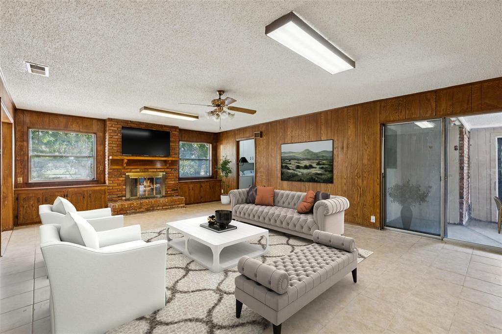 This incredibly charming single-story traditional home offers wonderful curb appeal and endless potential to bring your HGTV-inspired vision to life. Surrounded by mature trees, the neighborhood feels peaceful and private while still being conveniently close to city amenities. Inside, the functional layout features 3 bedrooms, 2 bathrooms, and a spacious living room centered around a cozy floor-to-ceiling fireplace. The eat-in kitchen includes a large breakfast area with room to expand into your dream kitchen if desired. A dedicated laundry area with built-in cabinetry also boasts an oversized adjoining space, ideal for a custom walk-in pantry or mudroom.