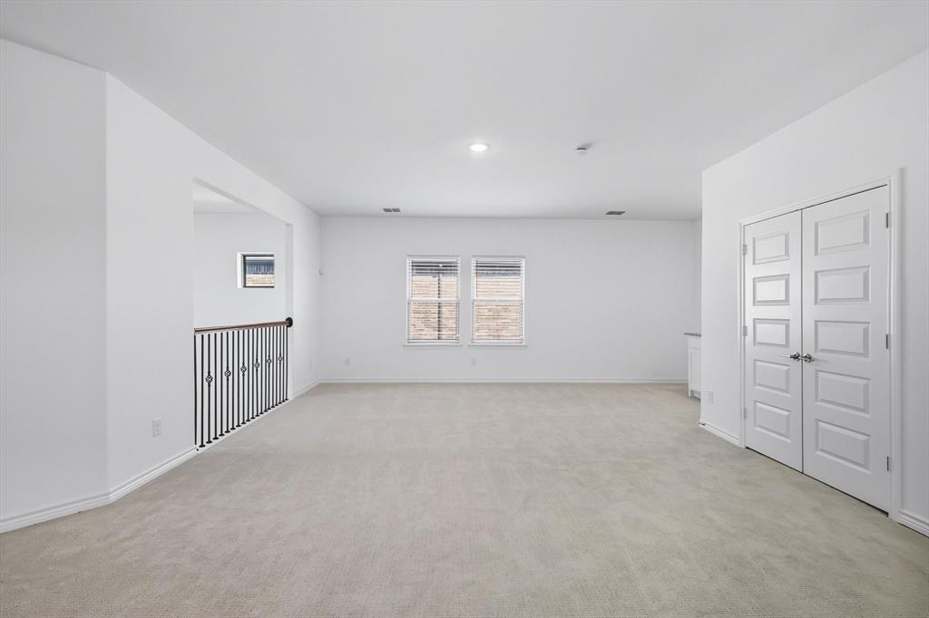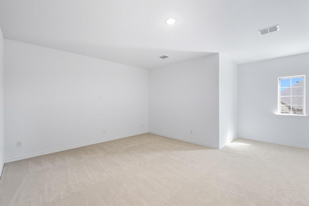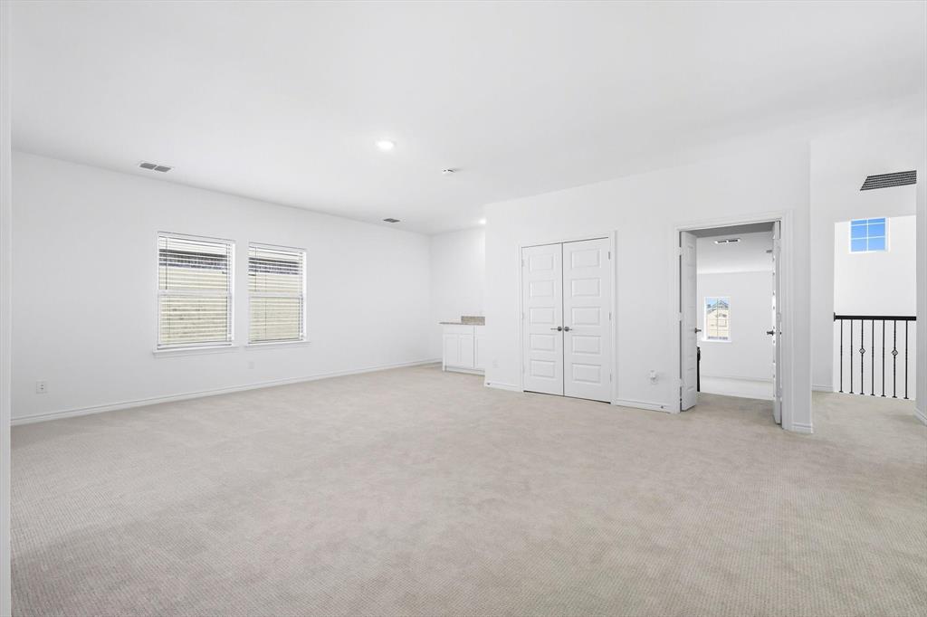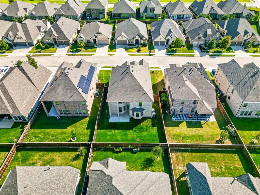 Discover an incredible opportunity to own a brand-new, energy-efficient home in the sought-after Prairie Oaks community. Offering exceptional value, this residence combines style, comfort, and functionality in one stunning package. Step inside to an impressive entry with two-story ceilings, elegant curved staircase, extensive banister work, and stunning natural light throughout. The expansive kitchen is designed for both everyday living and entertaining, with a massive 10’ island, white shaker cabinets, Frigidaire appliances, a 30” gas cooktop, spice cabinet, pot-and-pan pullouts, and a huge walk-in pantry. Just off the kitchen, a versatile living room with floor-to-ceiling windows offers a beautiful place to watch TV, or enjoy the warmth of the fireplace. The first-floor primary suite offers the perfect escape, featuring a spa-like ensuite with double sinks, soaking tub, oversized shower with bench, linen closet, and dual walk-in closets. A flexible first-floor room with adjacent half bath provides versatility for a home office or play room. Upstairs, you’ll find spacious secondary bedrooms, a large loft with a built-in refreshment center and sink, plus a spacious media room. Outdoor living shines with a large covered patio overlooking a deep, lush yard, enclosed with a board-on-board fence for privacy. Enjoy the community clubhouse, pool, and walking trails with quick access to Dallas North Tollway, Highway 380, Lake Lewisville and everyday amenities around Little Elm and Frisco. Additional highlights include an industrial-grade polyaspartic-coated garage along with the peace of mind that comes from the home still being covered under its 10-year structural warranty—better than building new! Designer finishes include a Sherwin-Williams Pure White paint scheme, light oak laminate flooring, neutral carpet, bay windows, five-panel doors, and stained oak banisters with iron spindle details. This home is move-in ready, don't miss this opportunity!