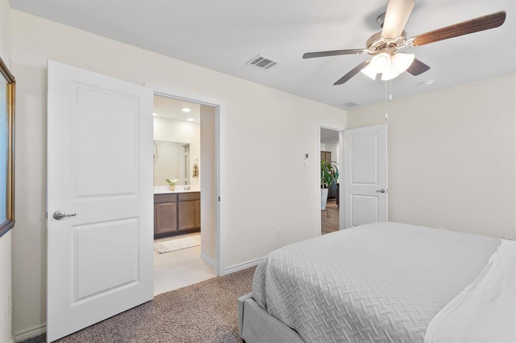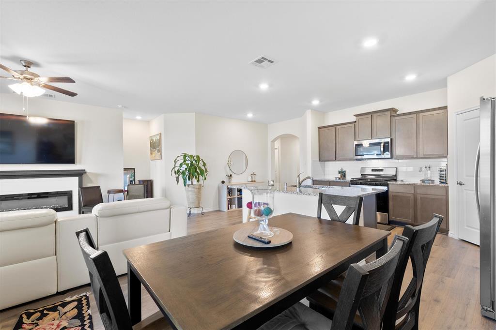 Move right in and relax in your like new home! Enjoy the open floor plan, spacious bedrooms, electric fireplace, large living room, and beautiful kitchen with stainless steel appliances, gas cooking and large island. The primary bedroom is separate from the other bedrooms and offers 2 sinks and walk-in closet. Enjoy quiet evenings on the covered back patio with plenty of space to play in the backyard. Walk to the various neighborhood parks, pools, splashpad and the elementary school. Great home and community! Come see it soon!