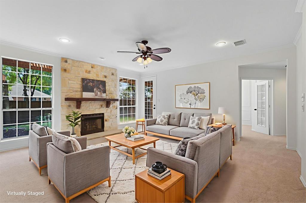 Beautifully updated and move-in ready! This spacious home offers brand-new carpet, fresh interior and exterior paint, and re-grouted tile throughout. The flexible layout includes 3 living areas, an office, and 2 dining spaces, providing plenty of room for work, play, and entertaining. The open kitchen boasts granite countertops, an island, breakfast bar, and access to a side patio—perfect for morning coffee or an herb garden. The oversized primary suite features an updated ensuite bath and a huge walk-in closet. Two split bedrooms share a full bath, while the upstairs game room with French doors connects to a 4th bedroom and full bath—ideal for guests or an in-law suite. Enjoy an oversized 2-car garage with tons of extra storage, beautiful curb appeal with mature trees, new sod, and a freshly stained pergola. Major systems including the roof, AC units, furnaces, and water heater have all been replaced within the last 5 years for peace of mind. Located in highly rated Allen ISD with access to a community pool and park!