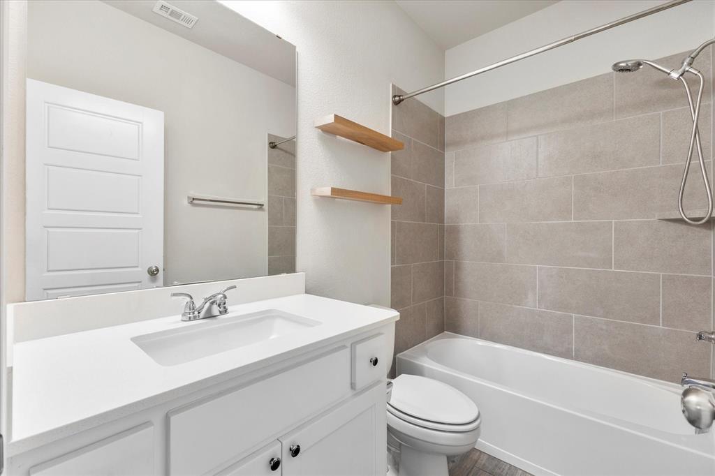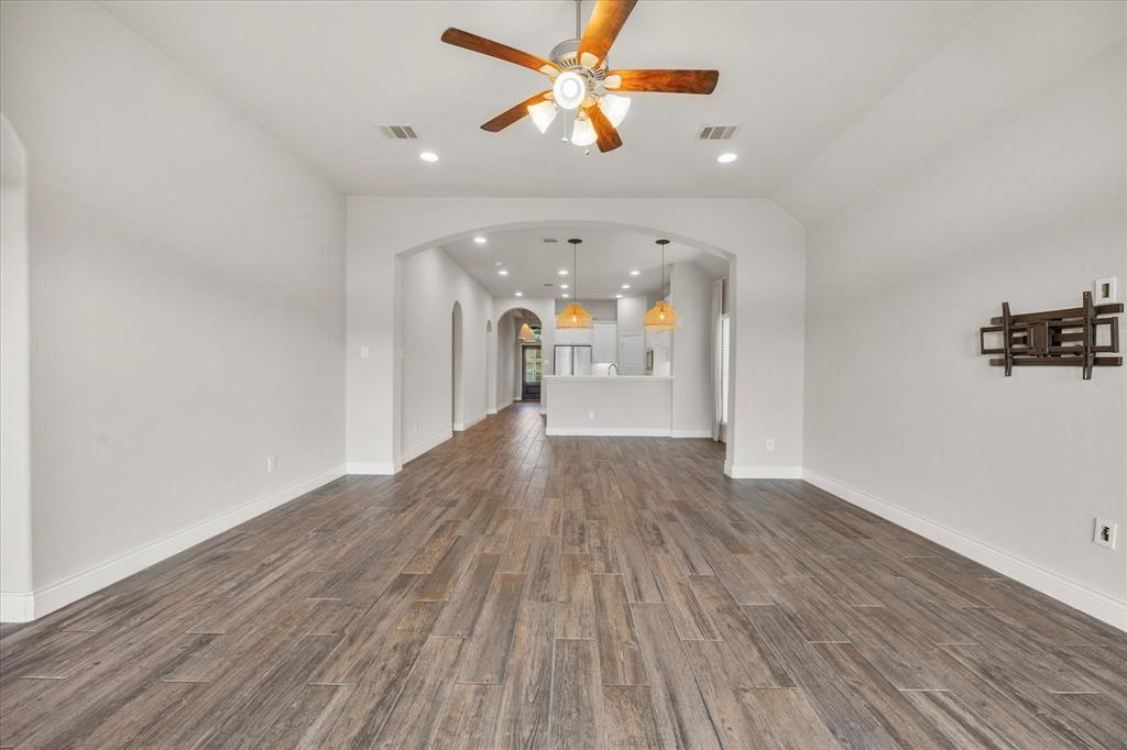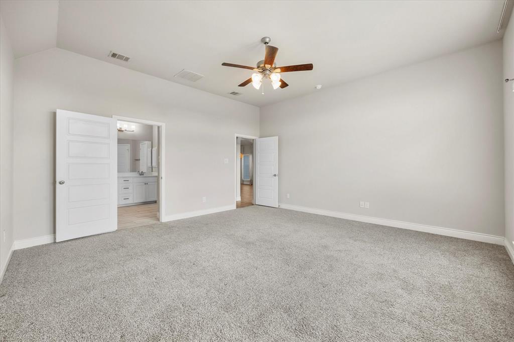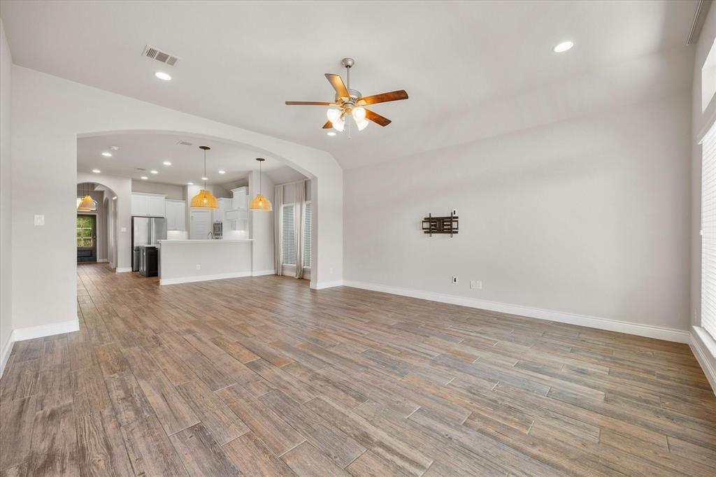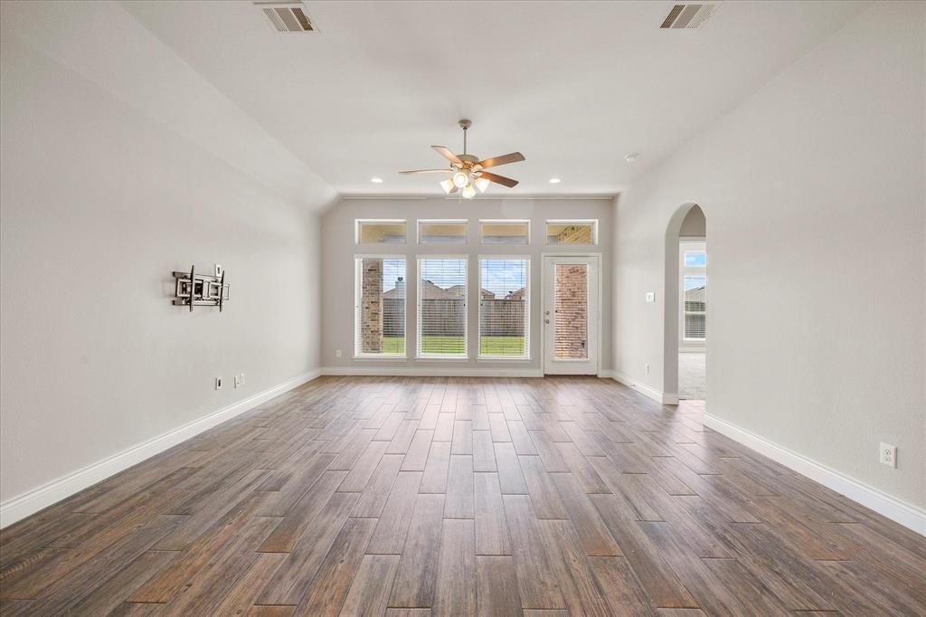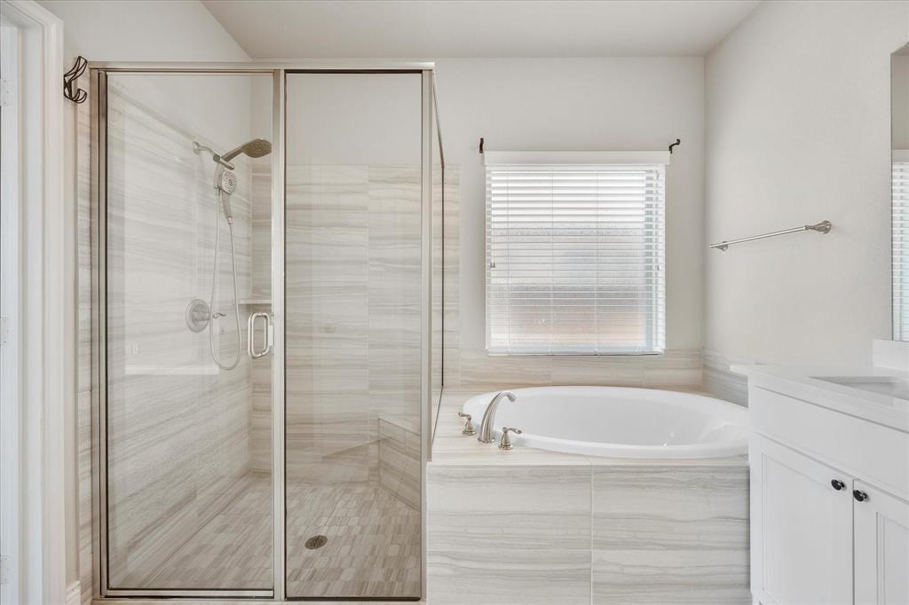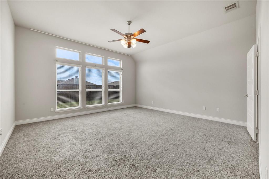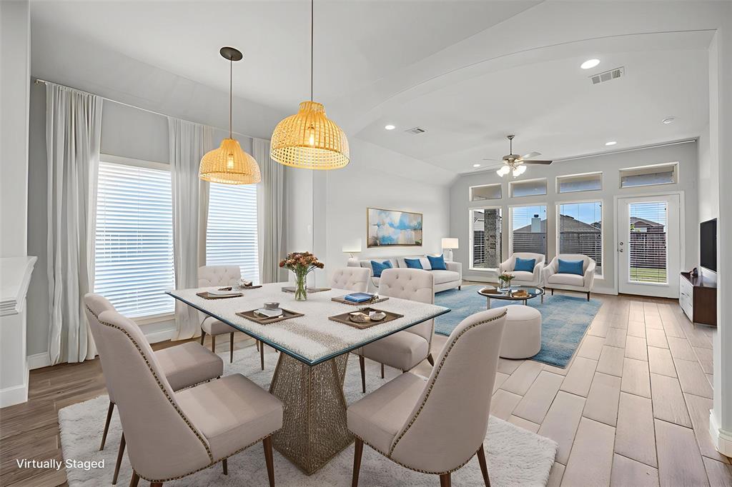 Welcome to this beautifully built home by Perry Homes! From the moment you step inside, an extended entry with soaring 13-foot ceiling creates an impressive first impression and sets the tone for the elegance that follows. This thoughtfully designed 3-bedroom residence combines modern style with everyday comfort, offering wood-look tile flooring throughout the open living and entertainment areas and plush carpet in the bedrooms for added warmth. The chef-inspired kitchen features generous counter space and a center island that connects seamlessly to the dining area and spacious family room, perfect for gatherings large or small. Natural light pours in through expansive windows, enhancing the bright and inviting atmosphere. A private home office is ideally located at the front of the home near the entry, providing a quiet and functional space for remote work or study. The luxurious primary suite serves as a peaceful retreat, complete with a spa-like bath featuring dual vanities, a soaking tub, and a separate glass-enclosed shower. Secondary bedrooms are generously sized with comfortable layouts, creating a balance of privacy and convenience. Outdoor living is elevated with a covered patio overlooking the backyard, ideal for entertaining or simply enjoying the evening breeze. Additional highlights include a mudroom for extra organization, a two-car garage, and timeless Perry Homes craftsmanship that blends quality with style. This home is designed to offer the perfect combination of sophistication, comfort, and functionality in a location you’ll love.