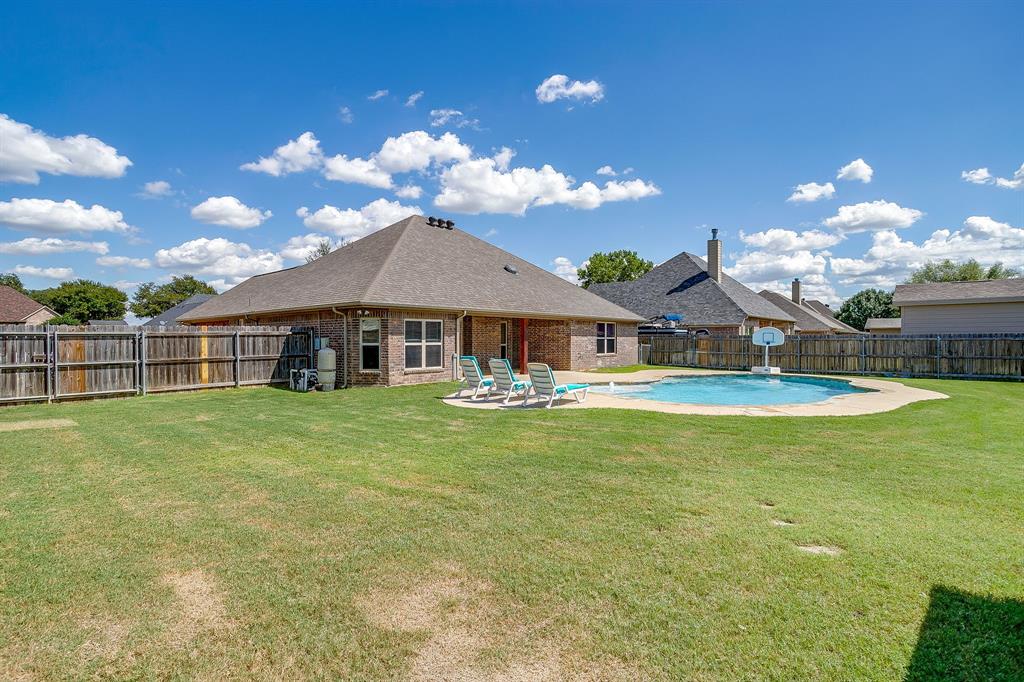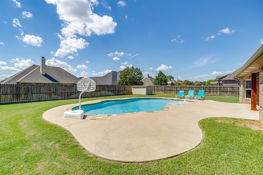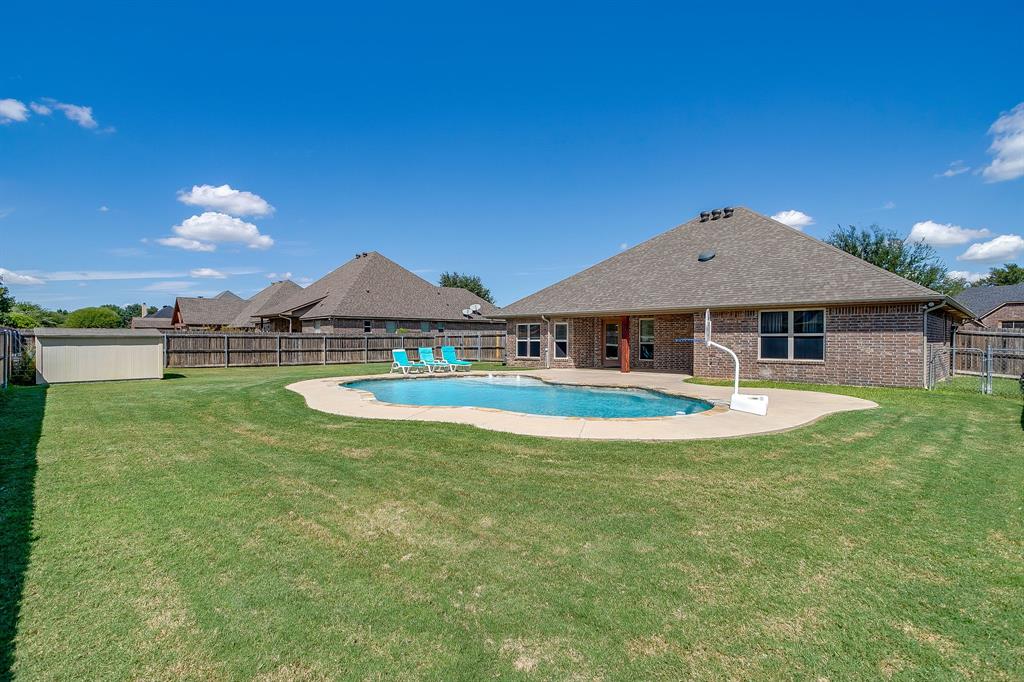 Willow Ridge – No HOA! This beautiful home truly has it all. Step outside to your private backyard oasis featuring an in-ground gunite pool with sun step, lush landscaping, full sprinkler system, and a spacious covered patio perfect for entertaining. A large storage building adds convenience, and the fenced yard provides plenty of room to play. Inside, the flexible floor plan offers 3 bedrooms and 2 baths downstairs plus a large upstairs living area or 4th bedroom with a walk-in closet and full bath. The kitchen boasts stainless steel appliances, rich knotty alder cabinets stained in walnut, granite counters, and tile flooring. The inviting living room centers around a cozy gas fireplace. With great curb appeal, an oversized side-entry drive, and a generous garage, this property checks all the boxes. Ideally located with quick access to Fort Worth, shopping, and Lake Granbury. Don’t wait—this one won’t last!