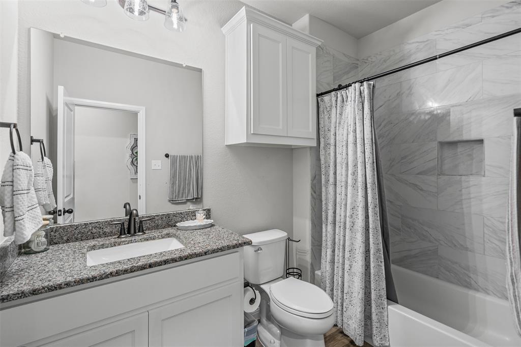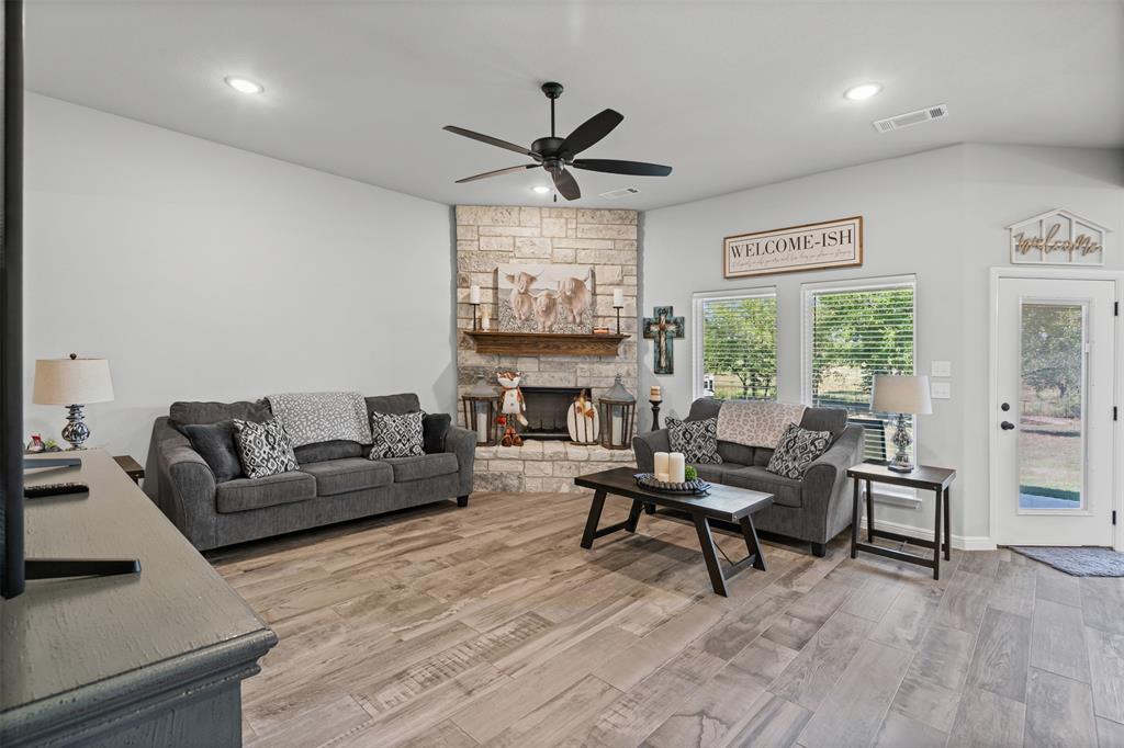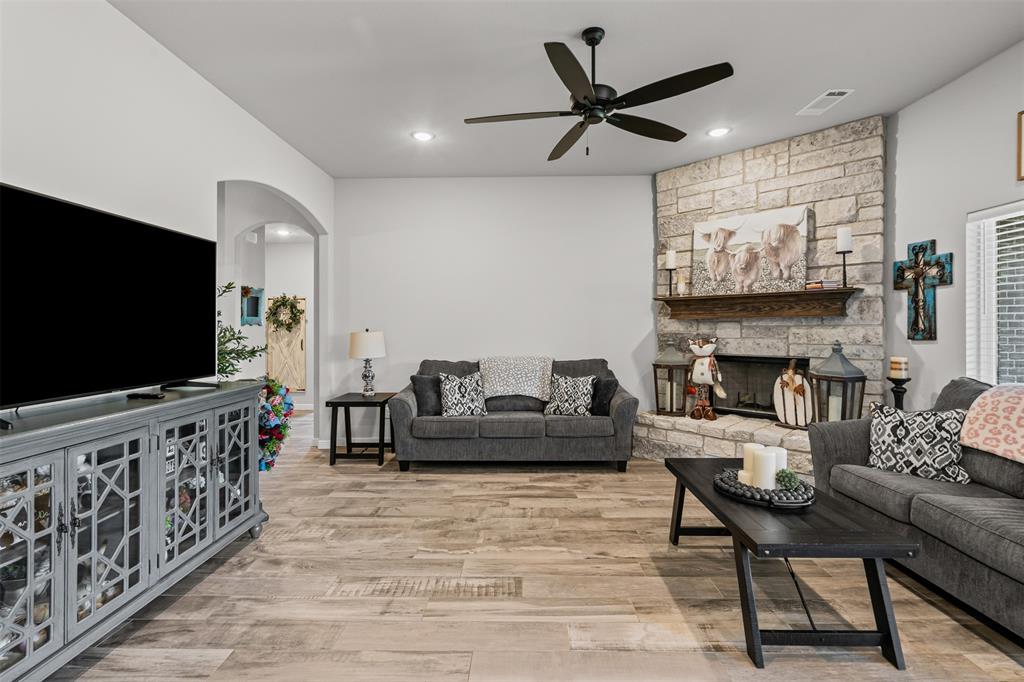 Looking for a move-in ready home with space, style and location? This 4 year old, 4 bedroom, 2 bath brick home sits on a full one-acre lot in the highly sought after Azle school district. Inside you'll find a spacious open floor plan with modern finishes throughout. The kitchen is a true showstopper with a gorgeous granite island that doubles as the perfect breakfast bar or gathering spot. Enjoy shade covered evenings on the back porch and the ease of landscape maintenance with the sprinkler system. This home blends comfort, quality, and convenience in one beautiful package.