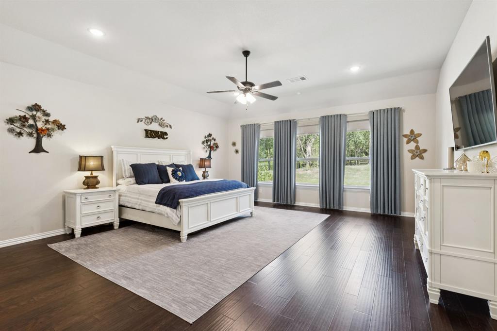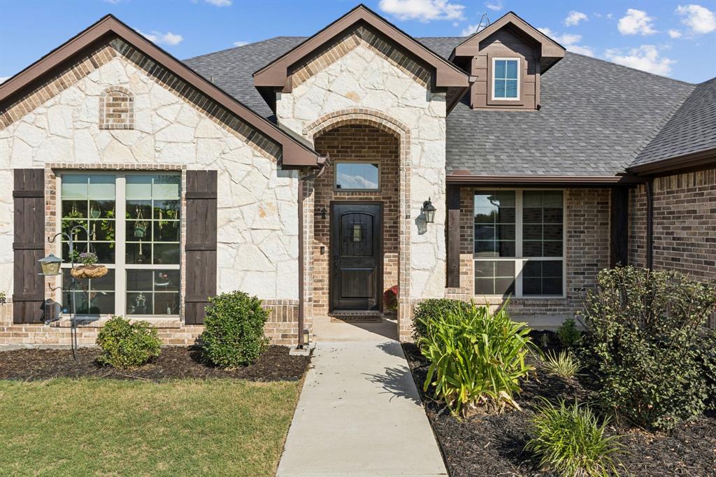 Welcome to this remarkable 4BD, 3BTH one story home located in the Hawkeye Ridge subdivision. With 1.1 acres of land on a corner lot, this 2020 Riverside Builders home has all the energy efficient and modern amenities in a beautiful country environment. The main living area offers an open concept layout with high ceilings and an abundance of natural light. A display of large windows shows expansive views of the backyard with trees. The kitchen area is perfect for entertaining featuring all SS appliances, electric cooktop, walk-in pantry, espresso colored cabinets and a ten feet long island. The master suite features a large ensuite bath with double vanities, large shower, jacuzzi tub, and a walk-in closet. Two spacious bedrooms share a bathroom. Sellers have a flex space that can be used as a fourth bedroom. The formal dining room was converted to a study with custom pocket doors. Relax on the covered back patio with a grilling area and cozy wood fireplace. The expansive back yard has room for a pool and no HOA allows for lifestyle flexibility. A three car garage and drive way provide ample parking options. Post construction, seller upgrades include a landscaped backyard with fruit trees and a rod iron perimeter fence. Indoor upgrades include design inspired ceiling fans, pendants over the kitchen island, and a chandelier. Other upgrades include subway tile backsplash in the kitchen and custom window blinds. Enjoy the benefits of country life in this luxurious home!