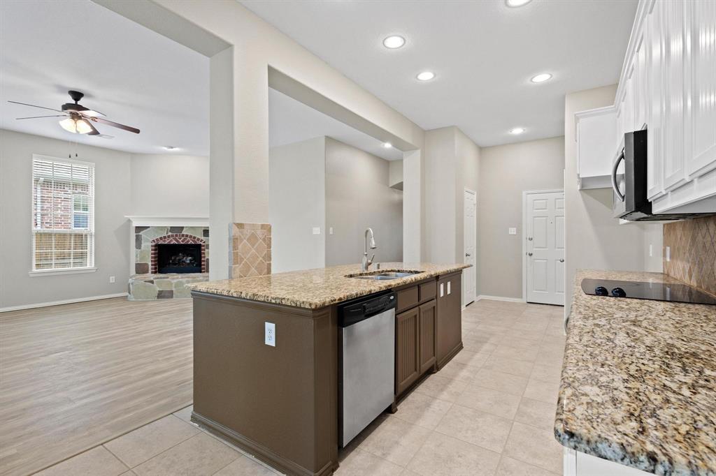 Welcome to this stunning Highland home in highly desired Liberty neighborhood, impeccably maintained and move-in ready! Featuring 3 spacious bedrooms, 2 full baths, a dedicated study, and a 2-car garage. The gourmet island kitchen opens to a soaring vaulted family room with a charming brick and stone corner fireplace. Enjoy upscale finishes including granite countertops, a tumbled stone backsplash, stainless steel appliances, an electric cooktop, breakfast bar, and a cozy dining area.