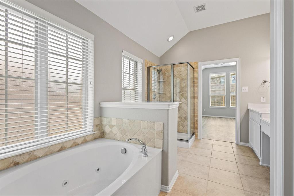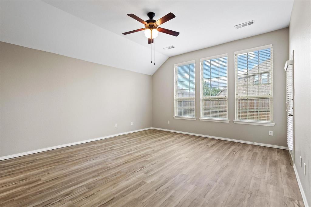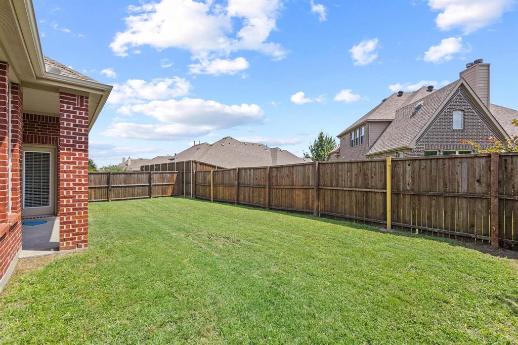 The expansive primary suite offers a spa-like bathroom with dual vanities, a jetted tub, separate shower, and a generous walk-in closet. Step outside to a covered back patio, perfect for relaxing or entertaining, with a private fenced yard. Enjoy access to a community pool and highly-rated Melissa ISD schools—plus so much more!