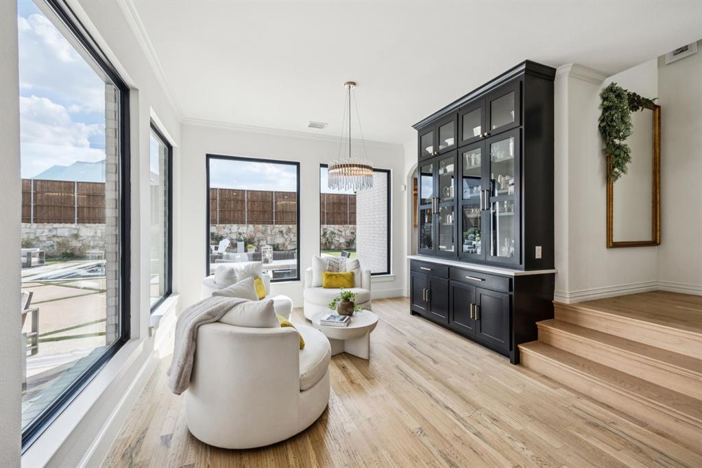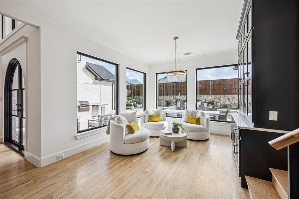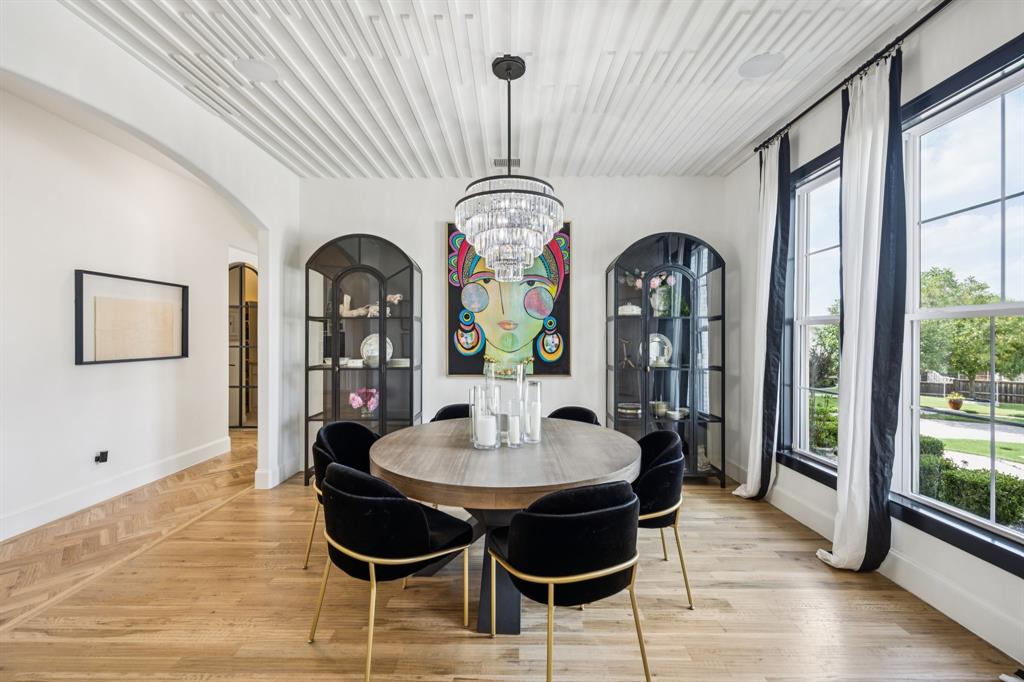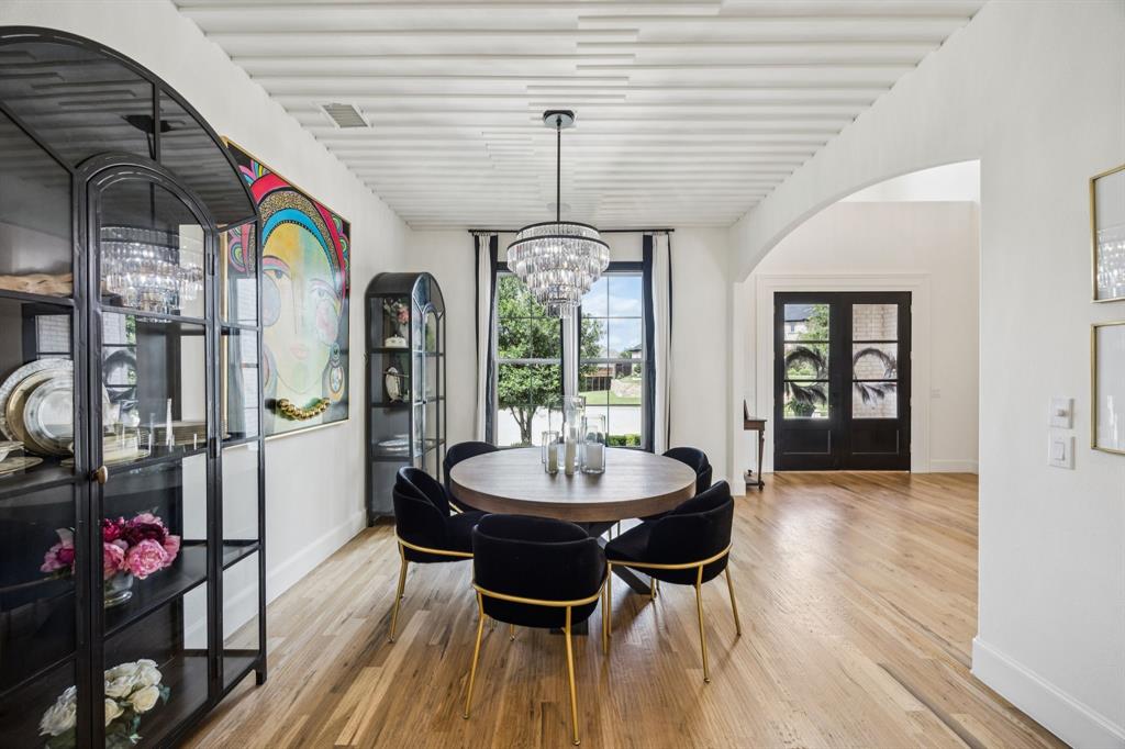 Welcome to an unparalleled blend of craftsmanship, elegance, and everyday comfort in this one-of-a-kind Jeff Pfeifer estate, nestled at the end of a private cul-de-sac in the prestigious Saddle Creek community of Prosper. Constructed in 2019, this 5,025-square-foot architectural masterpiece sits on a beautifully manicured 0.316-acre lot, perfectly balancing refined luxury and inviting livability.Step inside to discover incredible white oak natural hardwood floors , intricate crown molding, soaring vaulted ceilings, and an abundance of natural light flooding in through expansive windows. Every detail exudes timeless sophistication—from designer finishes and exquisite built-ins to custom granite accents that elevate the entire aesthetic. This thoughtfully designed 5-bedroom, 7-bathroom residence is crafted for discerning tastes, with open-concept living spaces that flow effortlessly to suit both intimate gatherings and grand entertaining. A hidden media room adds an exclusive touch of sophistication, while generous walk-in closets in every bedroom ensure both style and practicality. The chef-inspired kitchen, perfectly positioned between the main living and dining areas, serves as the heart of the home and opens seamlessly to an outdoor haven. Step outside to experience your private resort-style oasis, where a luxurious pool, state-of-the-art outdoor kitchen, and professionally landscaped surrounds create the ultimate setting for endless summer days and star-lit evenings.