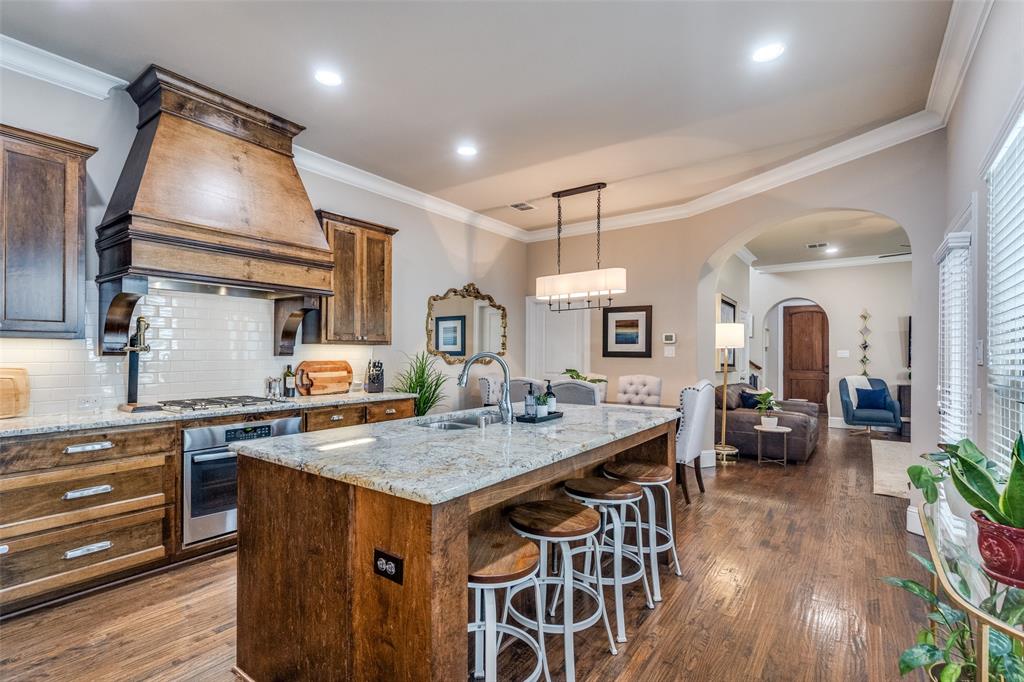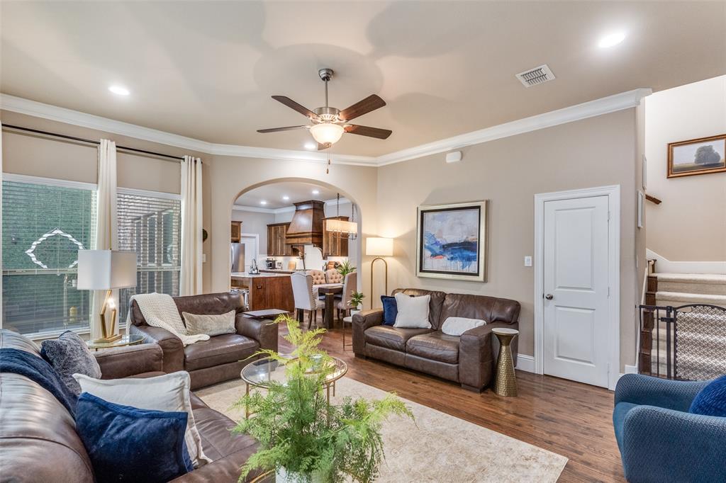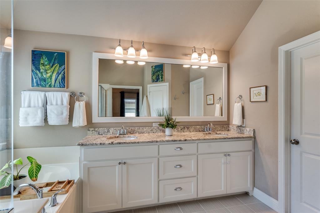 Welcome home to this beautiful Darling Home, located in the coveted Austin Waters Community. Centrally located to the Dallas North Tollway, Sam Rayburn Tollways, George Bush Turnpike, DFW Airport, Arbor Hills Nature Preserve, Shopping and dining. Meticulously maintained, features plantation shutters, handscraped hardwood flooring, granite countertops in kitchen and primary bath. Eat-in kitchen with stainless-steel appliances, gas cooktop, large island and walk-in pantry. Private office with French doors on the 1st floor, and walk-in closet under stairwell. The secondary living area on the second floor features a large living area with additional office area and large storage closet. Primary suite features a vaulted ceiling, large sitting area, ensuite bath with a generous closet. Two bedrooms on the opposite end share a hall bath and linen closet. This beautiful community offers amenities including walking paths, greenbelt, community pool and playground surrounded by lush greenery. Also enjoy an oversized garage with additional storage space or work area.