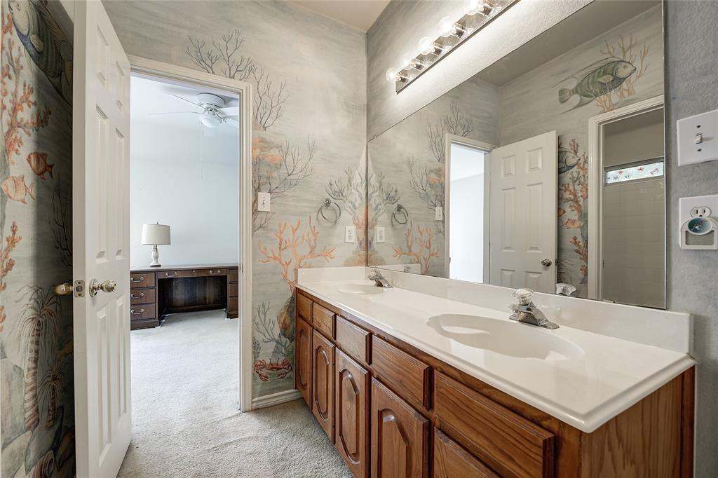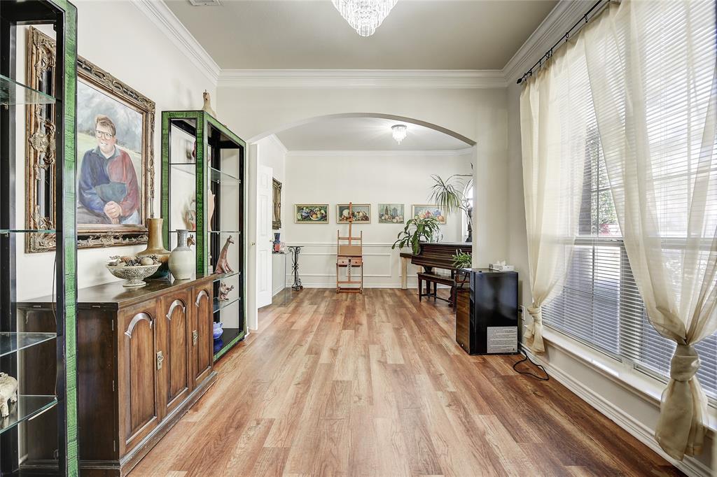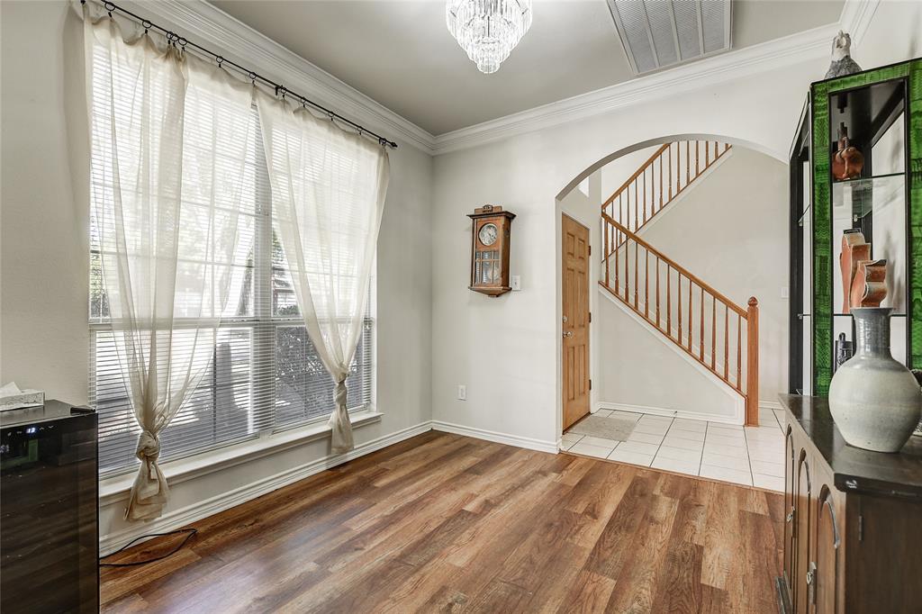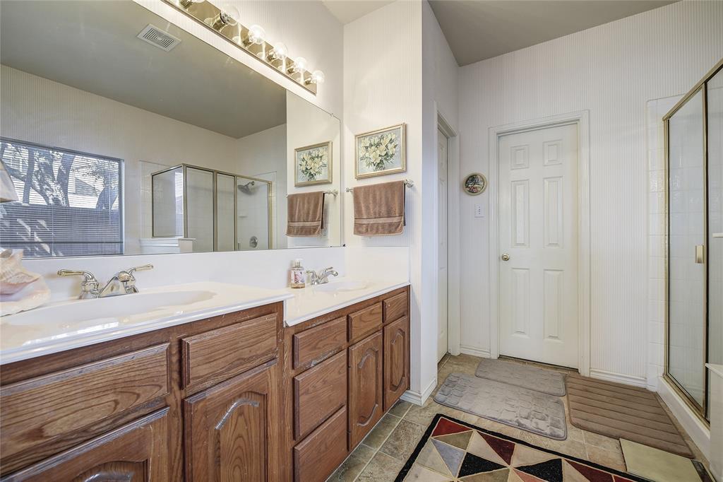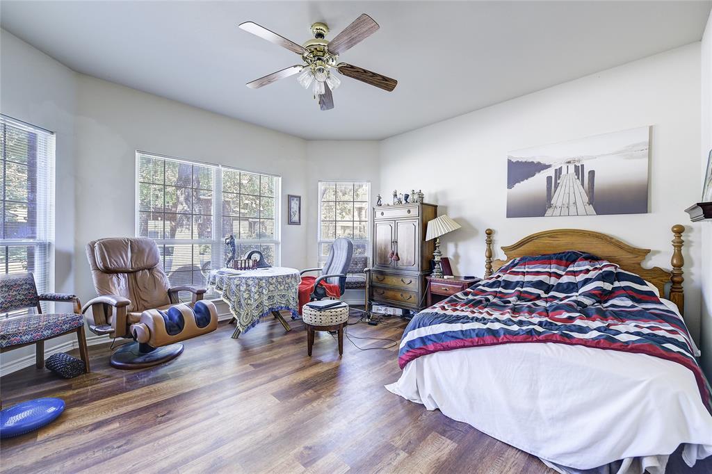 Unique property with great floorplan that has 2 primary suites downstairs with large walk-in closets and an expansive backyard sitting on one third of an acre! Short walk down the street to a beautiful walking park around a pond. Located in prime location with Top Rated Schools, close to Shops at Allen, Watters Creek, Hub 121 and Fairview Town Center. Downstairs rooms have updated wood floors throughout. Master bedroom has carpet. Upstairs has huge game room with 2 bedrooms with large jack and jill bathroom. Many windows throughout with lots of natural light all through house. Kitchen has updated SS dishwasher, new vent a hood, gas range and huge walk-in pantry overlooking family room. Oversized driveway going to rear of home and oversized garage. Backyard has plenty of room for pool, tennis court, etc.
