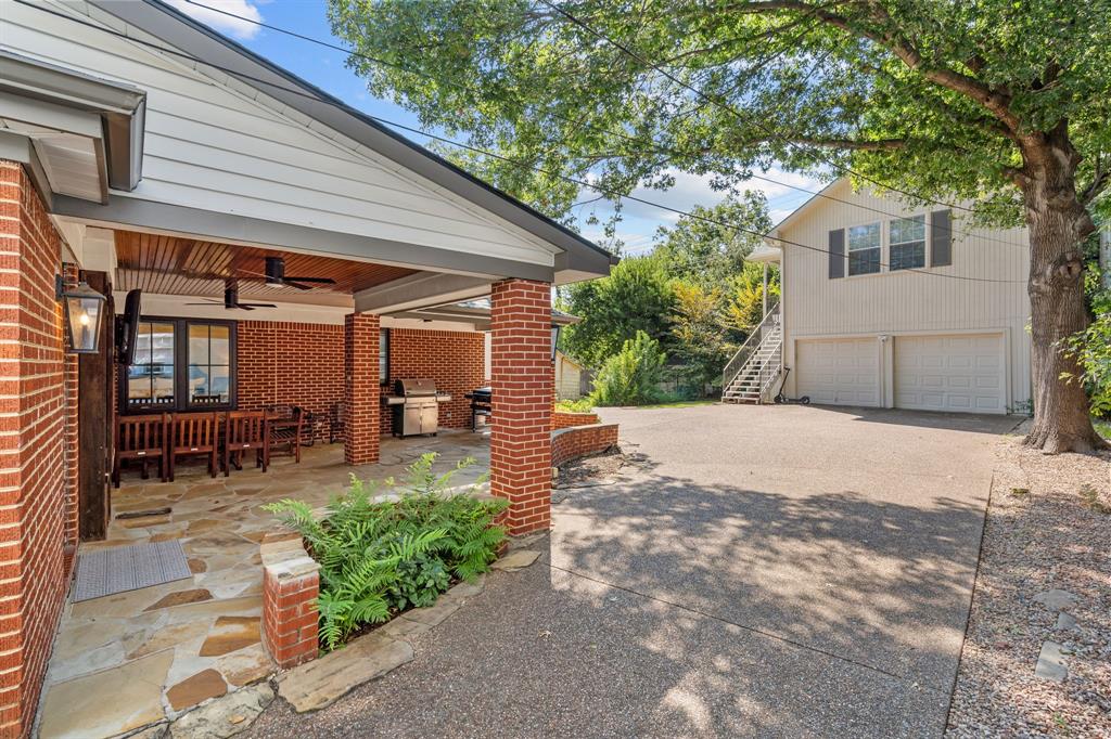 An added bonus is the private living quarters above the garage, outfitted with a full kitchen, full bathroom and a washer & dryer. It is currently leased to a TCU student for $1,200 per month—a rare opportunity for extra income or flexible use as a guest suite, office, or studio.