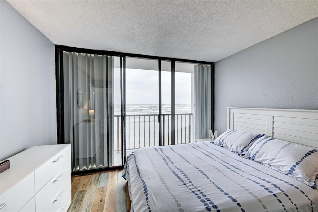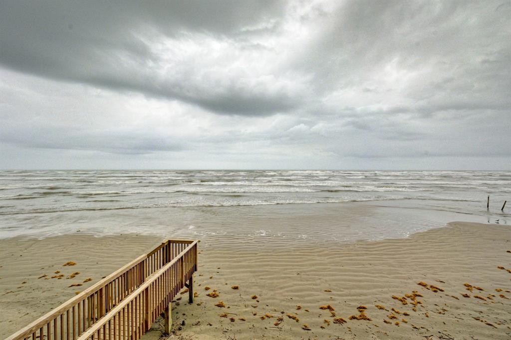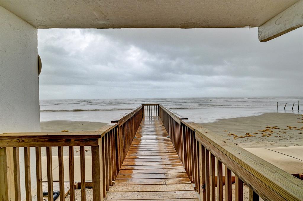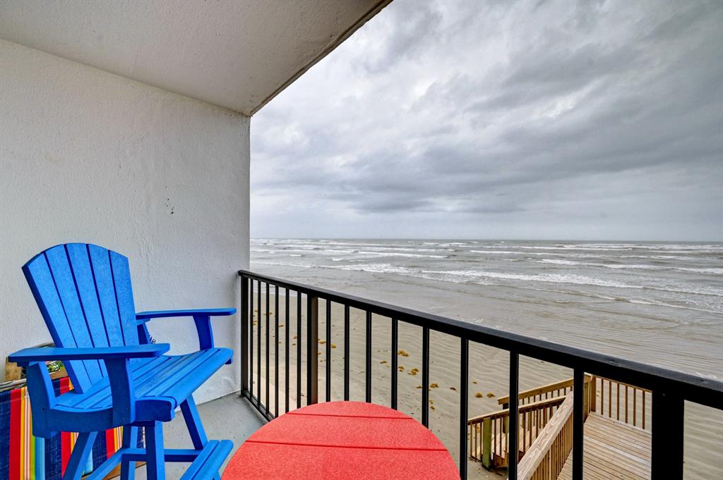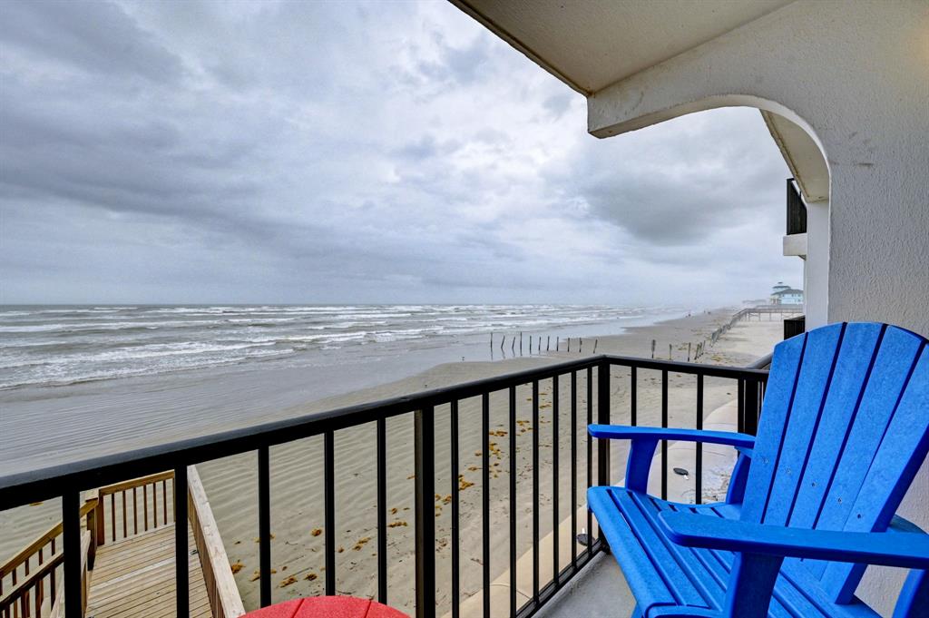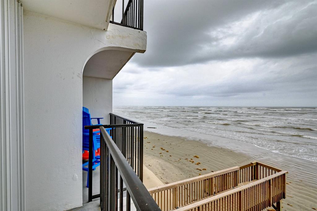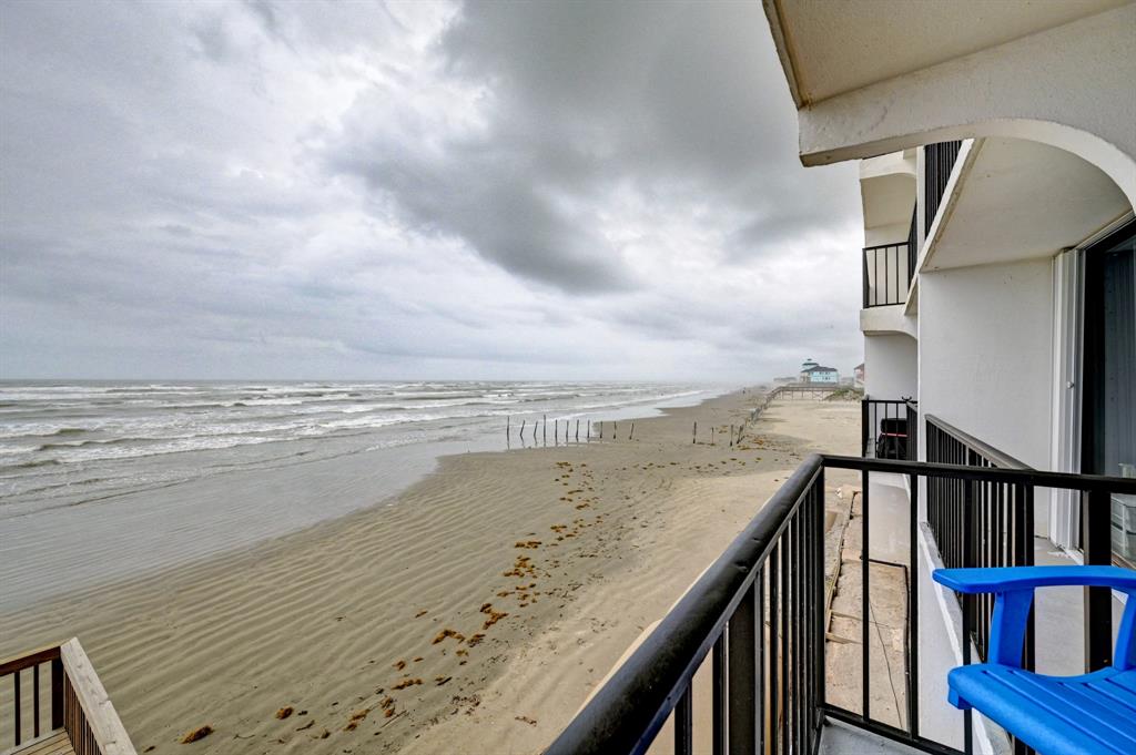 Galveston beachfront condo with almost endless views of the Gulf AND sunset views from the front door, which is rare for the building. Wide, spacious balconies from the living room and the primary suite allow the Gulf breeze and soothing sounds of the beach engulf you from inside and out. Updated tile in both bathrooms. Easy to clean tile in the living and dining make this place 'sand proof'. Both bedrooms include updated flooring and plenty of storage. HVAC recently replaced. Granite counters in the kitchen that features breakfast bar and a large utility room with laundry. Million dollar views at an affordable price, with gated parking, elevator, beach shower, a gorgeous walkover the dune, and instant access to the beach. Near town accessibility offers quick access to UTMB, The Strand, and all that historic Galveston has to offer. A short drive from Houston and/or Hobby Airport. Storm shutters create a lock-it-and-leave-it turn key property. Come make this YOUR serene retreat.