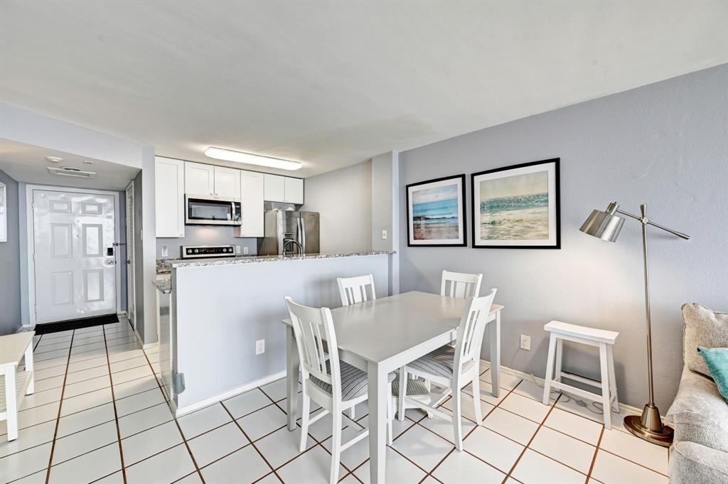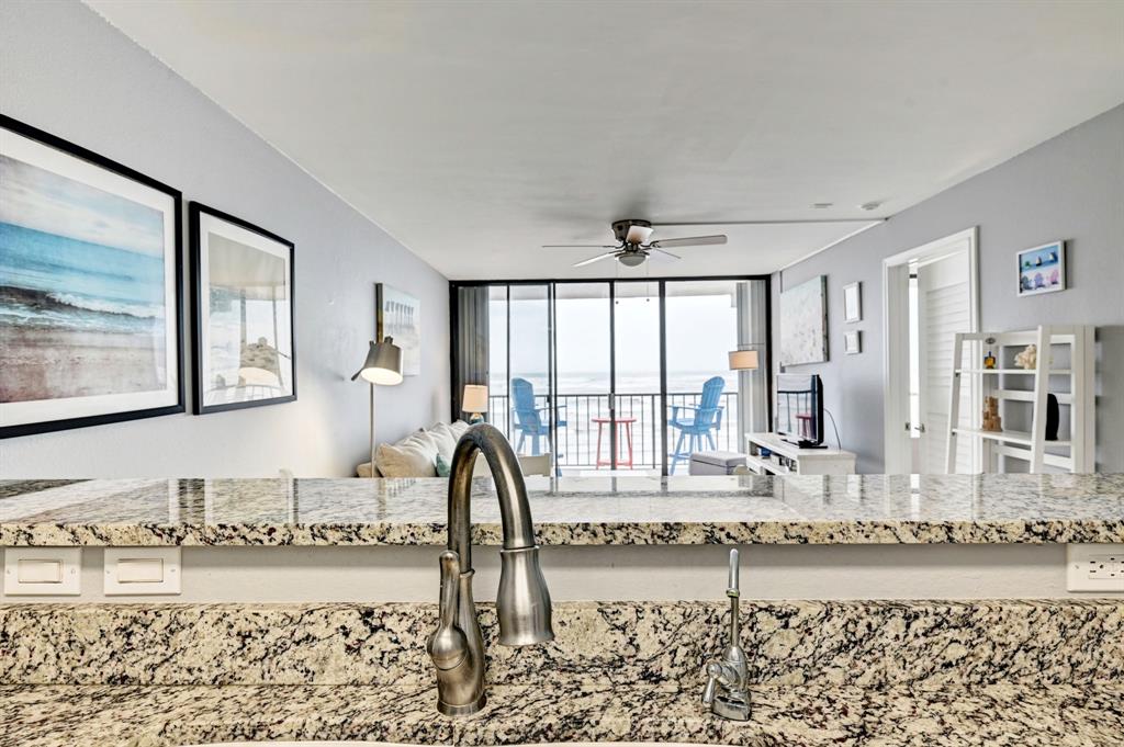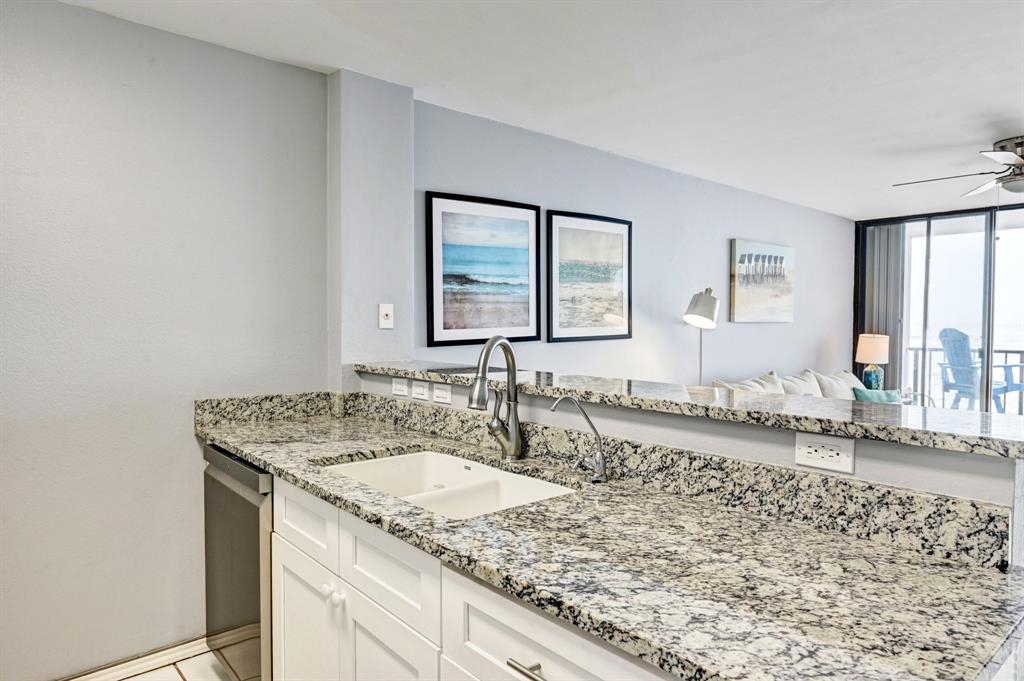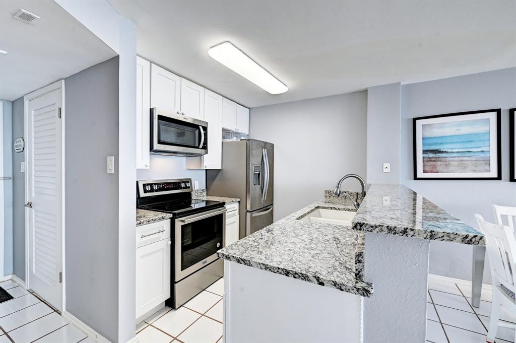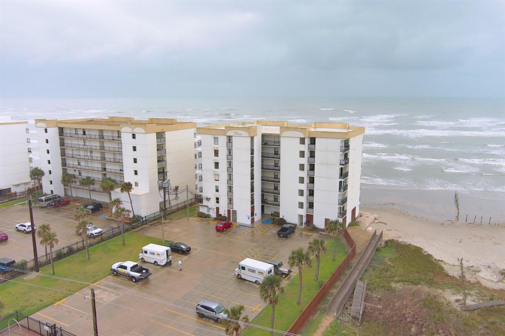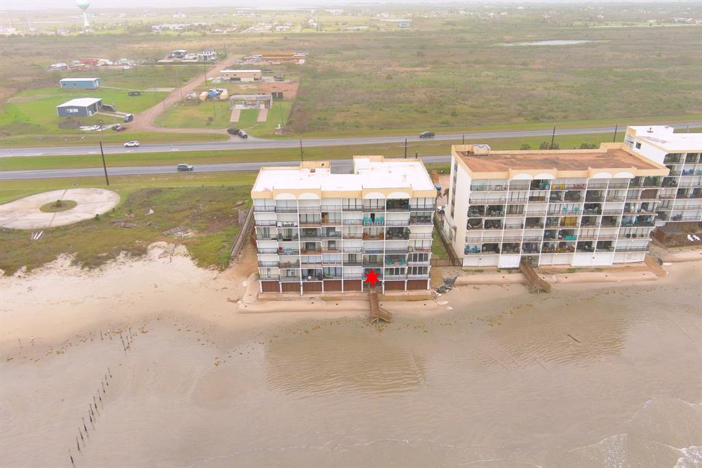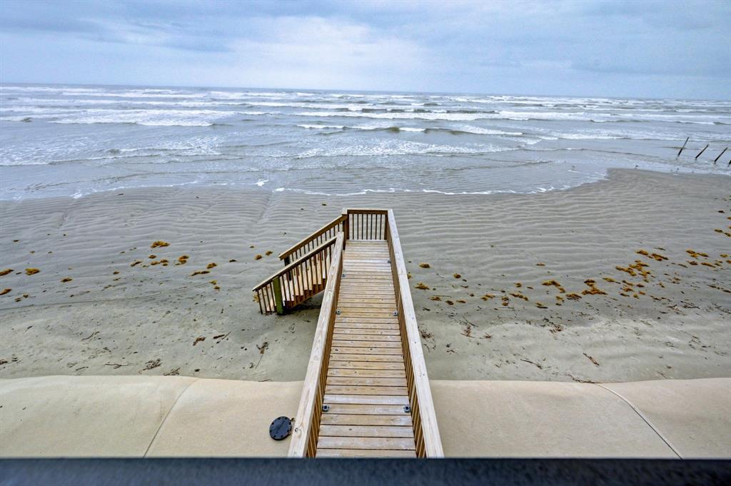 Galveston beachfront condo with almost endless views of the Gulf AND sunset views from the front door, which is rare for the building. Wide, spacious balconies from the living room and the primary suite allow the Gulf breeze and soothing sounds of the beach engulf you from inside and out. Updated tile in both bathrooms. Easy to clean tile in the living and dining make this place 'sand proof'. Both bedrooms include updated flooring and plenty of storage. HVAC recently replaced. Granite counters in the kitchen that features breakfast bar and a large utility room with laundry. Million dollar views at an affordable price, with gated parking, elevator, beach shower, a gorgeous walkover the dune, and instant access to the beach. Near town accessibility offers quick access to UTMB, The Strand, and all that historic Galveston has to offer. A short drive from Houston and/or Hobby Airport. Storm shutters create a lock-it-and-leave-it turn key property. Come make this YOUR serene retreat.