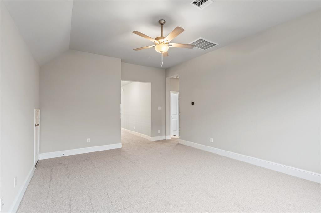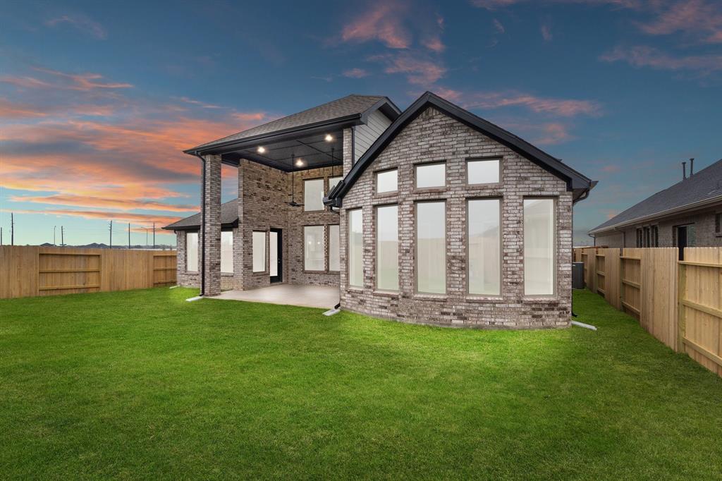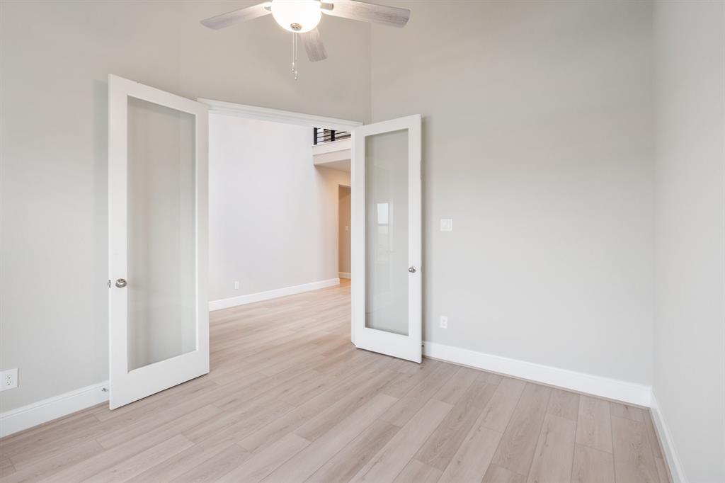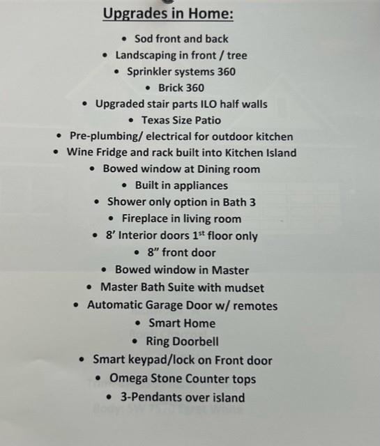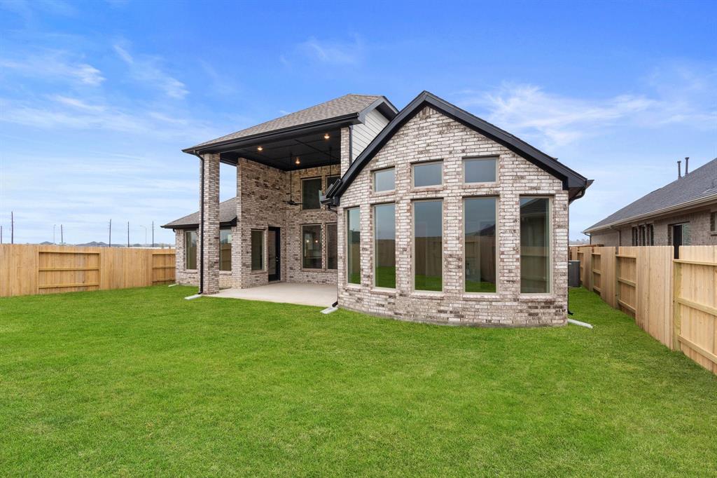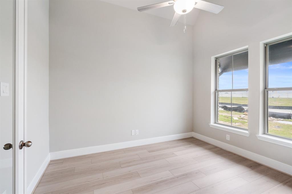 This exquisite 1-story home features 4 bedrooms and 4 full baths, a study with volume ceilings, and warm wood floors throughout. The luxury kitchen with an accommodating island has ample cabinetry, in transitional design, and beautiful quartz countertops that open to the casual dining with great space for intriguing entertainment and gatherings. The secluded primary bedroom offers a stylish bay window perfect for an evening read, with illuminating natural light coming in from the elongated windows. Relax with a soaking garden-style tub after a long day and enjoy abundant storage within the two, nicely sized closets. The home features a three car garage for all the extra space you will need to storage anything and everything. Head outside and entertain guests on your spacious Texas covered patio. Your dream home awaits! Come visit us today!