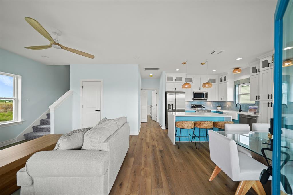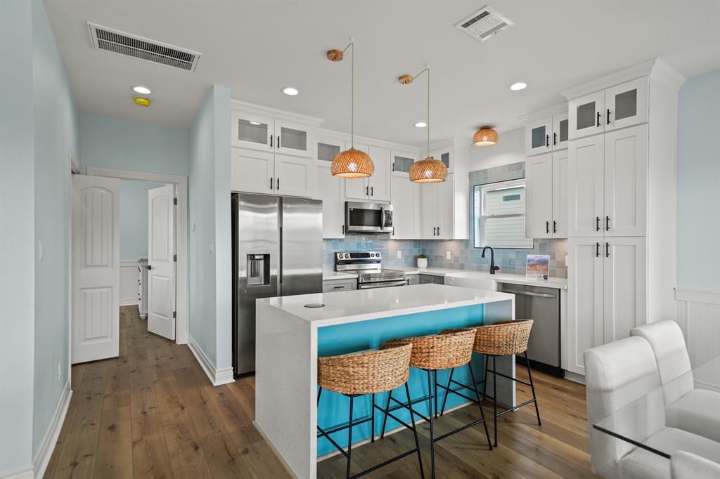 Welcome Home to this incredible newly built 2-story beach house with 2 living areas, 4 bedrooms, & 2.5 bathrooms just steps away from the beach. This property is FULLY FURNISHED & is ready for you to move in or turnkey for Airbnb. (Sleeps 13 people comfortably) Enjoy 650 sq ft of covered double decks with stunning ocean views. Enjoy your coffee in the morning or listen to the waves & enjoy the sunset. Builder Upgrades include 12x12 pilings & 2x6 exterior walls to ensure durability. Walk in the front door to your downstairs living area that opens to the kitchen, that boasts quartz countertops & stainless appliances, perfect for entertaining. Retreat to the private owner's suite with a luxurious en-suite bath. Three additional bedrooms & extra living space upstairs with a wet bar & built-in mini frig that provide ample room for guests. Outdoor shower to rinse off after a long day at the Beach. It's ideal for weekend getaways or STR. Schedule your appointment today!