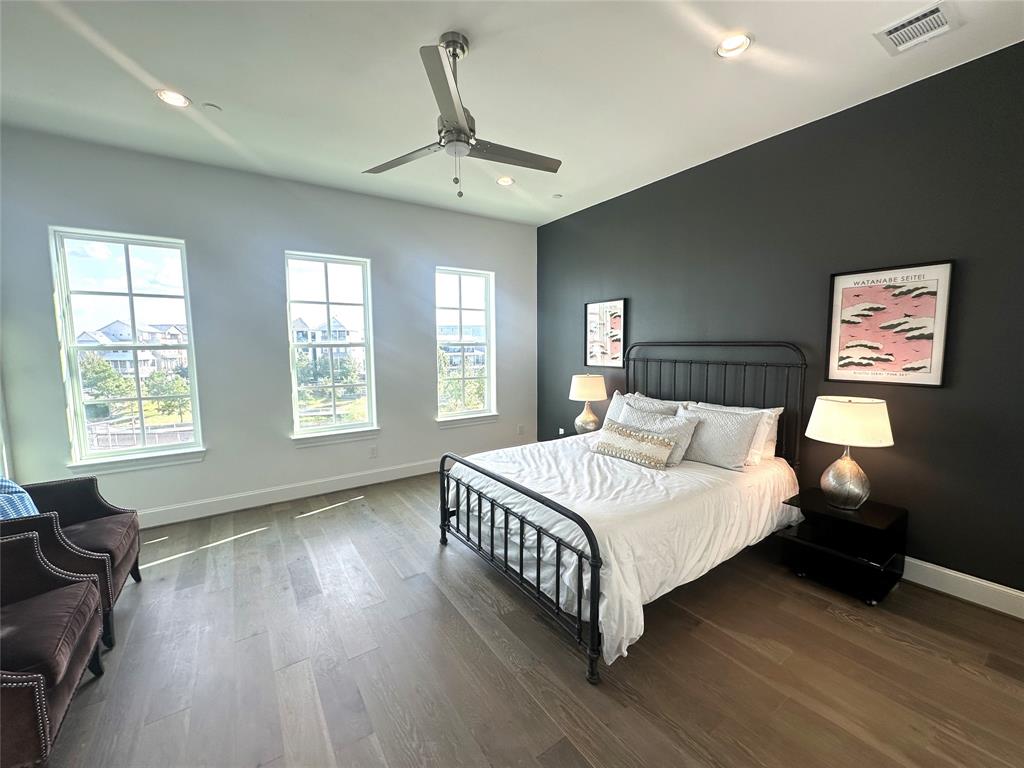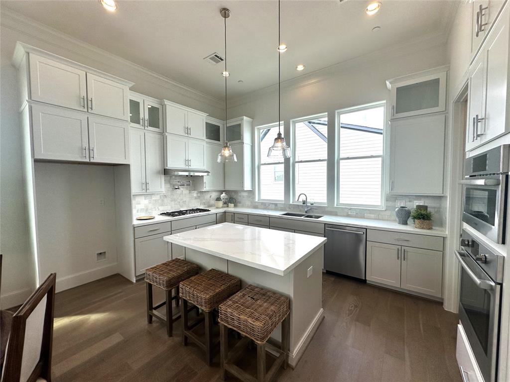 ELEVATOR Lake View Home in Kolbe Farms! Fantastic Outdoor Area & Views! Fenced-in Front Yards that open to the Lake Trails. Two Sets of Panoramic Tri-Panel Glass Doors that open up to the Beauty of Kolbe, by being on the Lake side Living Room Balcony or Roof Top Terrace. Gorgeous Views for the Skylines of Downtown & Galleria are from the Outdoor Living Room Sized Terrace. Inside, you will be amazed as well: 12 FT Soaring Living Room Ceilings, Chef's kitchen w/ Bosch Appliances, Soft-close & Furniture Grade cabinets/drawers + Pot Filler. Wide Plank Wood Flooring in Main Living, Primary Bedroom & Downstairs Bedroom. Spa-Like Primary Bathroom w/ a Frameless Shower and Free Standing Tub. Come see Kolbe Farms - the 40 Acre Anti-Cookie Cutter Community in Spring Branch that has it all: 3 Acre Lake, Trails, Pools (Main and Kids), Dog Park, Playground, Gated and Gate Station (Currently Manned at Night).