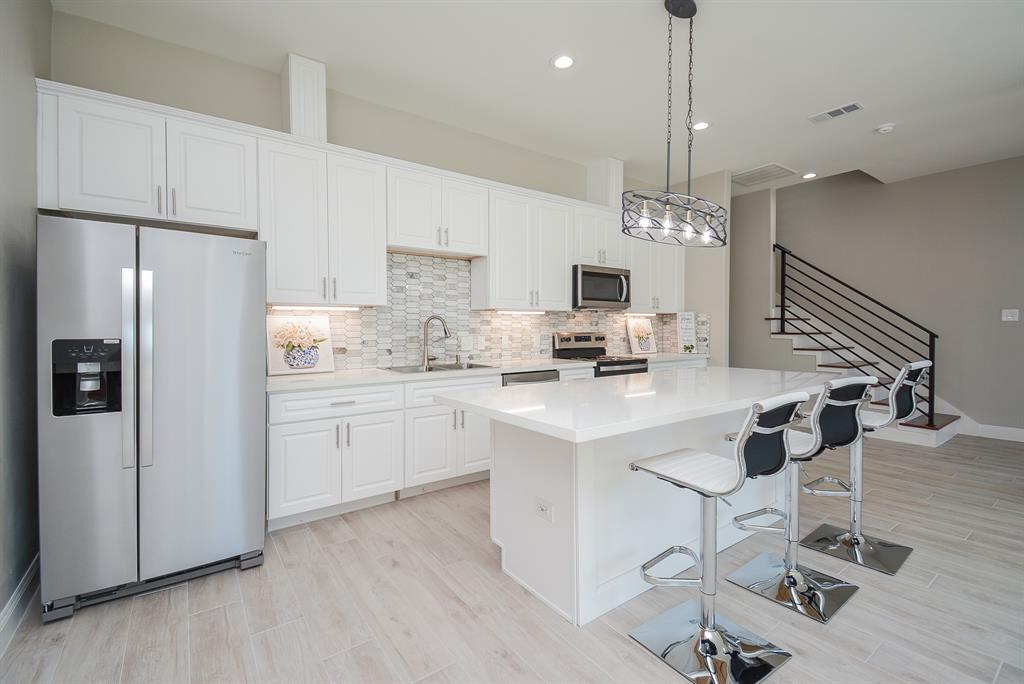 Welcome to the perfect urban oasis! This modern townhome combines sleek design and unbeatable convenience. The stylish brick-and-stucco exterior makes a bold impression, while skylights fill the interior with warm, natural light. Designed for energy efficiency, this all-electric home comes fully equipped with refrigerator, washer, dryer, and a cutting-edge WiFi thermostat to keep you comfortable year-round. The open-concept kitchen is a showstopper, featuring a spacious island that's perfect for hosting friends all under modern canister lighting. Unwind in the luxurious spa-like master bathroom complete with a separate tub and shower. Plus, staying connected is a breeze with the built-in modem and router providing seamless internet access. Located just 2 blocks from the Metro rail system, you'll enjoy quick access to downtown, Hobby Airport, and nearby hotspots like Gus Wortham Golf Club. Experience the ultimate blend of style, convenience, and location in your new home!