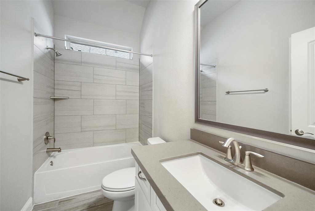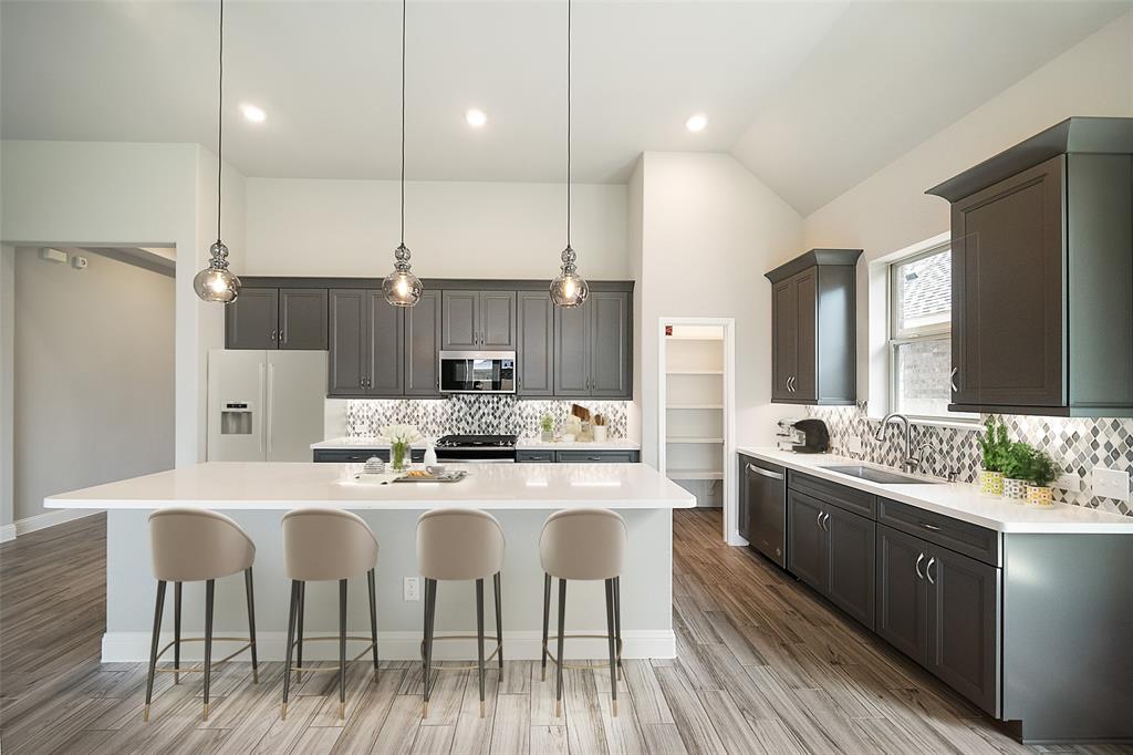 Welcome to this stunning 4-bedroom, 3-bathroom home in the Amira Heritage Collection, located in Tomball, TX. Spanning 2,368 sq. ft., this east-facing single-story home is perfect for both relaxation and entertaining. The open-concept layout seamlessly connects the living spaces, with a cozy window seat in the primary bedroom adding a touch of charm. The kitchen is a chef's delight, featuring quartz countertops, glass pendant lighting over the island, and built-in stainless-steel Whirlpool® appliances. A sink overlooking the window enhances the kitchen's appeal. Unwind in the primary bath, complete with a soaking tub and walk-in shower. Step out onto the covered back patio to enjoy outdoor leisure. With 42 kitchen cabinets and thoughtful design details, this home offers the perfect blend of comfort and elegance.