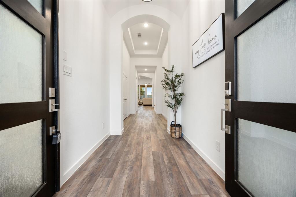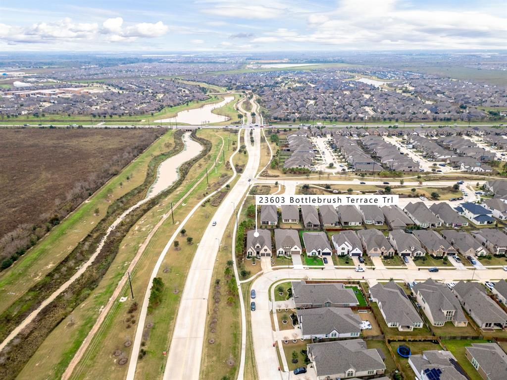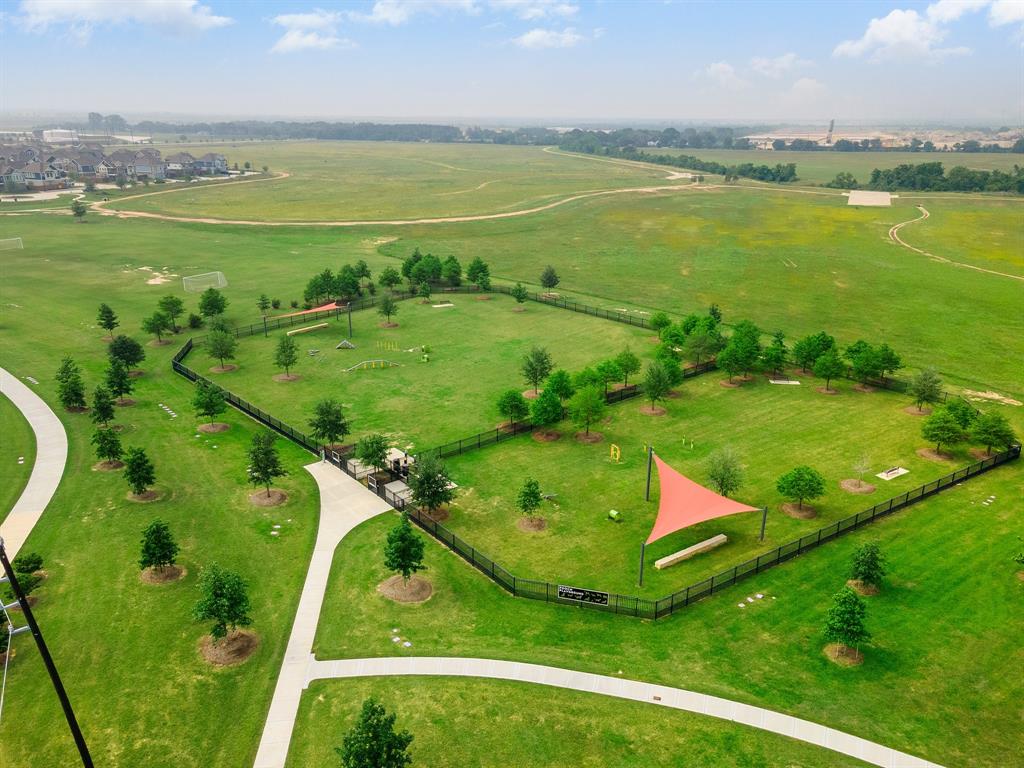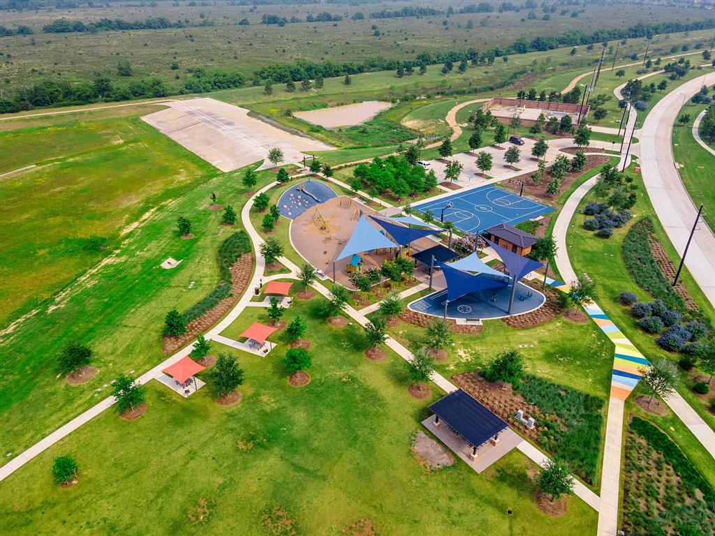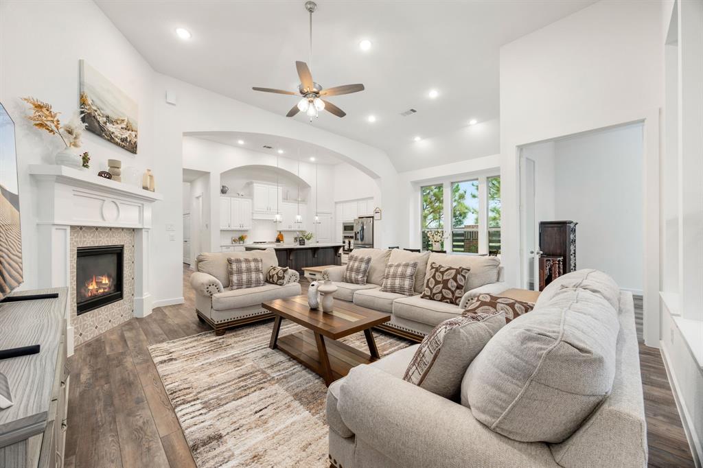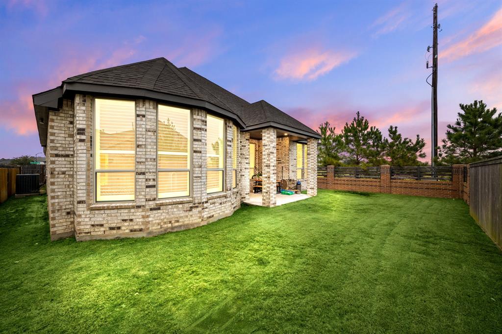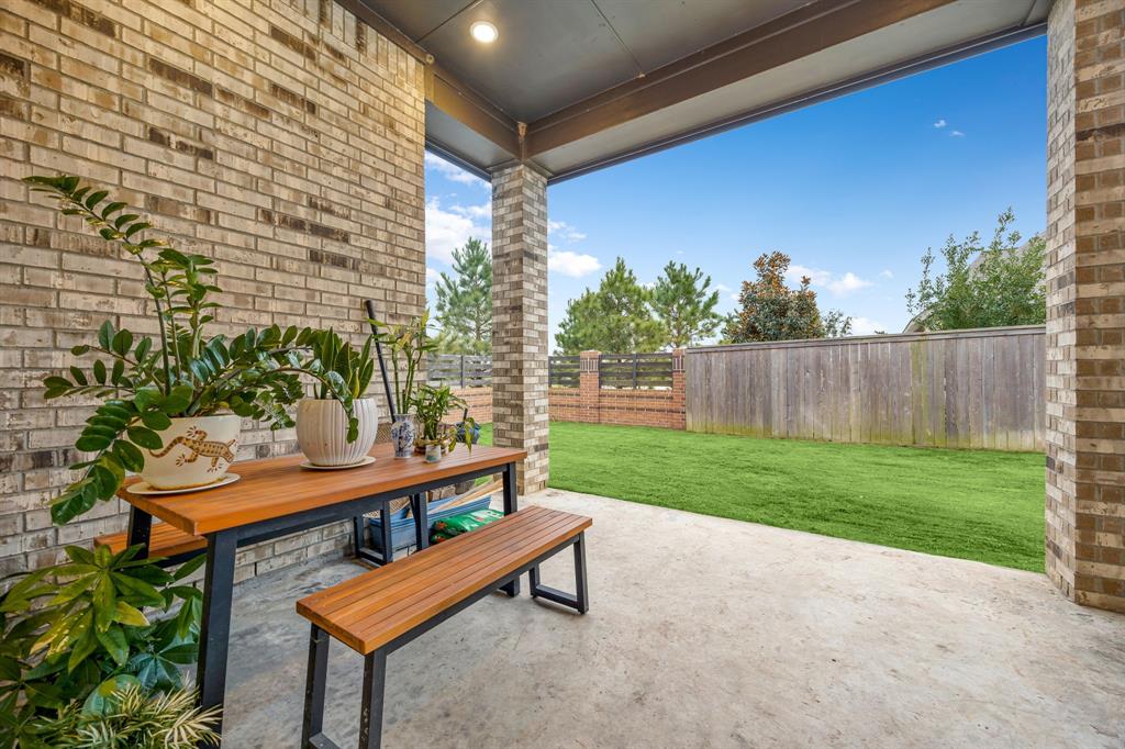 Stunning one-story by HIGHLAND HOMES in the highly sought-after Elyson community, within top-rated Katy ISD, features 4 bedrooms, 4.5 bathrooms and an office. A charming front porch, grand double doors welcome you into an open-concept design. The spacious living room, complete with a cozy fireplace, overlooks the family room & backyard, perfect for entertaining. Chef's dream kitchen boasts quartz countertops, stainless steel appliances, white dreamy cabinetry and a massive island, plus a cozy breakfast area and a wine station. The huge primary suite offers a bay window, a private soaking tub, and a separate shower. Each bedroom includes a private bathroom for convenience & privacy. Enjoy working from home in this office room with lots of natural sunlight. Step outside to the extended covered patio and spacious backyard. Located in the corner lot. Experiencing a dream lifestyle of living in Elyson, Katy with amenities including the pool, fitness center, tennis courts, parks, and trails.