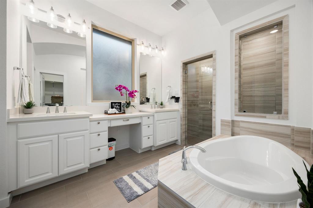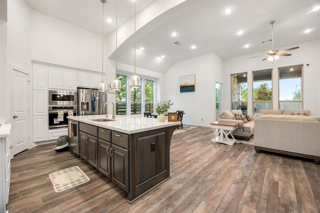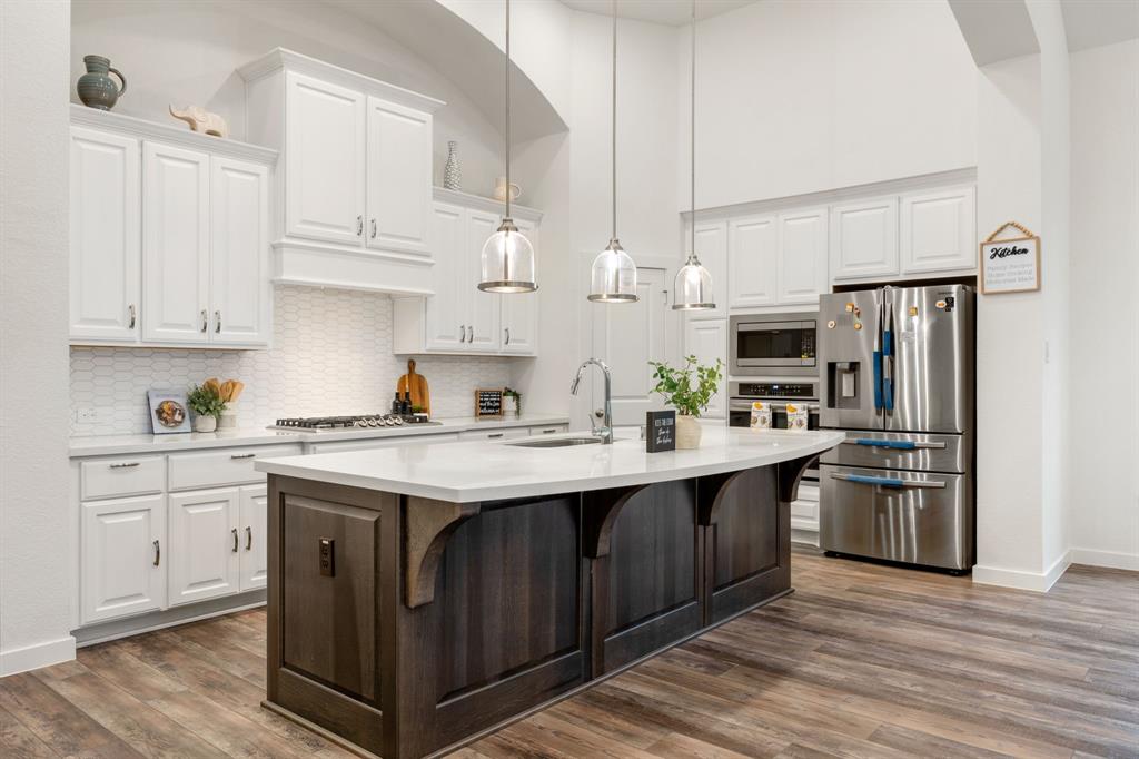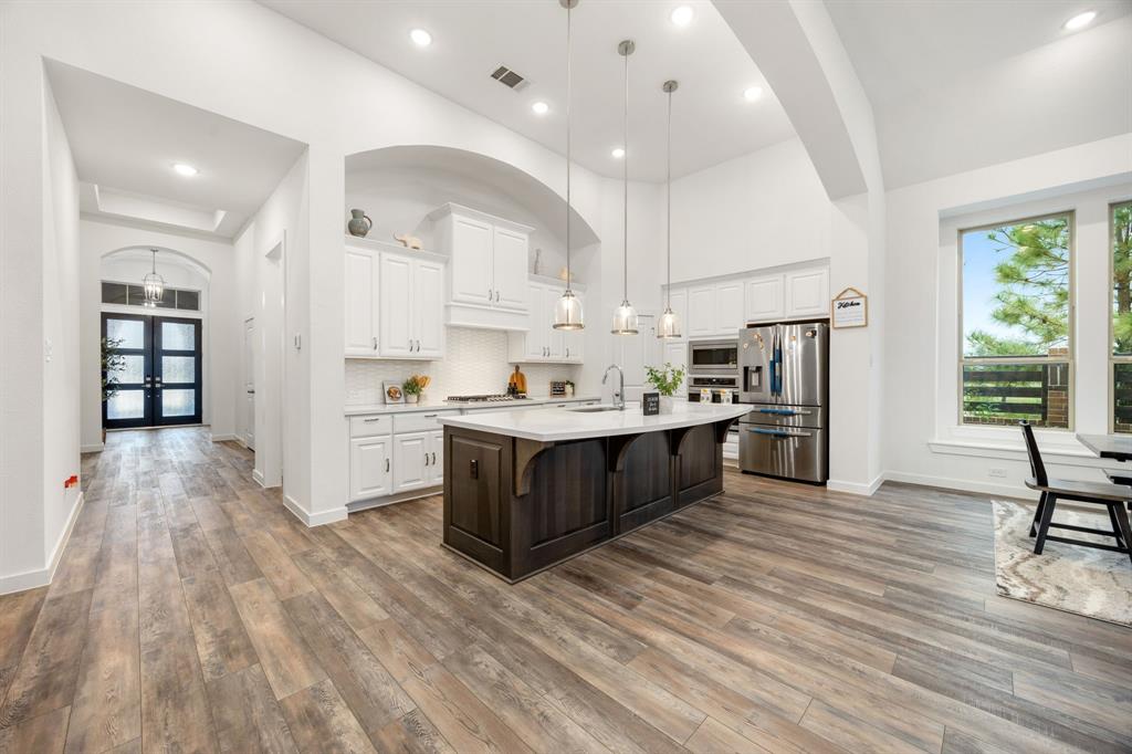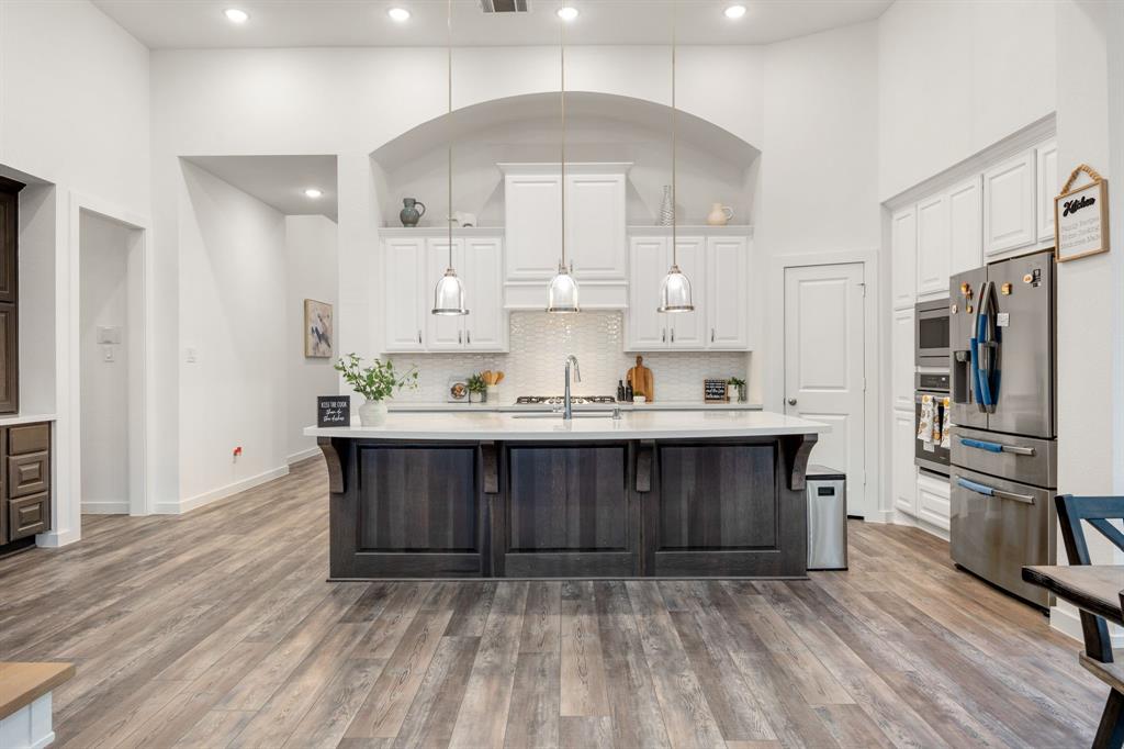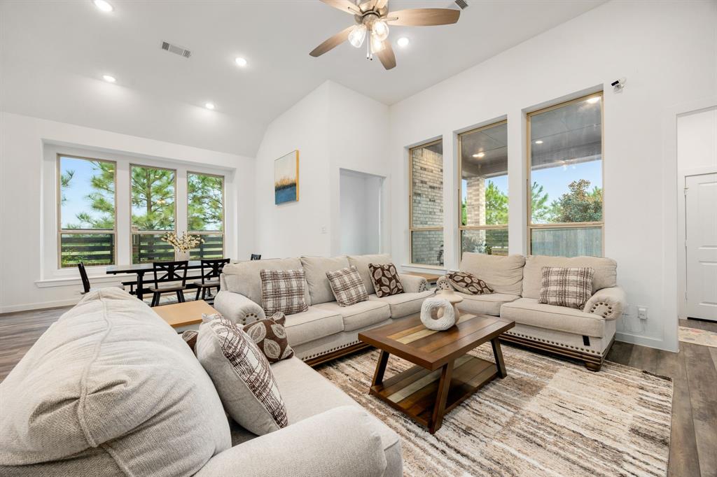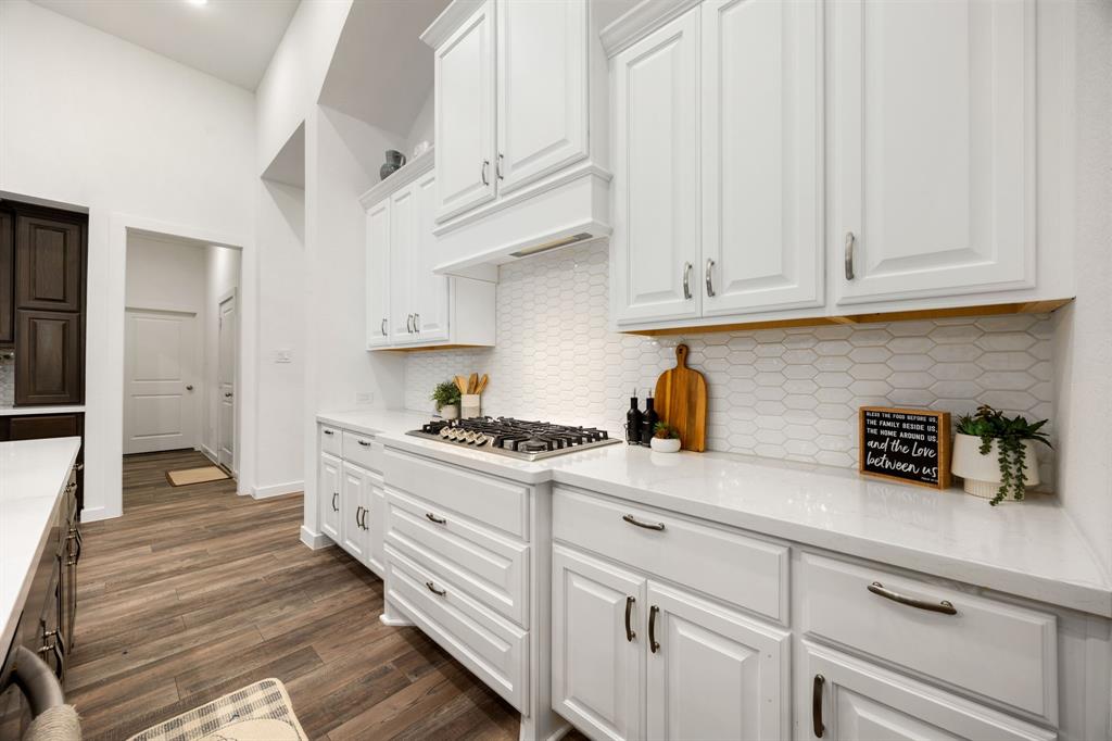 Stunning one-story by HIGHLAND HOMES in the highly sought-after Elyson community, within top-rated Katy ISD, features 4 bedrooms, 4.5 bathrooms and an office. A charming front porch, grand double doors welcome you into an open-concept design. The spacious living room, complete with a cozy fireplace, overlooks the family room & backyard, perfect for entertaining. Chef's dream kitchen boasts quartz countertops, stainless steel appliances, white dreamy cabinetry and a massive island, plus a cozy breakfast area and a wine station. The huge primary suite offers a bay window, a private soaking tub, and a separate shower. Each bedroom includes a private bathroom for convenience & privacy. Enjoy working from home in this office room with lots of natural sunlight. Step outside to the extended covered patio and spacious backyard. Located in the corner lot. Experiencing a dream lifestyle of living in Elyson, Katy with amenities including the pool, fitness center, tennis courts, parks, and trails.