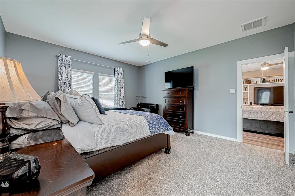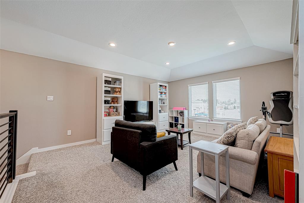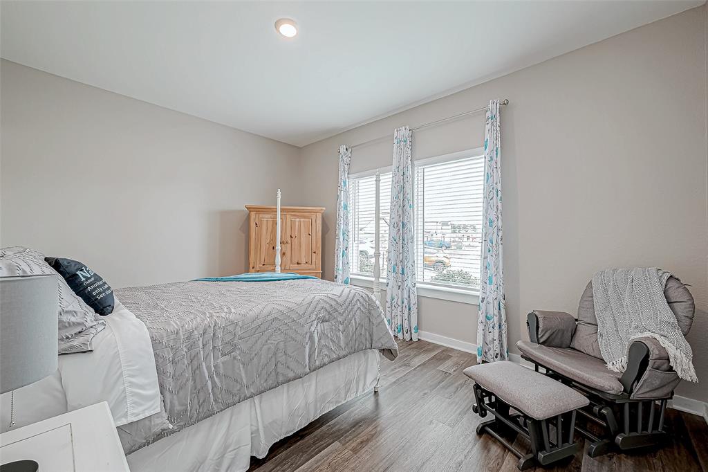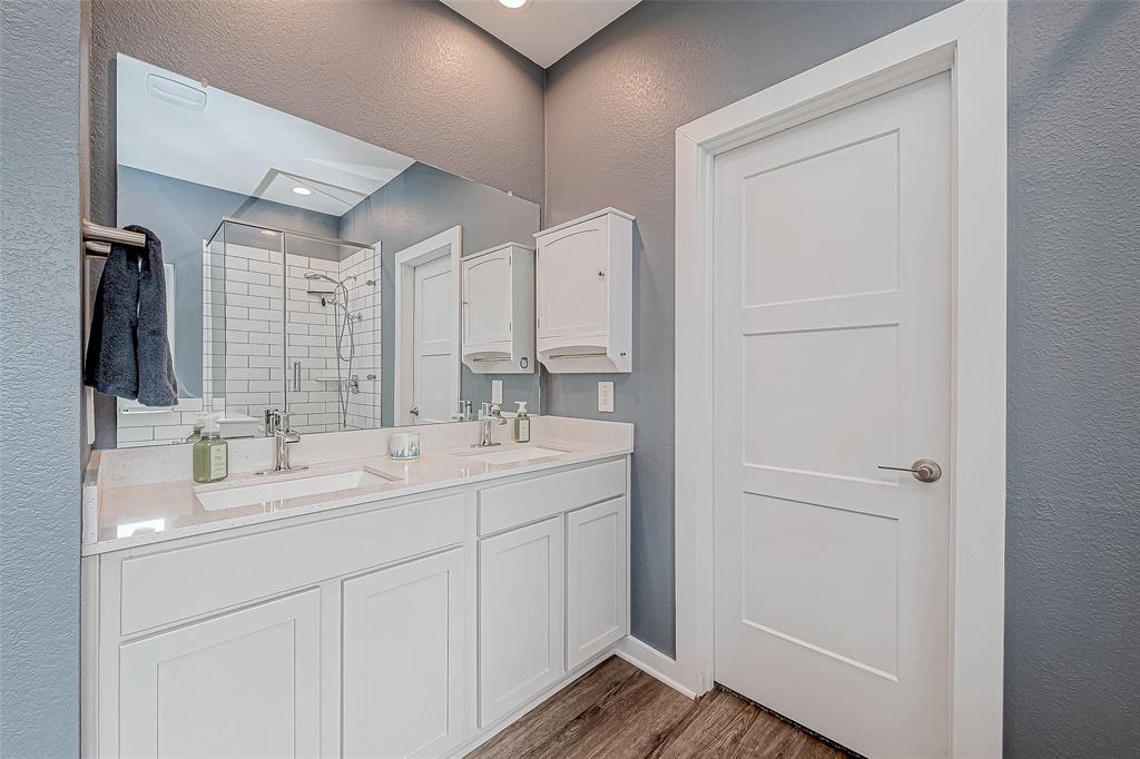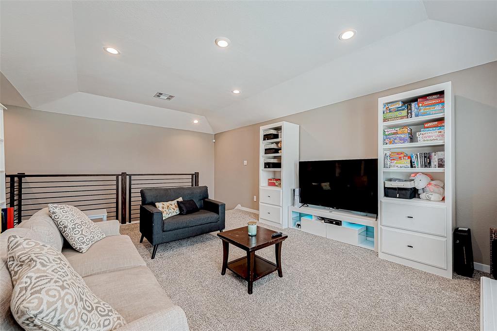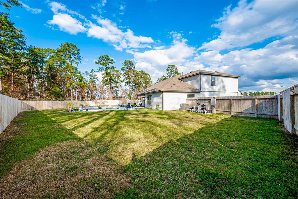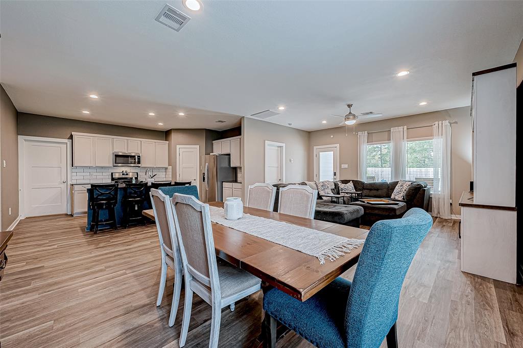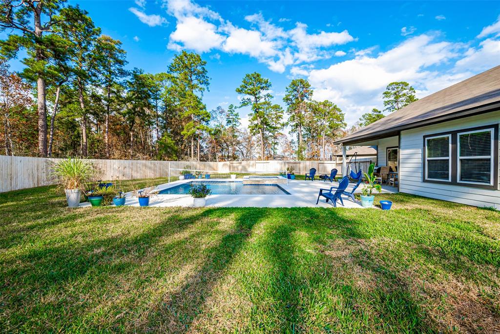 This stunning 5-bedroom, 2.5-bath home features a contemporary open-concept design with high ceilings and a large private backyard with a covered patio and wooded views—no back neighbors! The kitchen boasts quartz countertops, a subway tile backsplash, a large island with sink and bar seating, a coffee bar, stainless steel appliances, a walk-in pantry, and shaker-style cabinetry. The primary suite overlooks the pool and features a dual-sink vanity, garden tub, separate shower, and spacious walk-in closet. Also downstairs is the first of the secondary bedroom or office, a large storage area, a guest ½ bathroom, and an oversized utility room. Enjoy a roomy game room, 3 additional bedrooms, and a full bathroom upstairs. Recent updates include luxury vinyl flooring, professional interior painting, a backyard Sports Pool, a sundeck/spa with app-controlled heating, and LED. The community offers a pool, clubhouse, trails, and playgrounds. New Campbell Elementary School opening Fall 2025