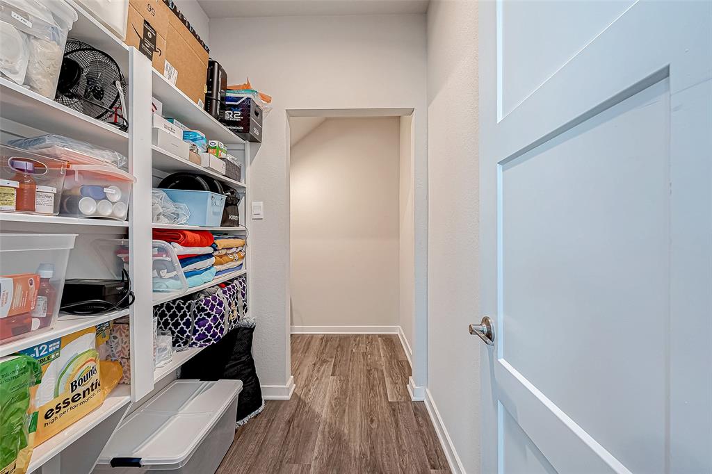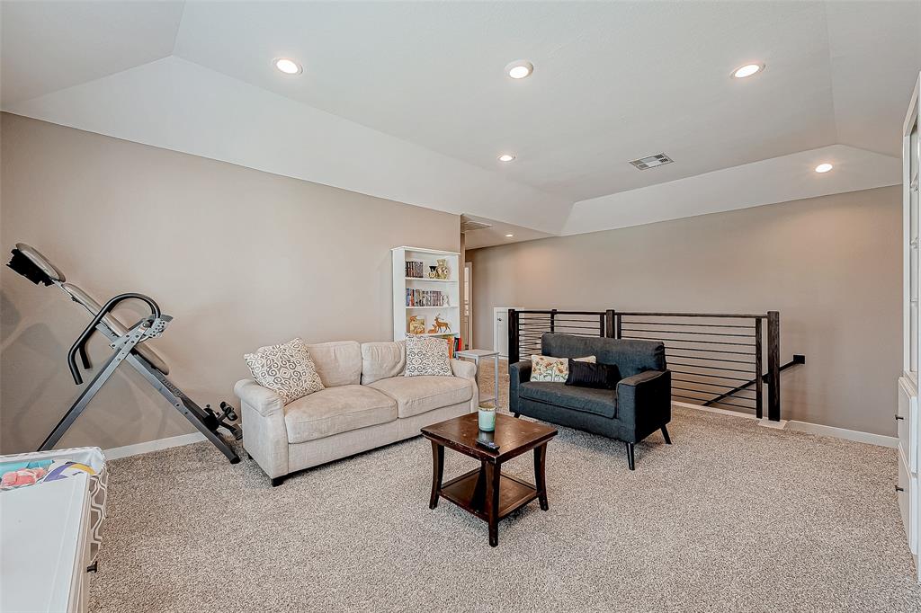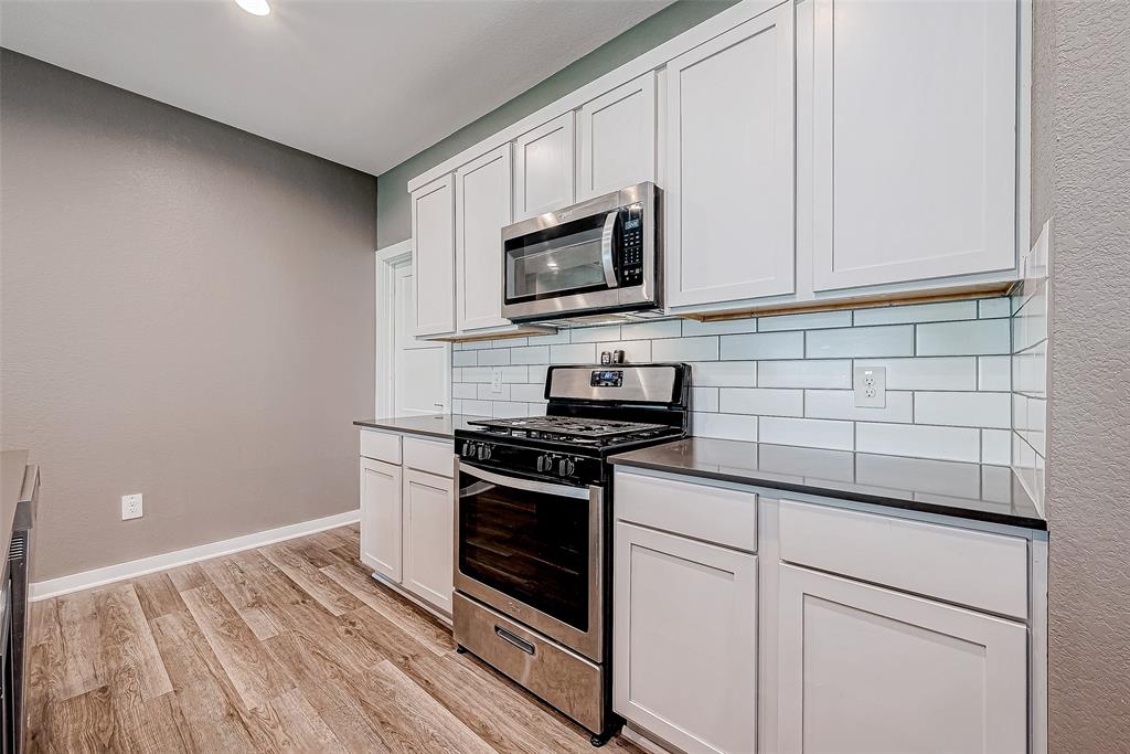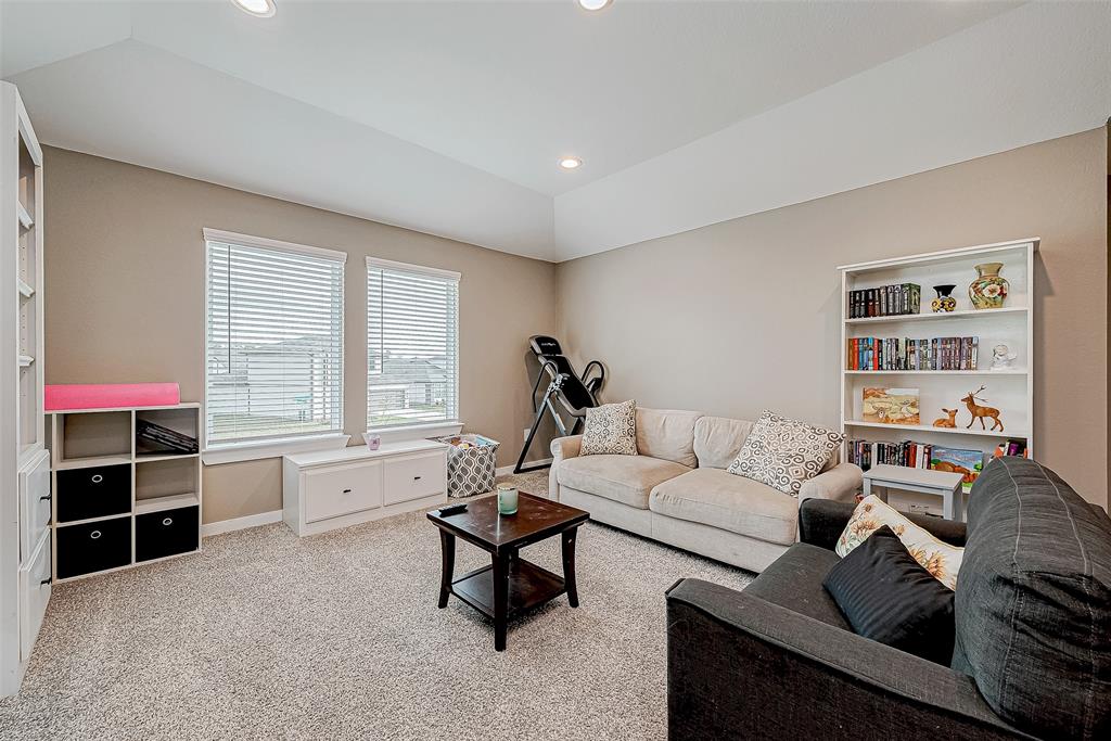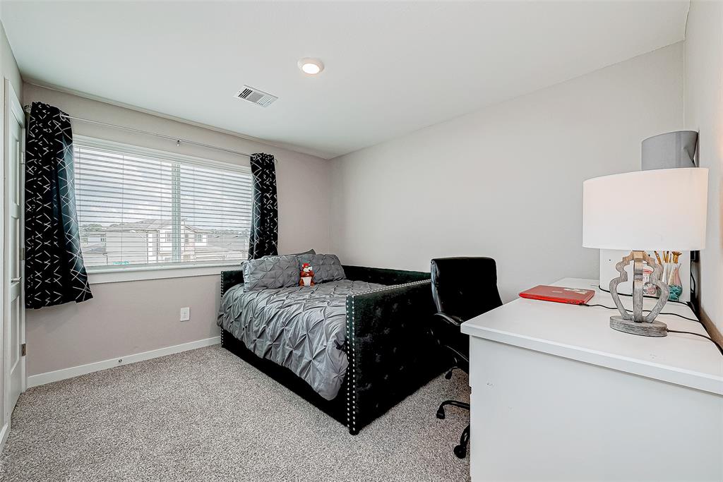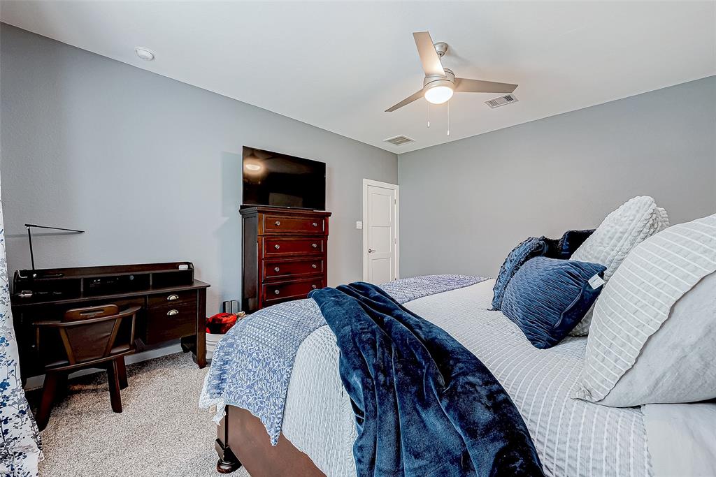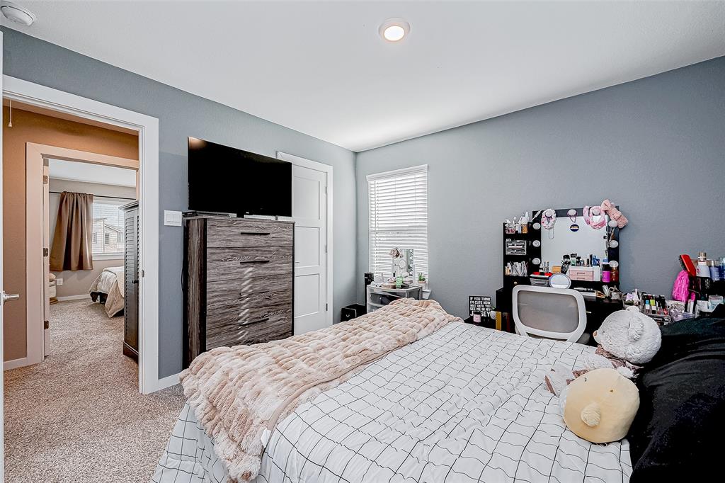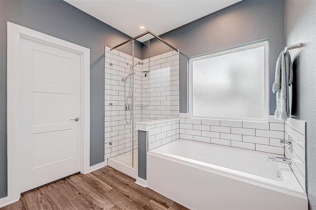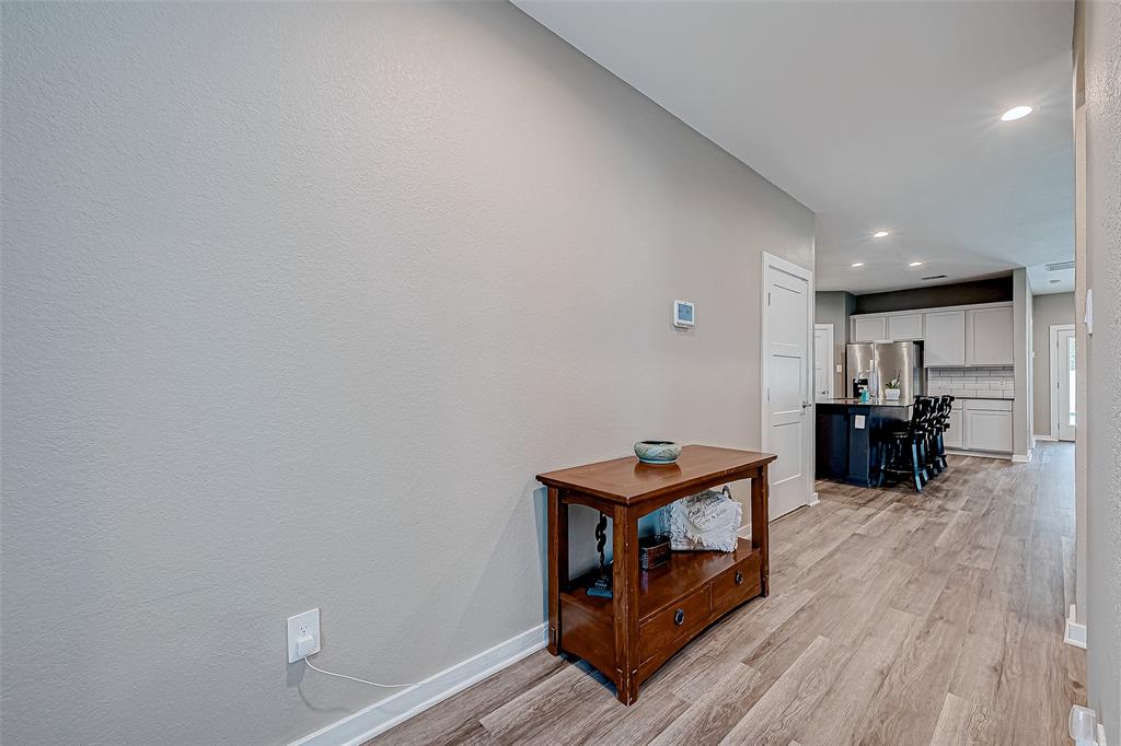 This stunning 5-bedroom, 2.5-bath home features a contemporary open-concept design with high ceilings and a large private backyard with a covered patio and wooded views—no back neighbors! The kitchen boasts quartz countertops, a subway tile backsplash, a large island with sink and bar seating, a coffee bar, stainless steel appliances, a walk-in pantry, and shaker-style cabinetry. The primary suite overlooks the pool and features a dual-sink vanity, garden tub, separate shower, and spacious walk-in closet. Also downstairs is the first of the secondary bedroom or office, a large storage area, a guest ½ bathroom, and an oversized utility room. Enjoy a roomy game room, 3 additional bedrooms, and a full bathroom upstairs. Recent updates include luxury vinyl flooring, professional interior painting, a backyard Sports Pool, a sundeck/spa with app-controlled heating, and LED. The community offers a pool, clubhouse, trails, and playgrounds. New Campbell Elementary School opening Fall 2025