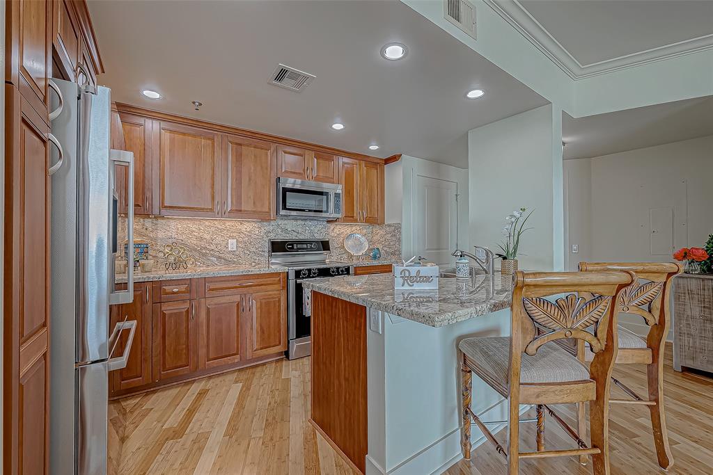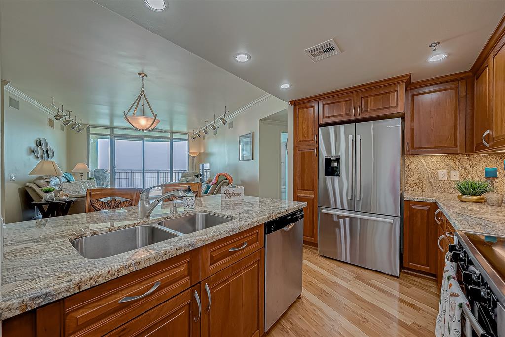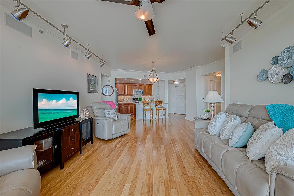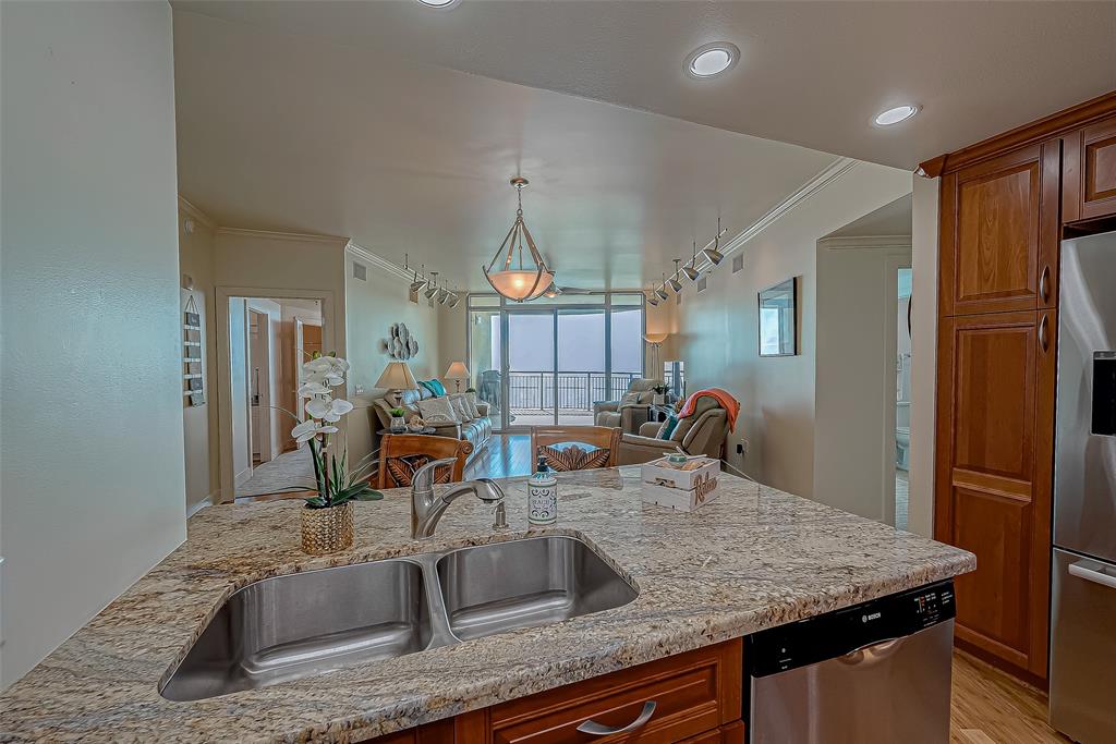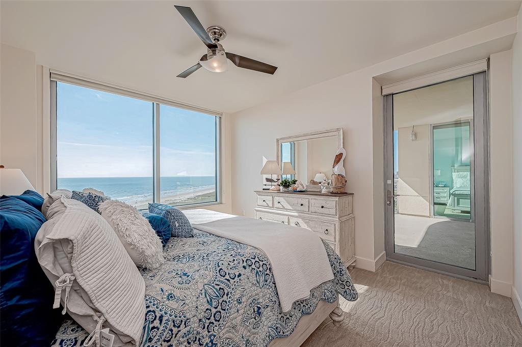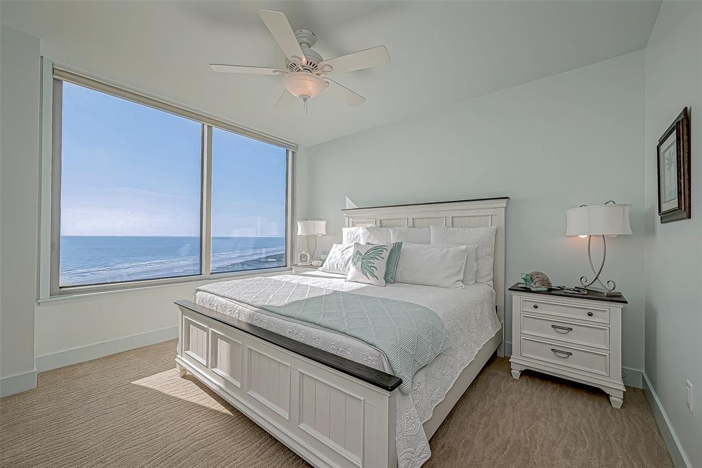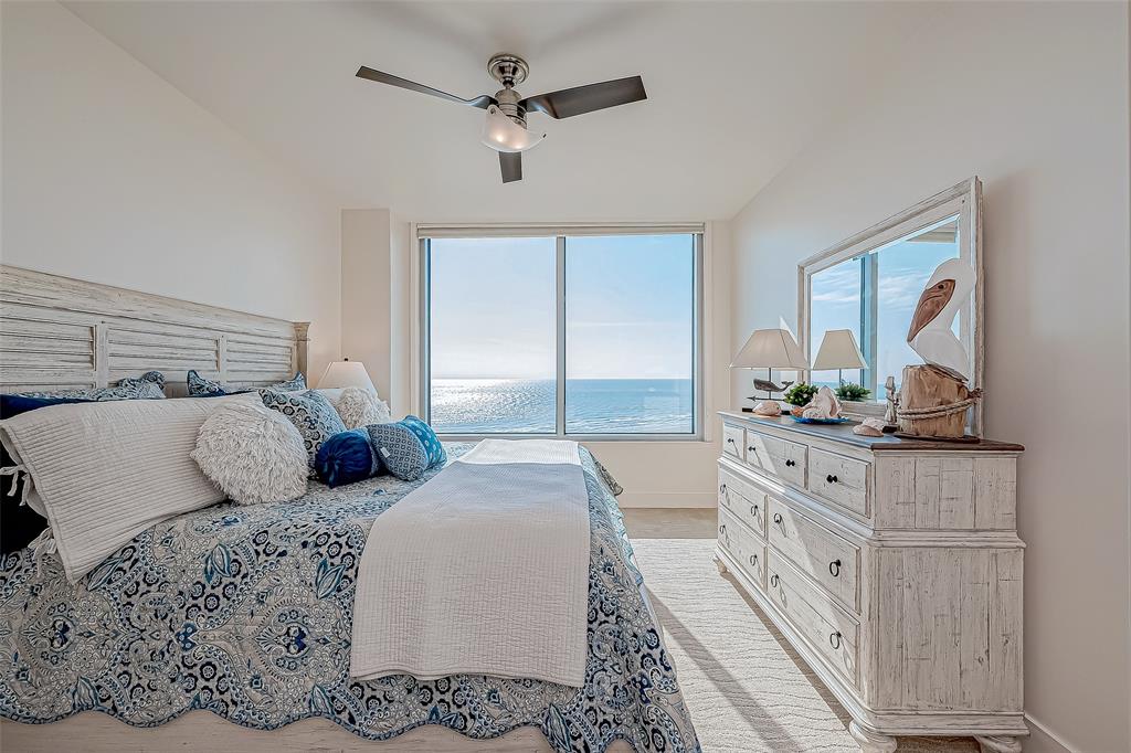 PRIME LOCATION RARE REMODELED OUTSIDE 10th FLOOR MALIBU with JAW-DROPPING UNOBSTRUCTED beautiful west and south views of the sand, surf, Pleasure Pier and city lights at night! Large balcony space to enjoy sound of the waves, the stars and moon at night. This unit has A DREAM KITCHEN WITH numerous custom features/upgrades (granite countertops, pull out shelving, custom lighting, bamboo flooring, custom kitchen cabinetry, custom window treatments and comfort toilets (2024). It has been well-maintained with new HVAC (2021) and new water heater (2024). This popular floor plan has 2-3 bedrooms and 2.5 baths and a built-in grill. Third bedroom can also be used for an office. State-of-the-art amenities include the refreshing resort-style pool, fitness center, sauna, pickleball, tennis & basketball, separate children's pool and indoor Kids Center, covered dog park and more. It is located less than 1 hour from Houston. Low/Bulk Rate Utilities, THIS ONE IS A MUST SEE!