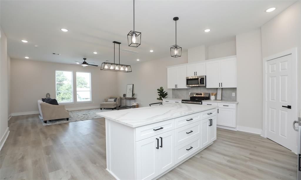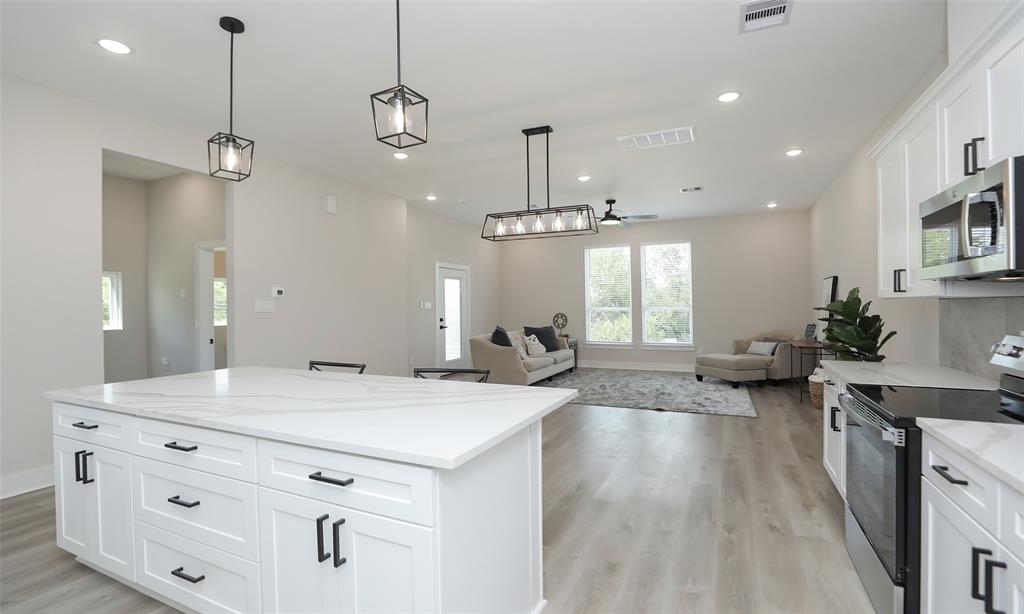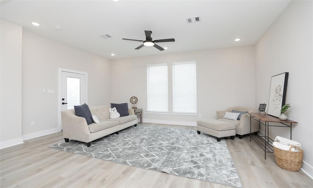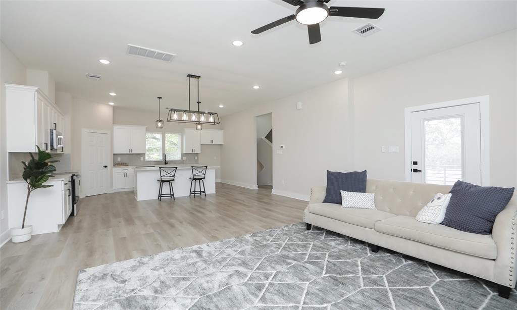 NEW 2024 CONSTRUCTION IN THE HEART OF HOUSTON!! QUALIFIES FOR REDUCED RATE LOAN - ASK LISTING AGENT! Located East of Downtown, close to the Medical Center, Minute Maid Park, I-45, I-59, and Montrose. Three bedrooms, 3 and 1/2 baths, beautiful floor, custom window blinds, and all new modern lighting and finishes! Arrive to find a double driveway with parking for friends, 2 car garage, and a gated small back and side yard. Enter your solid wood front door to find a welcoming foyer and staircase, with a first floor bedroom/office. The second floor is gorgeous with large windows, a grand island with quartz countertop, beautiful cabinetry, full pantry, and a side balcony. Lots of room for furniture, cooking, and gathering with family and friends. Upstairs you'll find a true primary suite with TWO walk-in closets and a huge glass-enclosed shower. 3rd bedroom and full laundry also on 3rd floor. You will LOVE this home close to everything Houston has to offer!