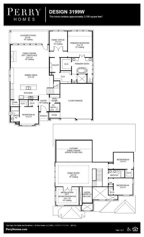 The front porch opens to reveal soaring 19-foot ceilings. Off the entryway, a private guest suite awaits, complete with a full bathroom and walk-in closet. The kitchen showcases an island with built-in seating, a corner pantry, and a seamless flow into the designated dining area. The open family room boasts a wall of windows. French doors lead into the home office just off the family room. The primary bedroom features three large windows, filling the room with light. Double doors open into the primary suite, offering dual vanities, a freestanding tub, separate glass-enclosed shower, linen closet, two spacious walk-in closets, and private access to the utility room. Upstairs, a spacious game room overlooks the family room below. French doors lead into the media room. Secondary bedrooms which share a full bathroom, complete the second level. Covered backyard patio. The mud room is located just off the two-car garage with additional storage space.