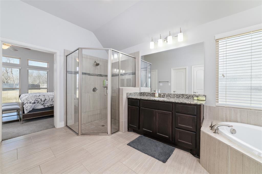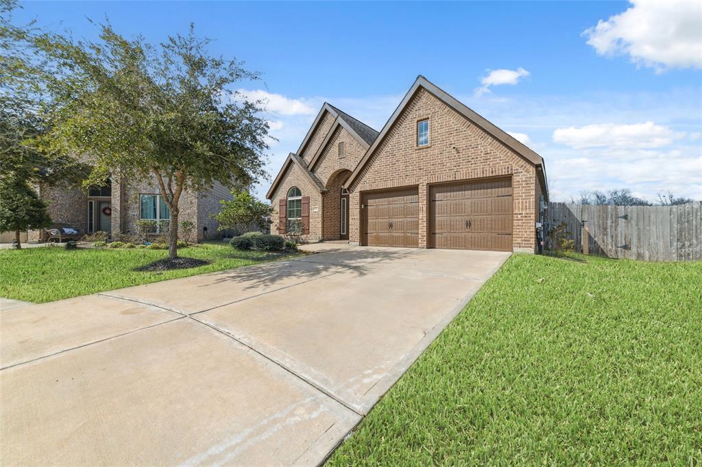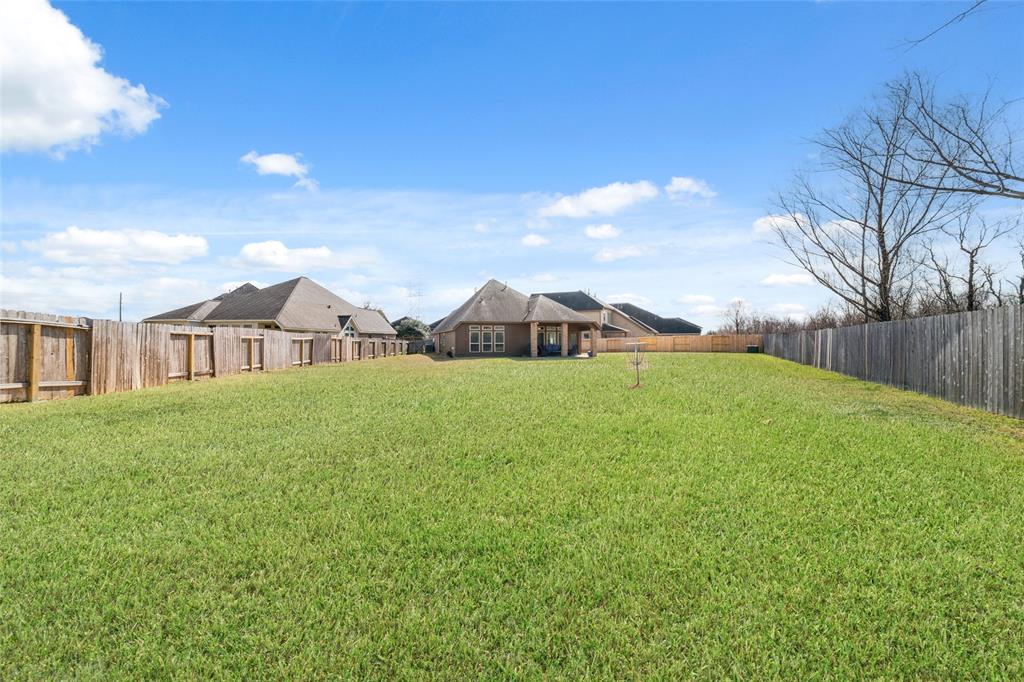 Welcome to 3608 Cibolo Ct! This stunning Perry Home is in Pearland's sought-after Southlake subdivision, offering exceptional design and energy efficiency. Step inside to a grand entryway with soaring 12-foot coffered ceilings, leading to an open-concept layout for modern living. The gourmet kitchen boasts 42'' cabinetry, a spacious granite island, and abundant counter space, flowing into a bright dining area and family room with a wall of windows. The luxurious primary suite features two walk-in closets, a spa tub, and a glass-enclosed shower. A private guest suite with its own bath adds flexibility, while a dedicated office and mudroom add convenience. Step outside to a covered patio and huge backyard perfect for entertaining or pets. The solar panels, provide energy efficiency and cost savings. Situated on a peaceful cul-de-sac, perfect blend of serenity and community, all while being just minutes from top-rated schools, premier shopping, dining, and easy access to major highways.