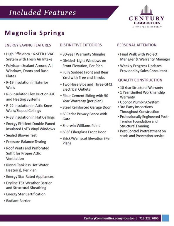 The Medina Plan- Come see this beautiful new construction 2 story home that has 4 bedrooms, 2.5 bath, a study and an oversized game room! The kitchen features an island that's great for entertaining with 42-inch cabinets and whirlpool brand appliances. Our homes will also include a tankless water heater, home automation powered by Google, large walk-in showers, coach lights and more! Magnolia Springs offers an outdoor paradise for those looking to escape to nature! We are zoned to the highly acclaimed Magnolia ISD and close to The Woodlands, Conroe, and Tomball. If you're looking for the perfect place to live, work, and play come out to Magnolia Springs and view this beautiful home today!
