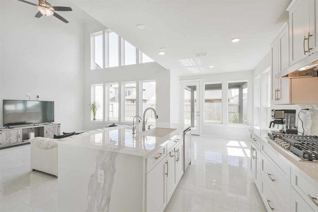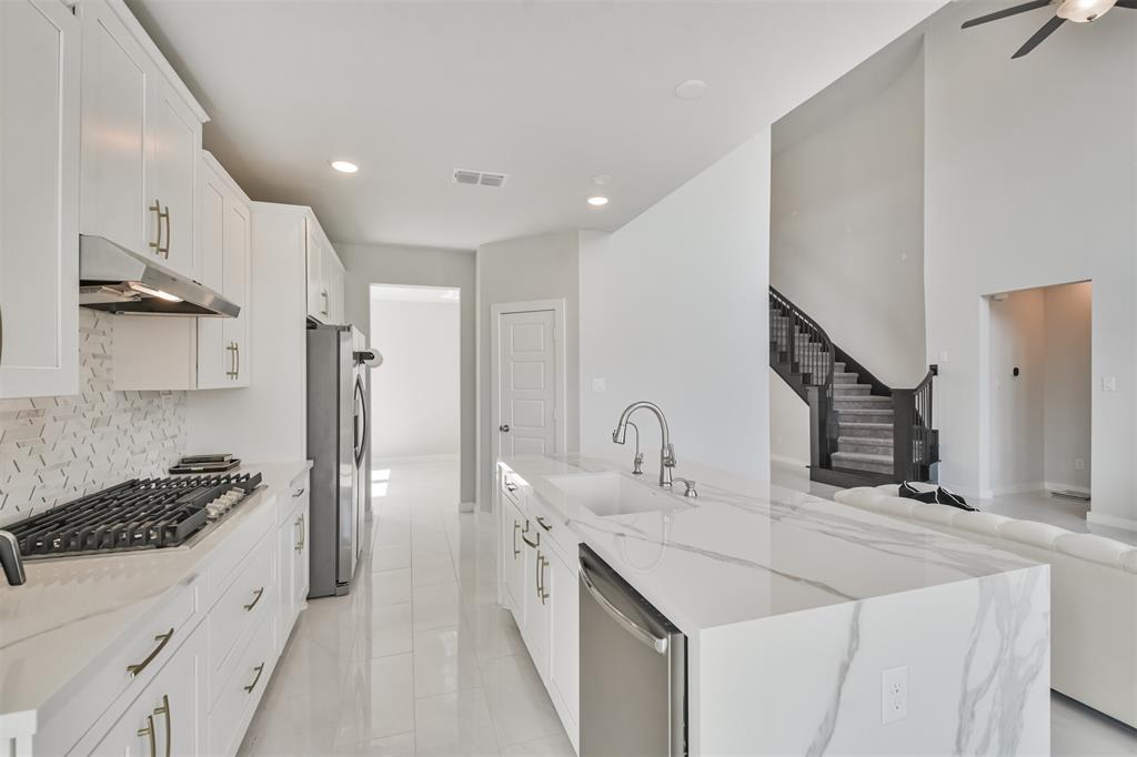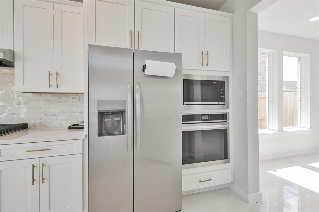 The stunning high curb appeal brick stone, & stucco elevation on the popular 50' STRASBURG is a show stopper. This NEWMARK HOME is perfectly located within walking distance from the amenities center and just few minutes from the major roads in CROSS CREEK WEST in the heart of FULSHEAR, TEXAS. This 2 story home features 4 bedrooms w/ 3.5 baths comes with tons of upgrades from the entrance to the backyard. The spacious formal dining leads to the chef's dream kitchen filled with hand selected architectural charms such as porcelain countertops & upgraded 42' cabinetry. The breakfast room has extra windows provide more natural lights. The family room has a wall of windows & tall ceilings. The main suite has a mud-set shower. The winding spiral staircase with open railings and stained treads leads to the upstairs game room. Energy saving spray foam insulation, a tankless hot water heater, full sprinklers, & full gutters are just a few key features of this PROFESSIONALLY DESIGNED