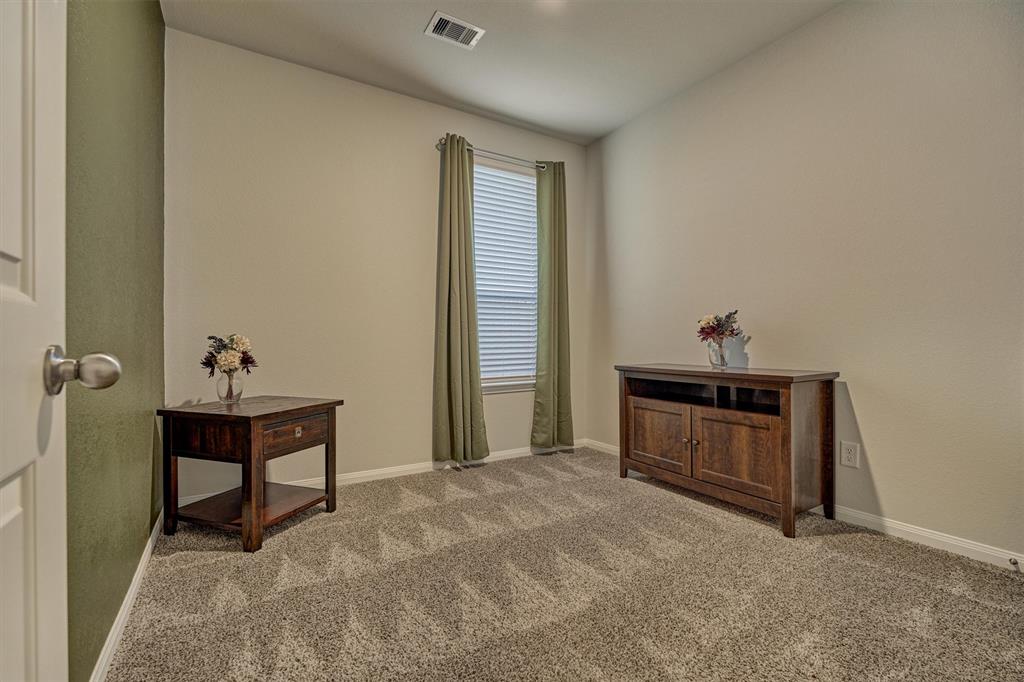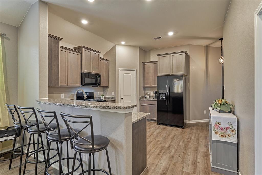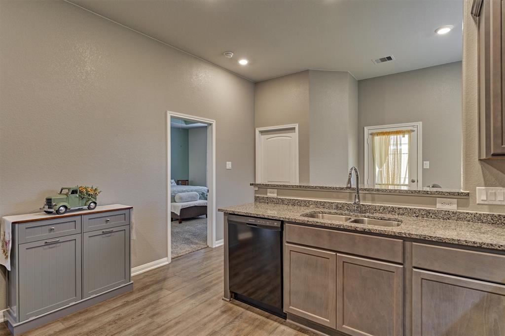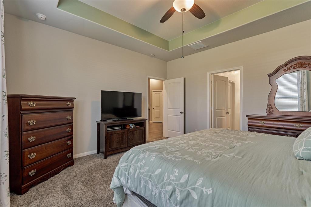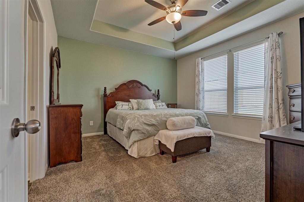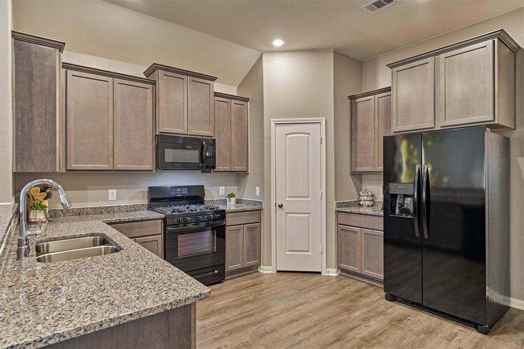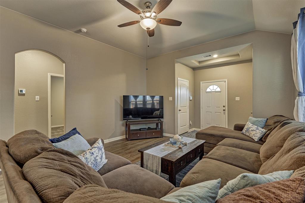 Welcome to this wonderful 3 bedroom, 2 bath home in the new Caney Mills community in Conroe! This impressive home has been immaculately cared for & upgraded with lots of added extras! Whole home water filtration system, Modern hardwood look flooring, neutral paint & high vaulted ceilings. The open concept living area offers a wall of windows allowing lots of natural light into the home, all with blinds and drapes.The split floor plan offers a primary suite located to the rear of the home, away form the additional 2 bedrooms.The large primary en-suite has a large en suite bathroom with dual vanity areas, soaker tub and glass shower. Enjoy the views to the backyard.Large closets & spacious laundry room!The gorgeous modern kitchen with granite counters is spacious & has a large breakfast bar & walk in pantry! Fridge Stays!Large backyard has an extended patio, perfect for entertaining! A generous 2 car garage offers overhead storage racks! Quick access to I-45, Great for commuters!