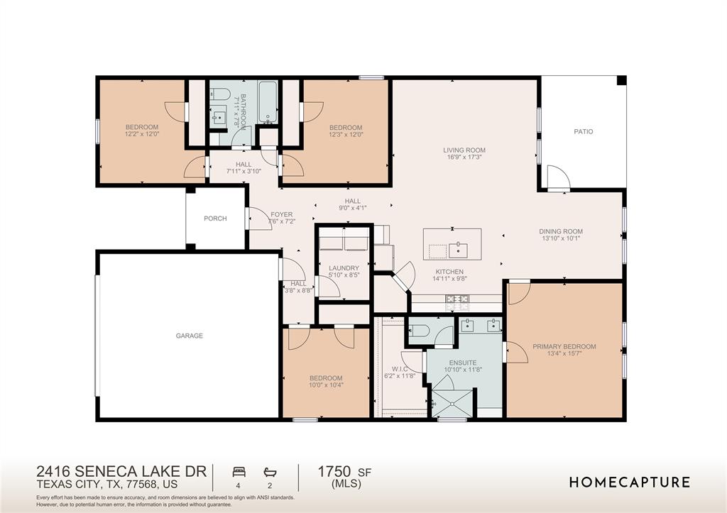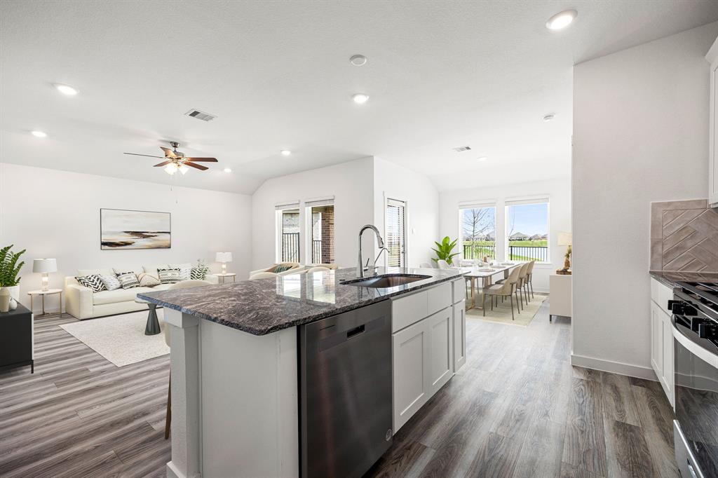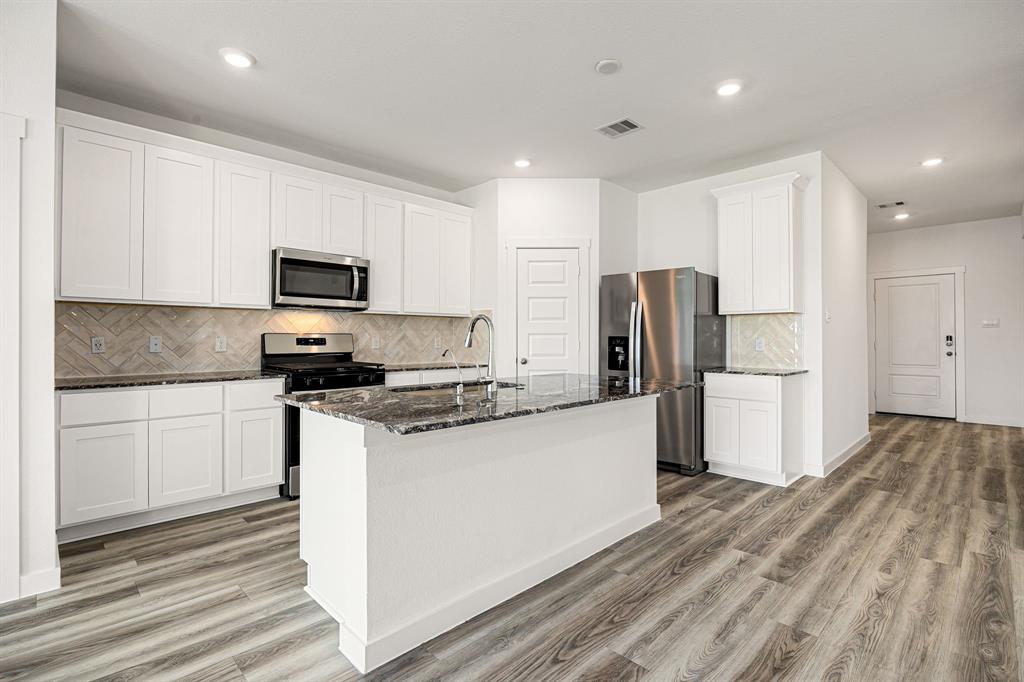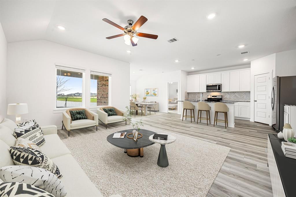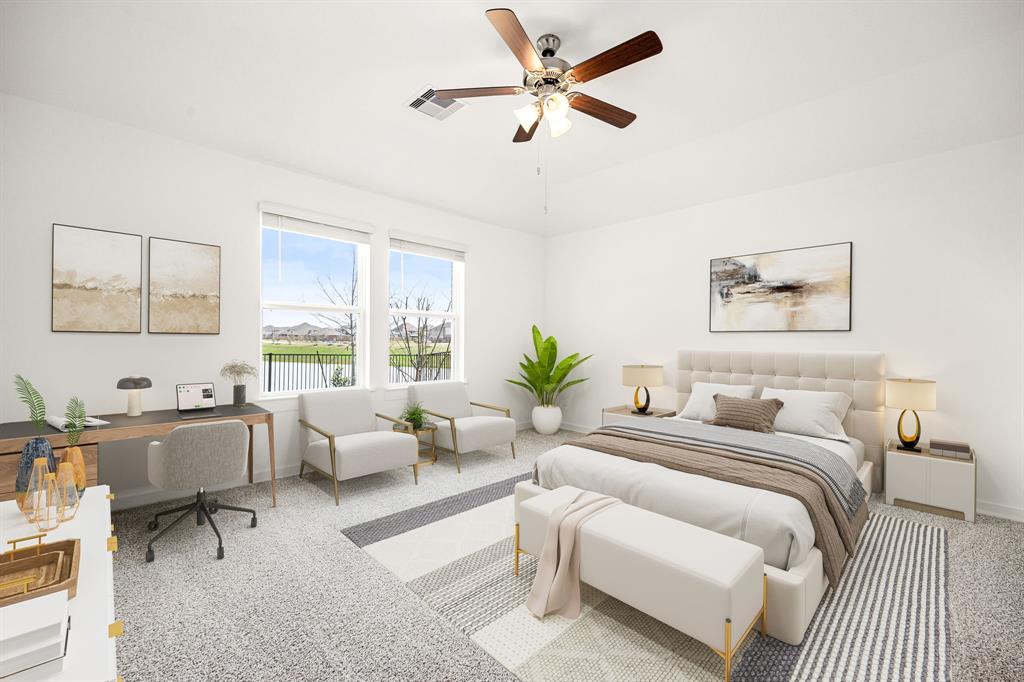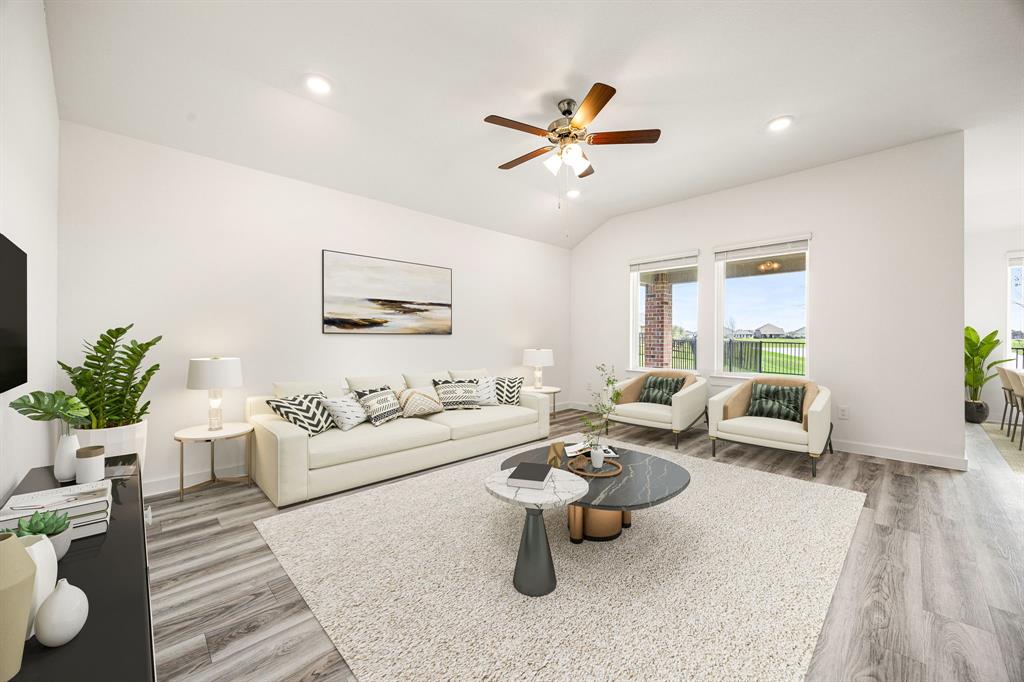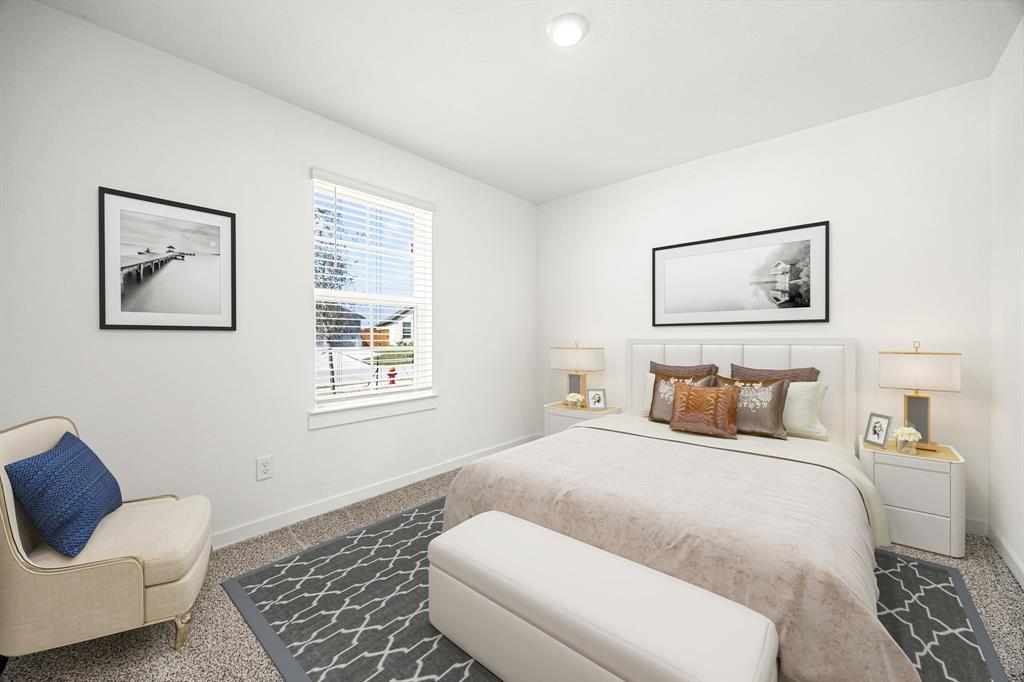 Welcome to the Huntsville floor plan in Lago Mar! This single-story home offers 1,750 sq. ft., featuring 4 bedrooms, 2 bathrooms, and a 2-car garage—perfect for your family. Inside, you'll find 2 secondary bedrooms sharing a bathroom with a tub/shower combo and linen nook. Both rooms offer carpet, spacious closets, and large windows for natural light. A linen closet is nearby. Across from the bedrooms is the utility room and a third bedroom, ideal for an office or playroom. The open-concept kitchen, family room, and dining area are great for entertaining. The kitchen features stainless-steel appliances, a kitchen island, and a pantry. The primary bedroom offers a private retreat with 2 large windows, leading to the primary bathroom with double sinks, a standing shower, and a walk-in closet. Relax outdoors on your covered patio. Call today for a tour!