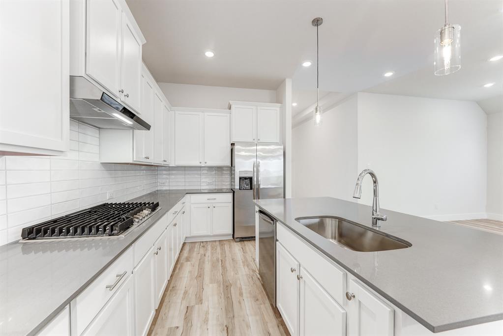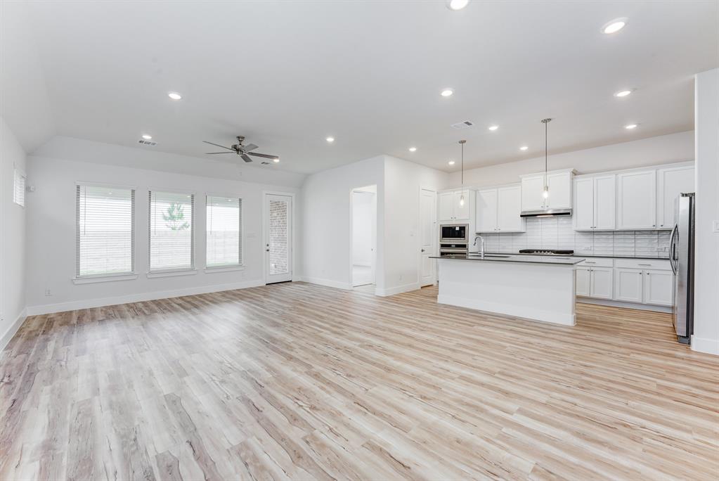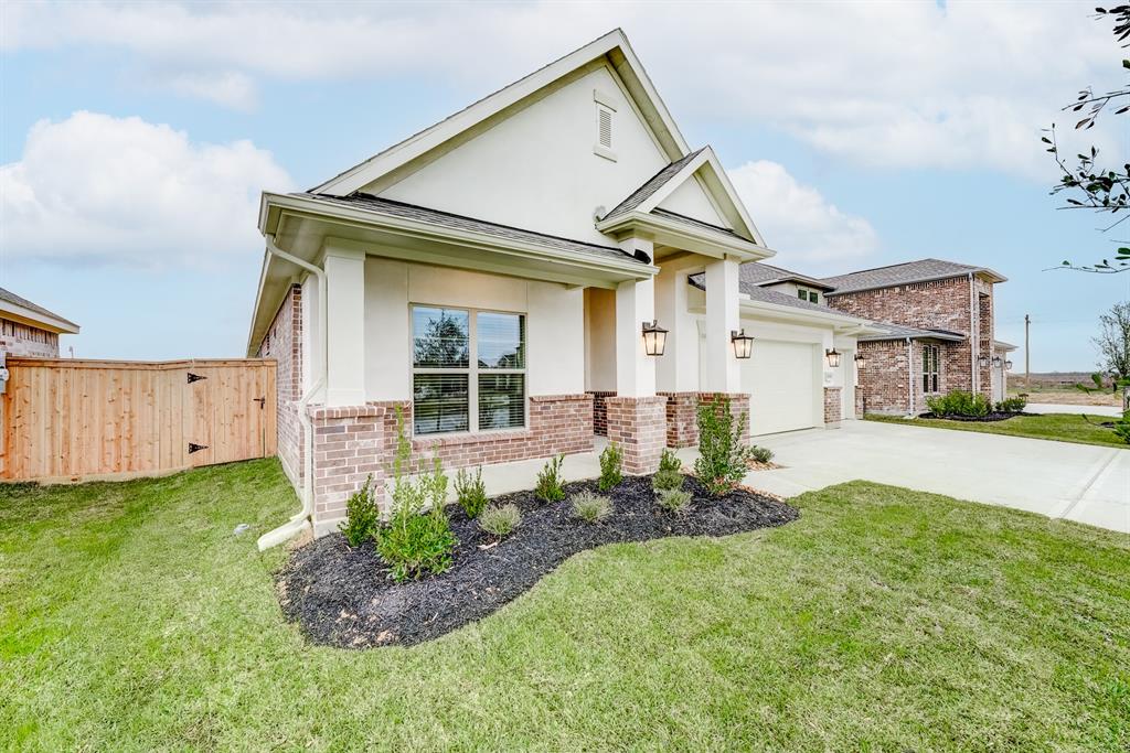 Gated section! Don't miss this brand-new home with no back neighbors in the gated Empire River Ranch community, featuring 4 bedrooms, 3 full bathrooms, brick and wood exterior, vinyl and tile flooring, open-concept living, sprinkler system, masonry privacy fence, and 3-car attached garage. The island kitchen is equipped with quartz countertops, tile backsplash, gas range, stainless steel appliances, breakfast bar, soft closing cabinets and drawers, and walk-in pantry. The relaxing primary suite is complete with a vaulted ceiling, walk-in closet, dual vanities, soaking tub, and separate shower. This Energy Star qualified home boasts Energy Star appliances, a reflective roof, high-efficiency HVAC, insulated windows, attic vents, and more! Community amenities include a crystal lagoon, cabanas, swim-up bar, and walking trails. Located off US 90 and N Hwy 146, residents are near dining & shopping in central Dayton and Liberty. Zoned to Dayton ISD.