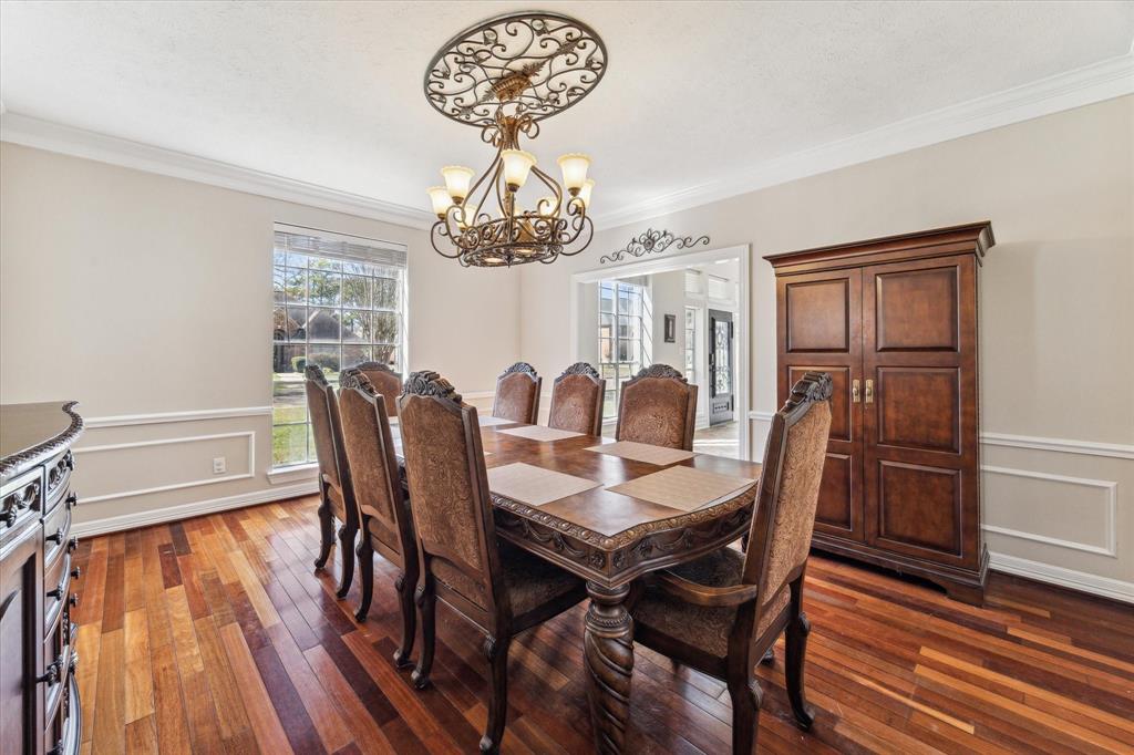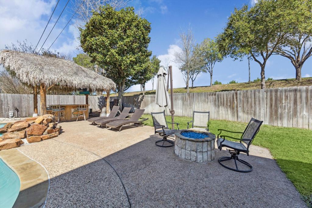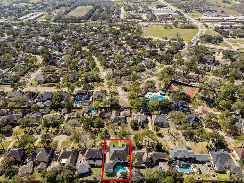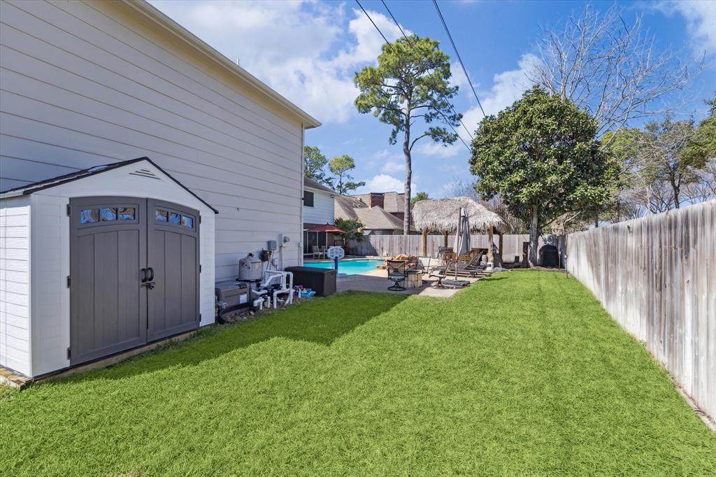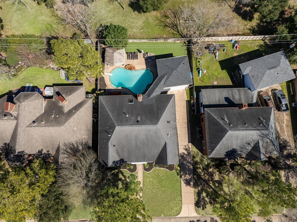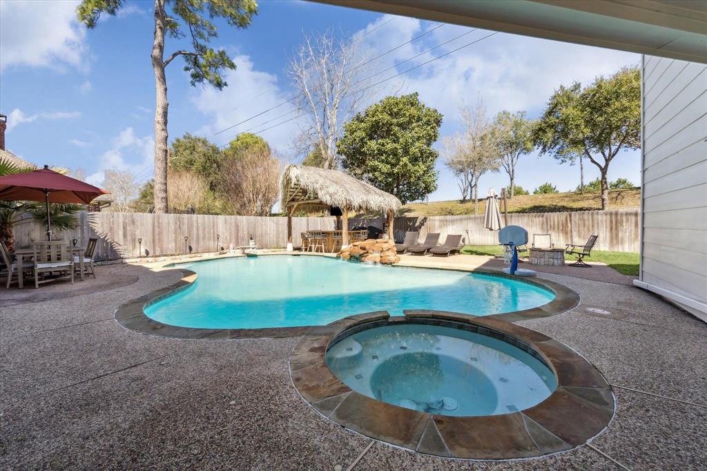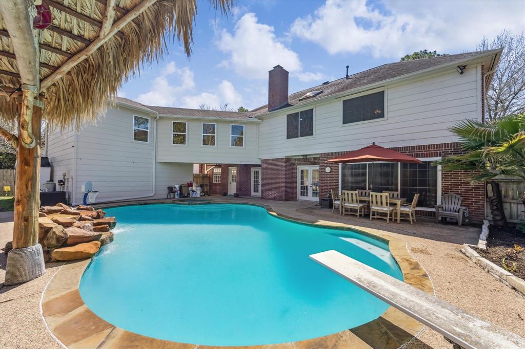 A rare find in Pin Oak Village, this 5,776 sqft. home offers an expansive layout on a quiet street. Designed for comfort & entertaining, this home features Brazilian hardwood floors, granite countertops, intricate moldings, & an island kitchen with walk-in pantry. The spacious primary suite is located downstairs, while upstairs offers a double game room with skylights—ideal for homeschooling or recreation. A hidden room with a full bath adds a unique touch & is one of six bedrooms this home offers. Additional highlights include a study with built-ins & ample storage. Step outside to your private backyard oasis, featuring a swimming pool, spa, extensive decking, & a tiki hut. With no rear neighbors, the property backs to a berm for added privacy. Pin Oak offers a low tax rate, great neighborhood amenities which include a pool, tennis and pickleball courts, & is zoned to highly acclaimed Katy ISD, specifically: Katy Elem. & Katy HS. Conveniently positioned for easy commuting & shopping.